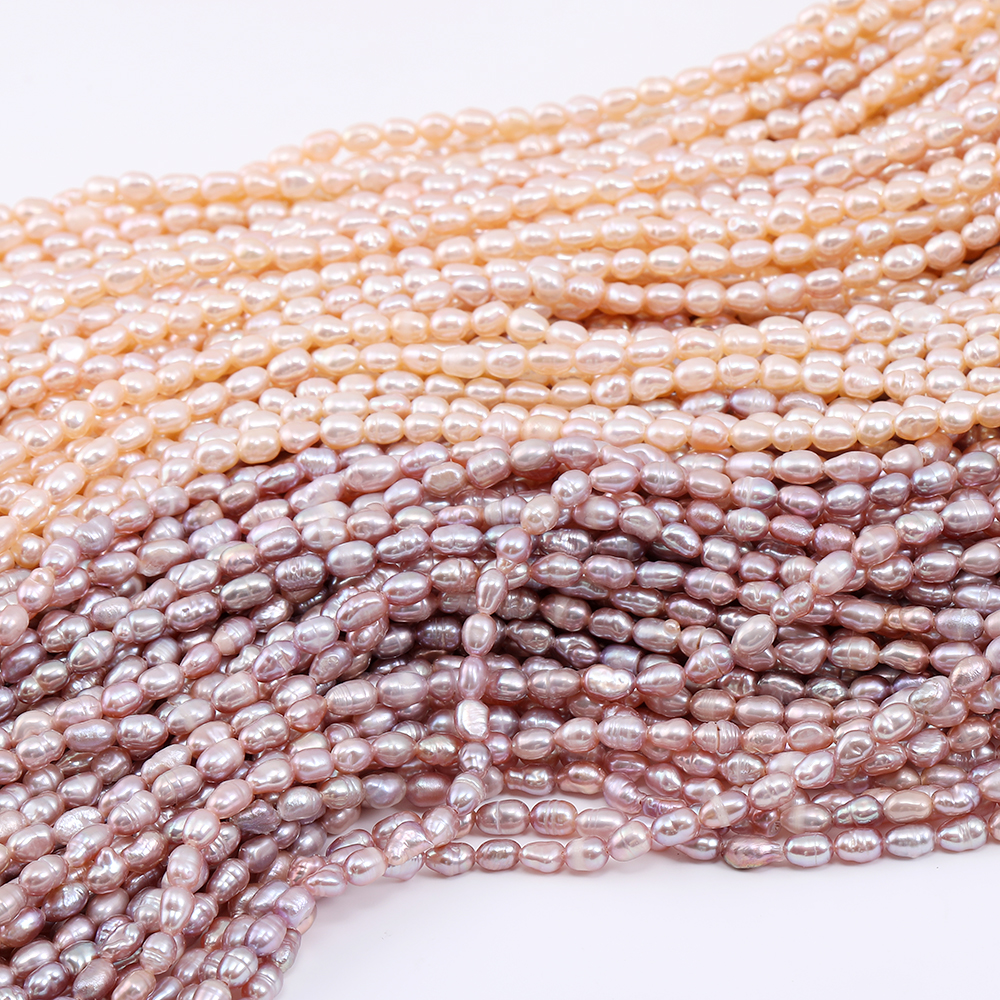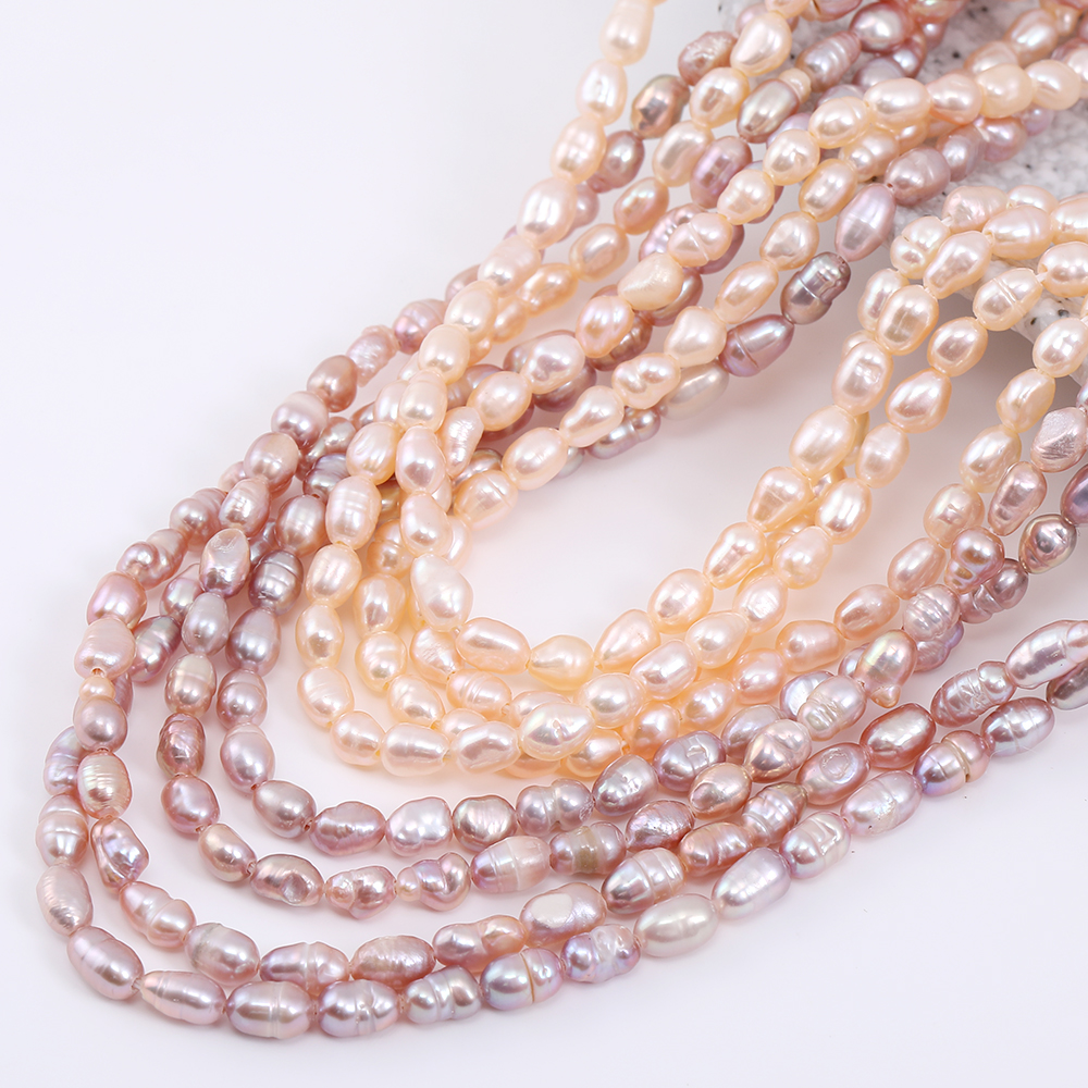 最安値挑戦中!淡水パールビーズ 不規則オーバル 天然素材 4×5mm 1連(約80ヶ)