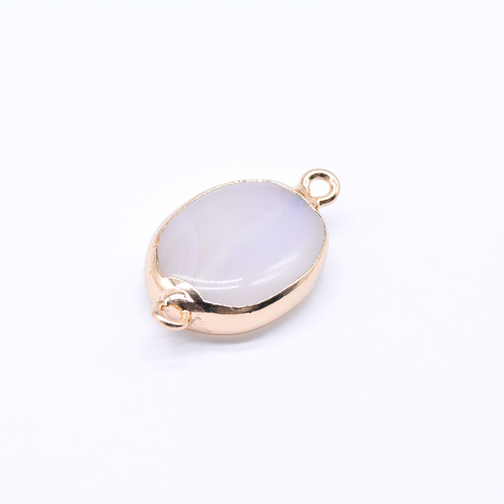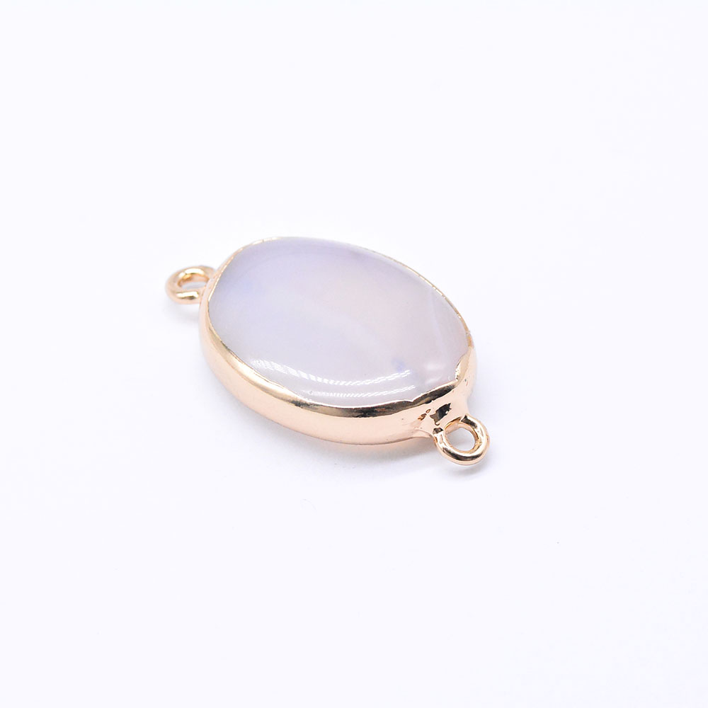 天然石コネクターチャーム メノウ 楕円形 枠付き 2カン ゴールド(1ヶ)