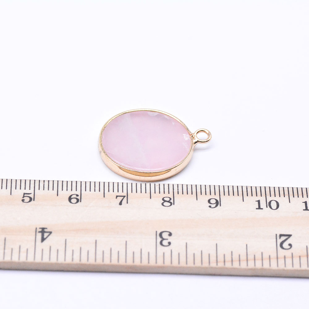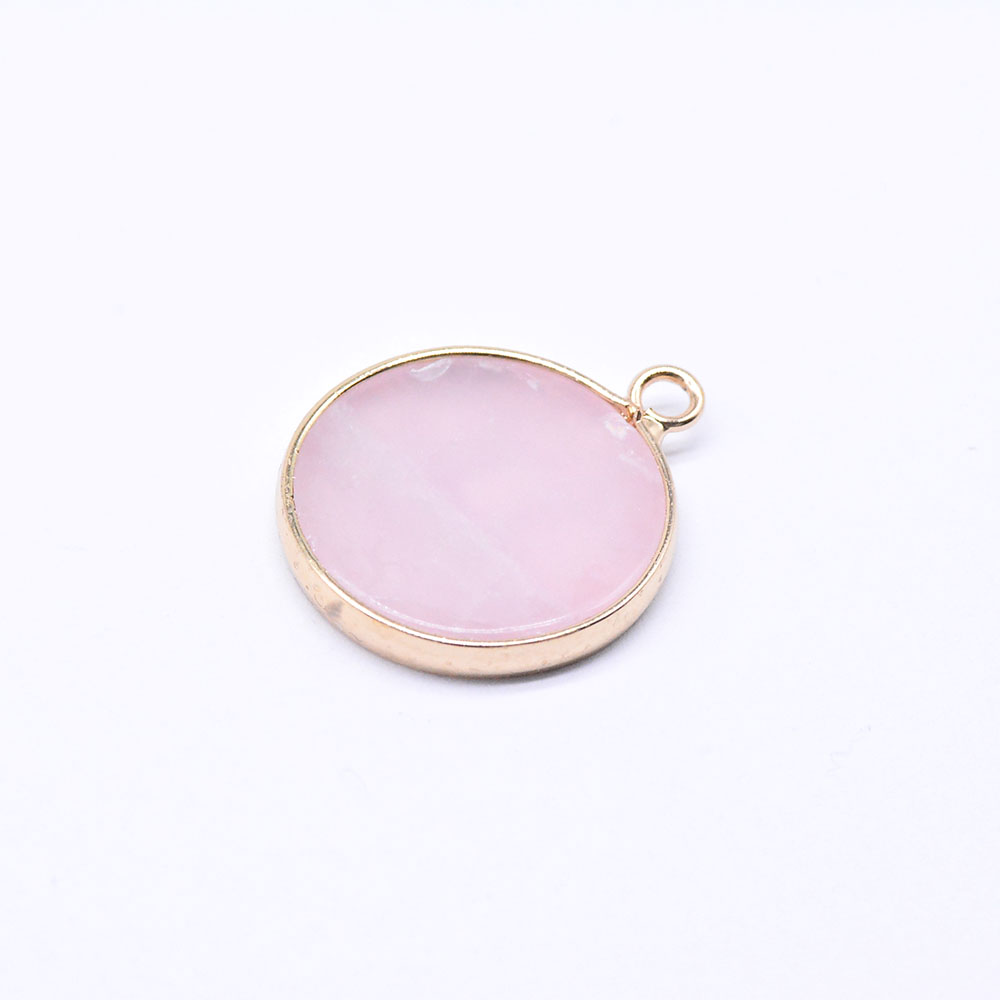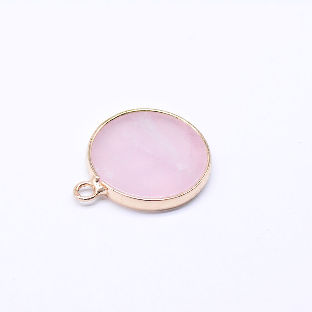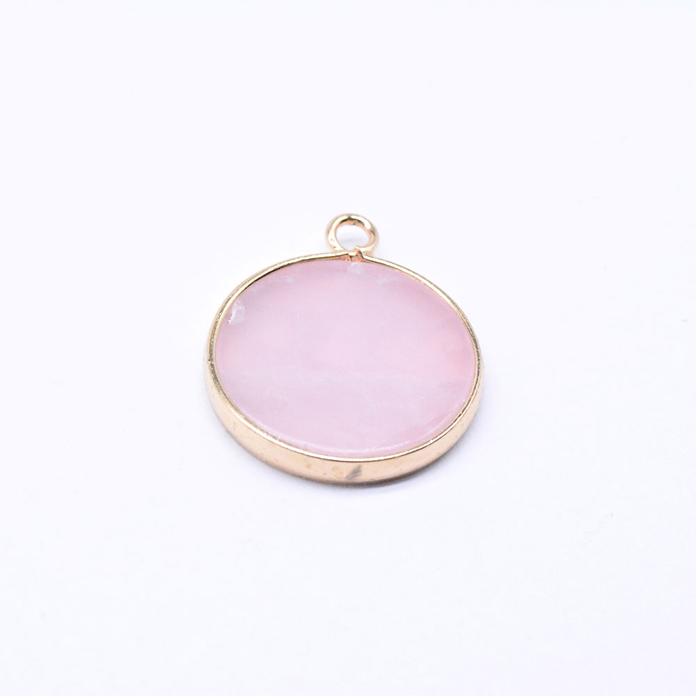 天然石チャーム ローズクォーツ 枠付き 円形 ゴールド(1ヶ)