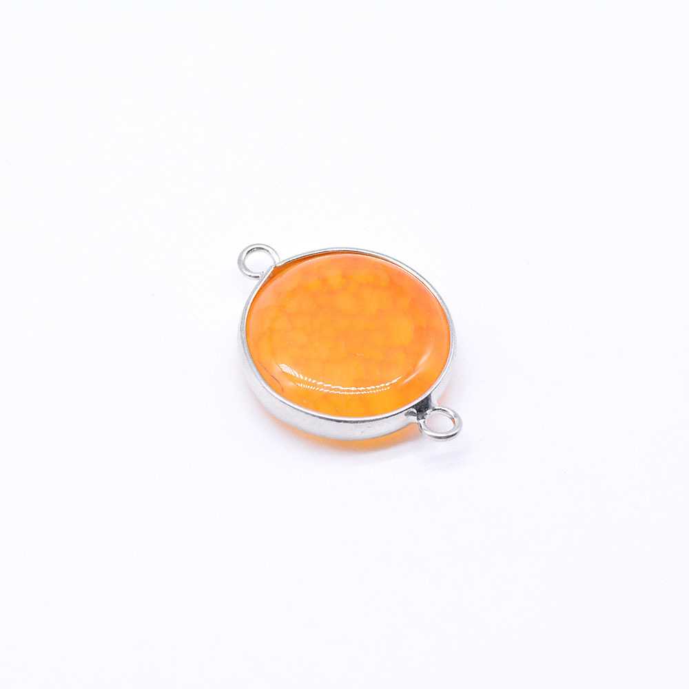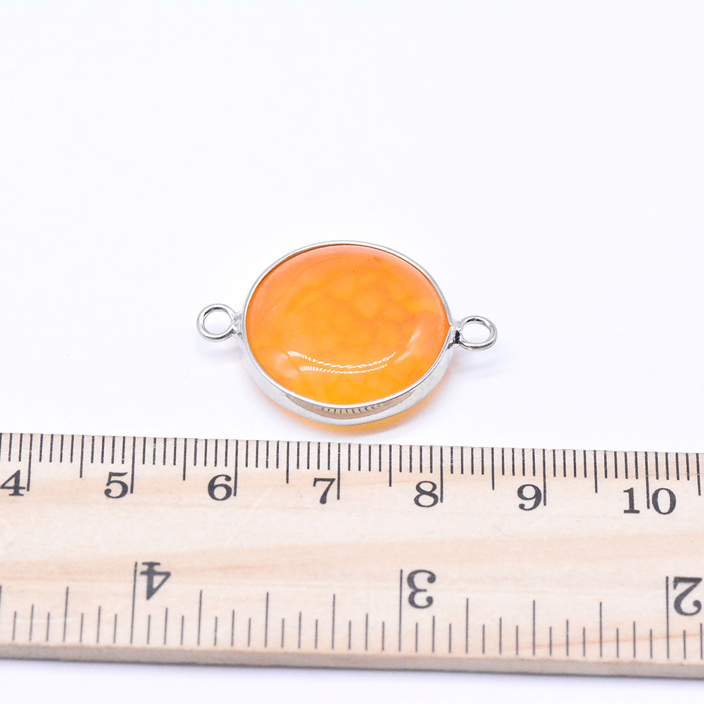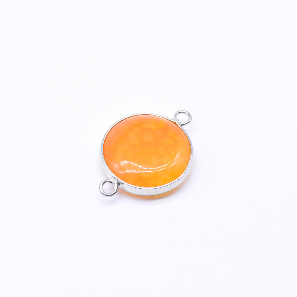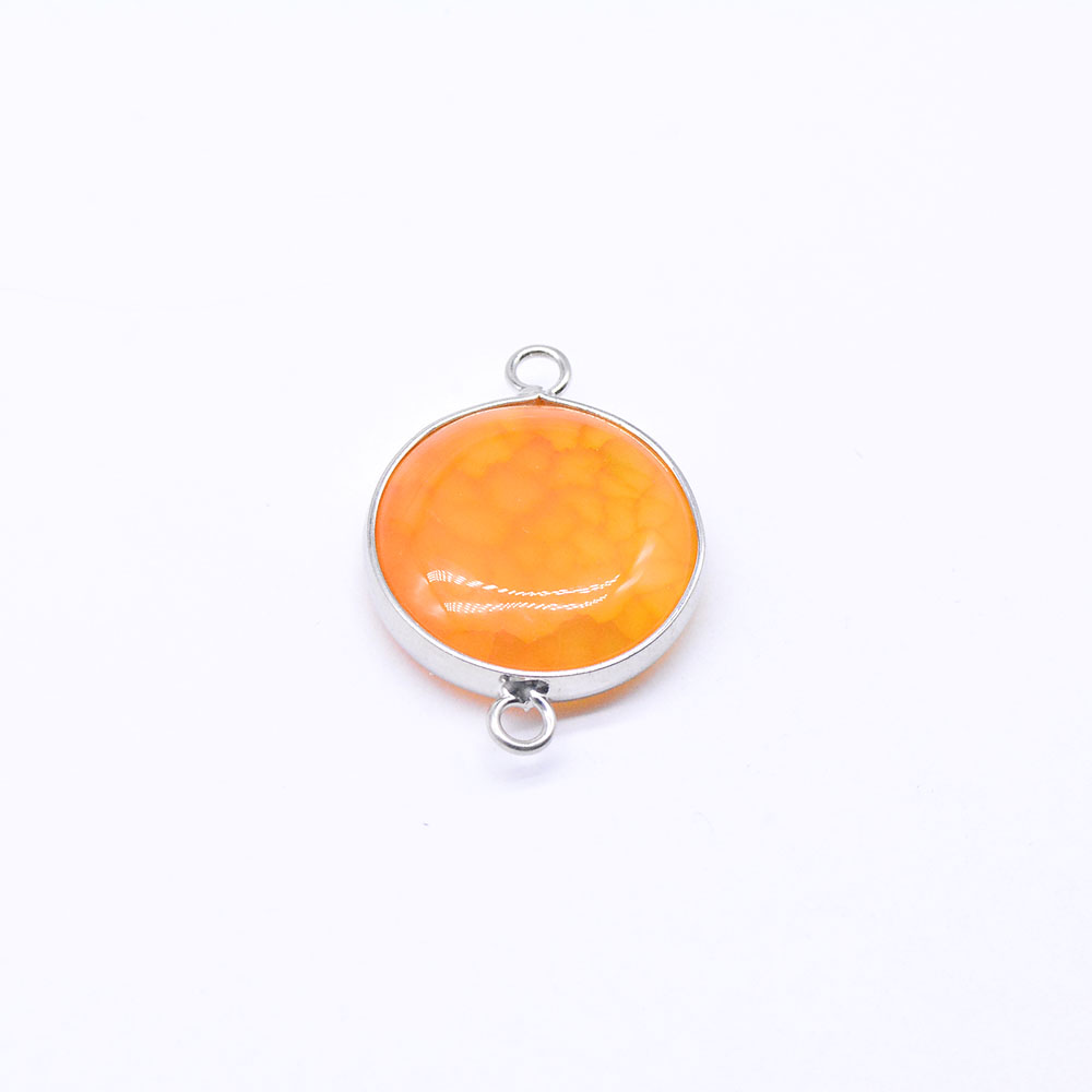 天然石コネクターチャーム メノウ 枠付き 円形 2カン ロジウム(1ヶ)