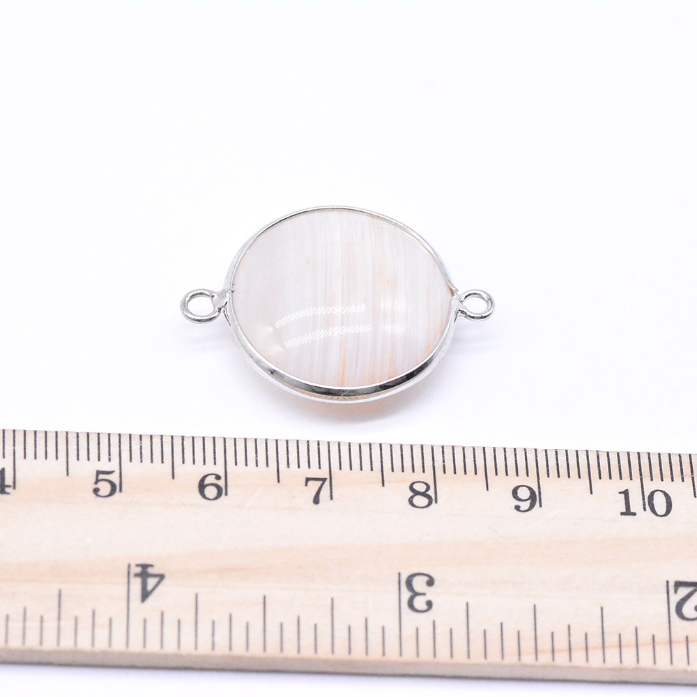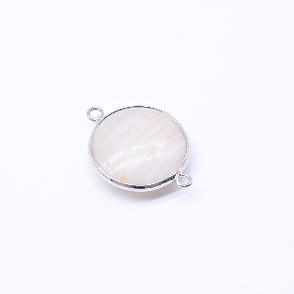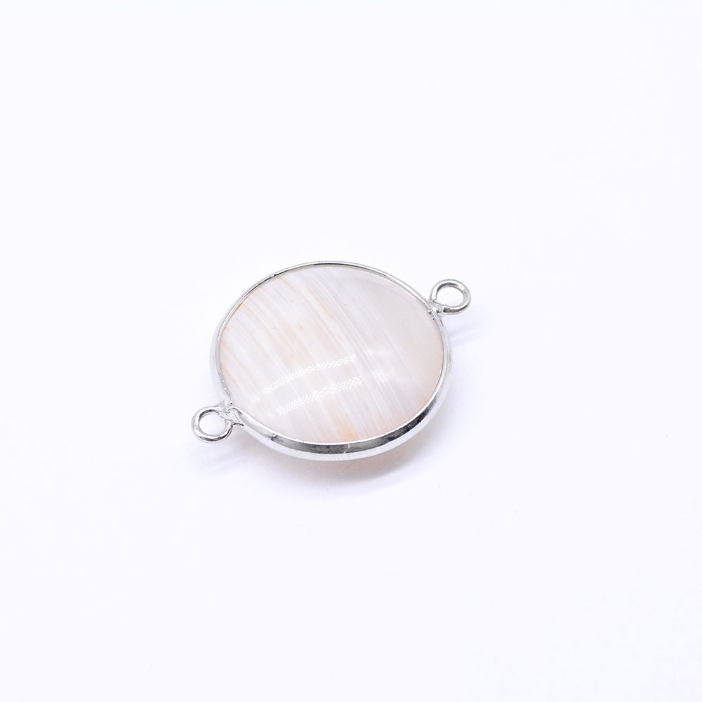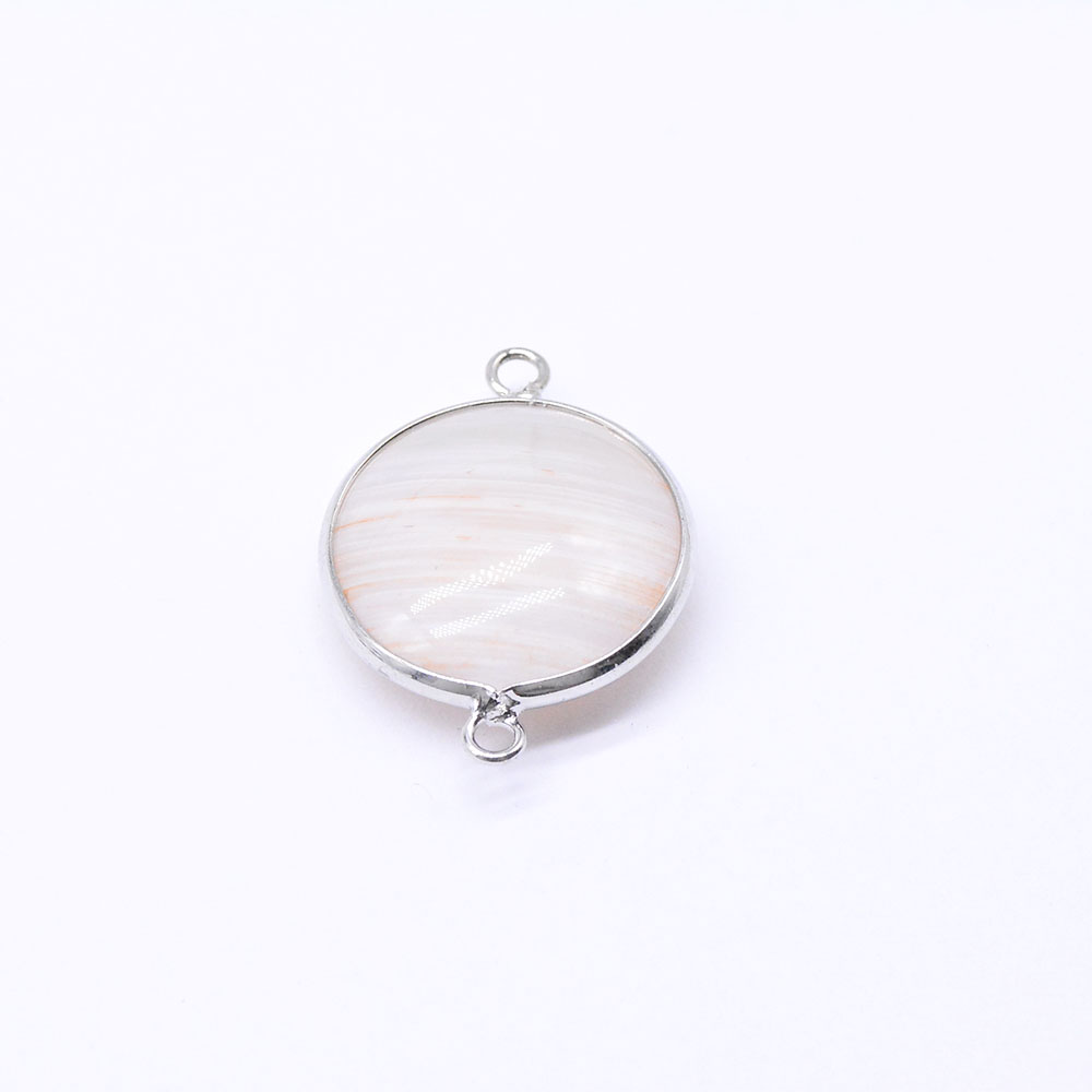 天然石コネクターチャーム メノウ 枠付き 円形 2カン ロジウム(1ヶ)