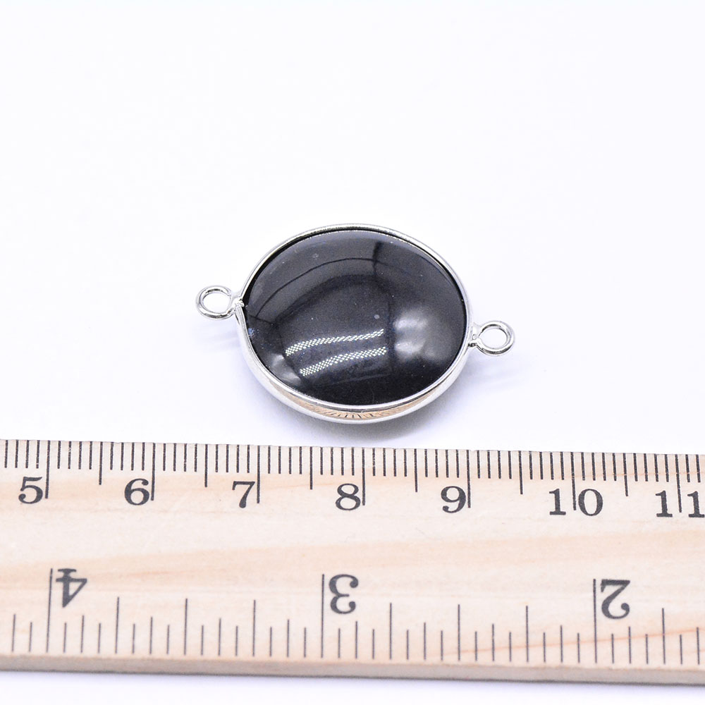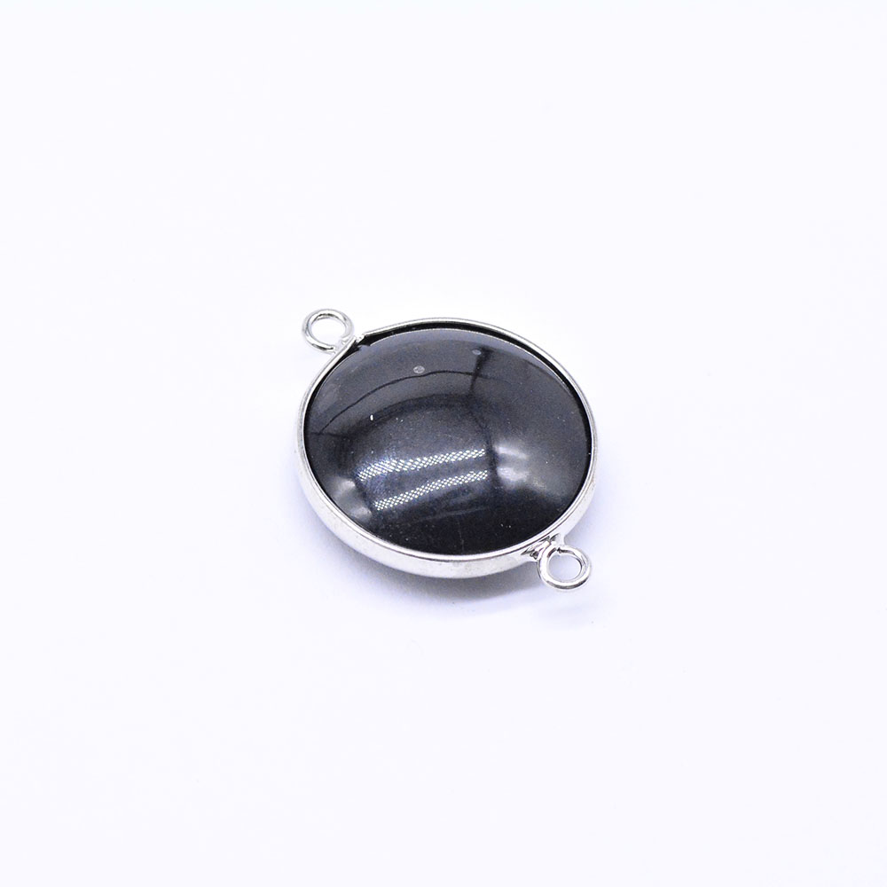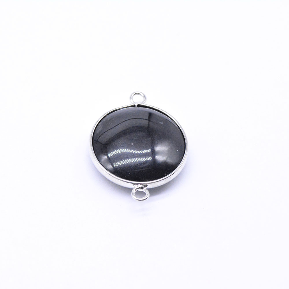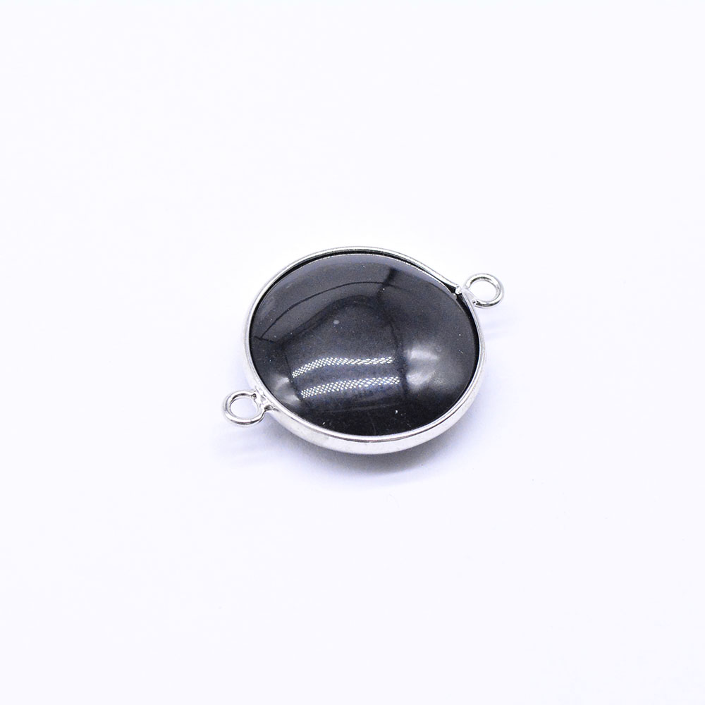 天然石コネクターチャーム メノウ 枠付き 円形 2カン ロジウム(1ヶ)