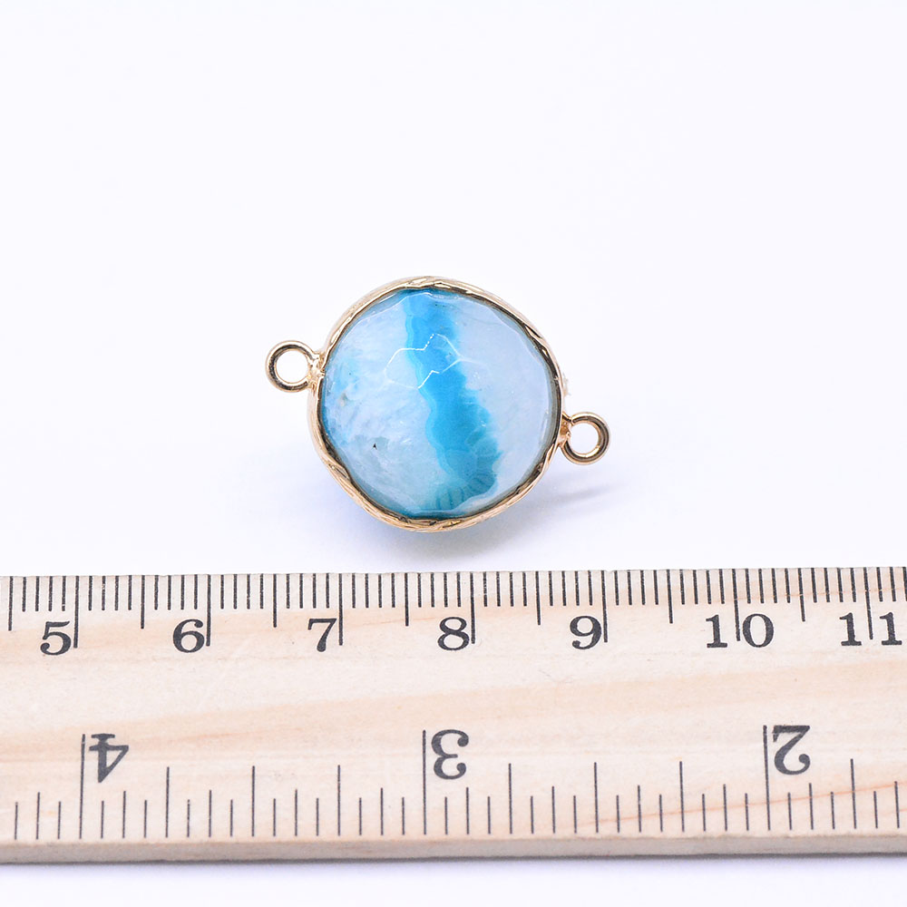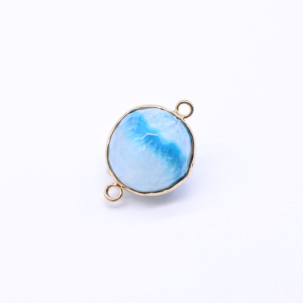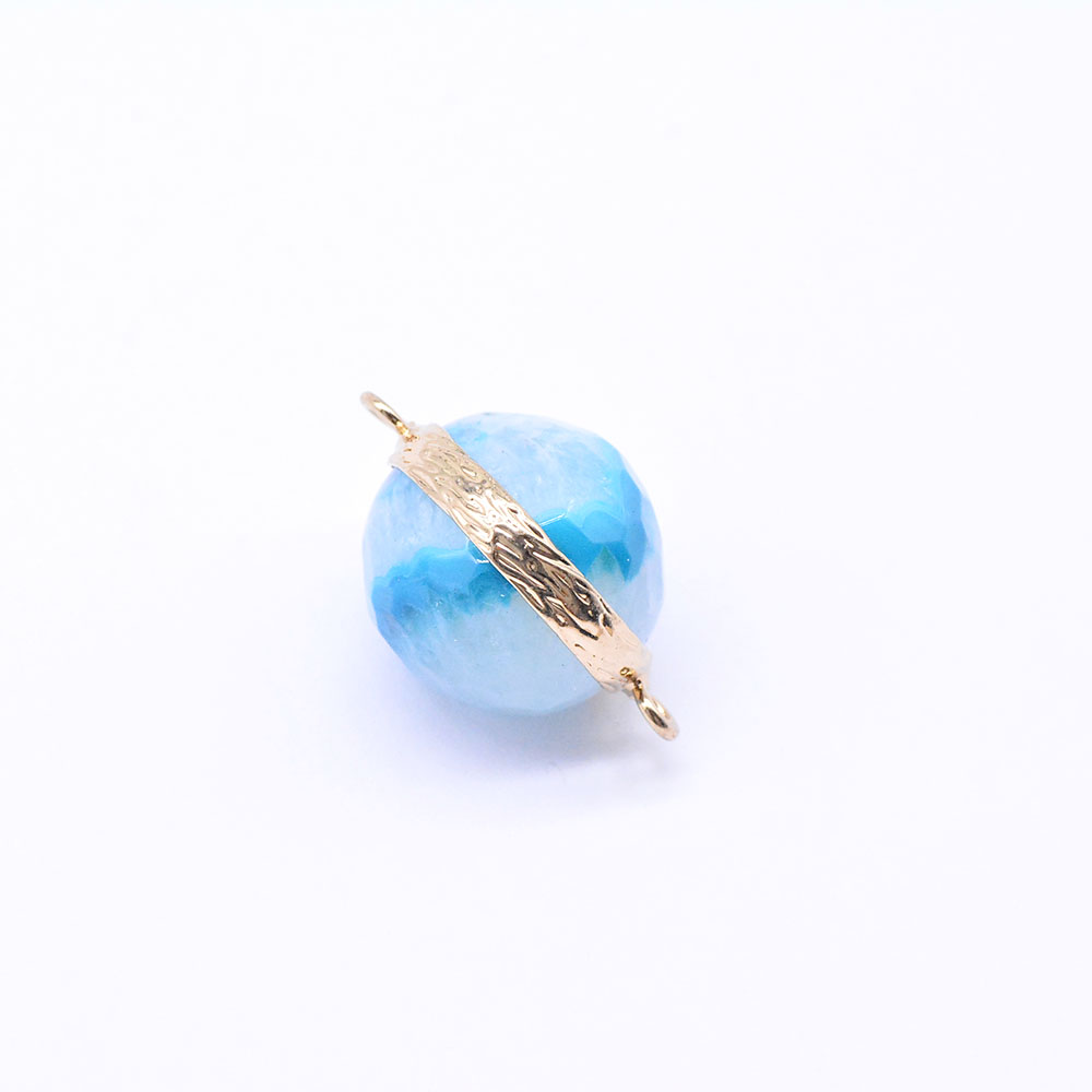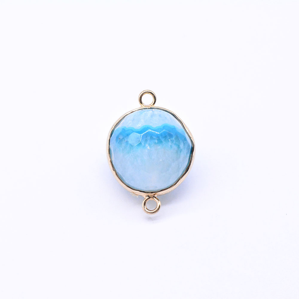 天然石コネクターチャーム メノウ 枠付き 円形 2カン ゴールド(1ヶ)