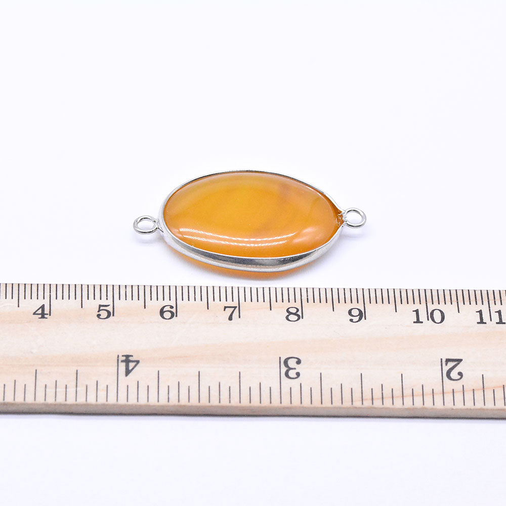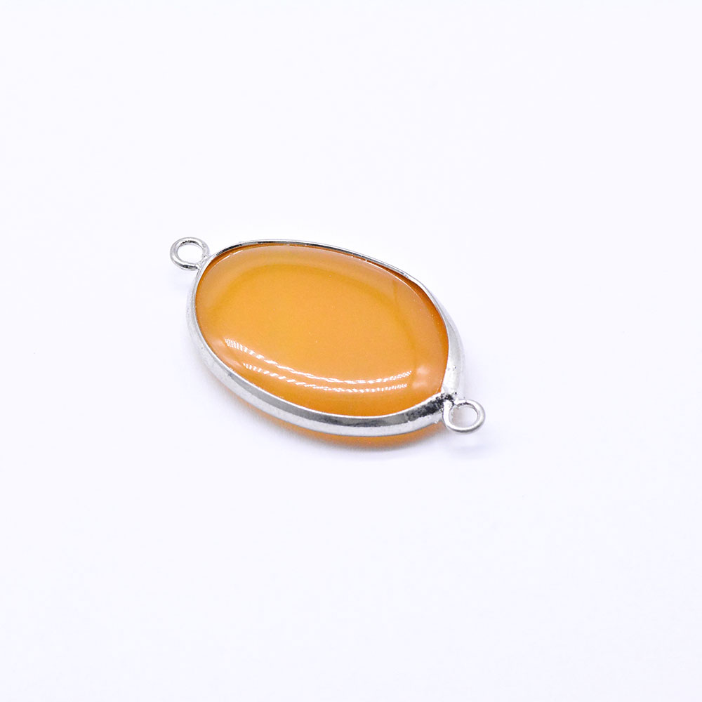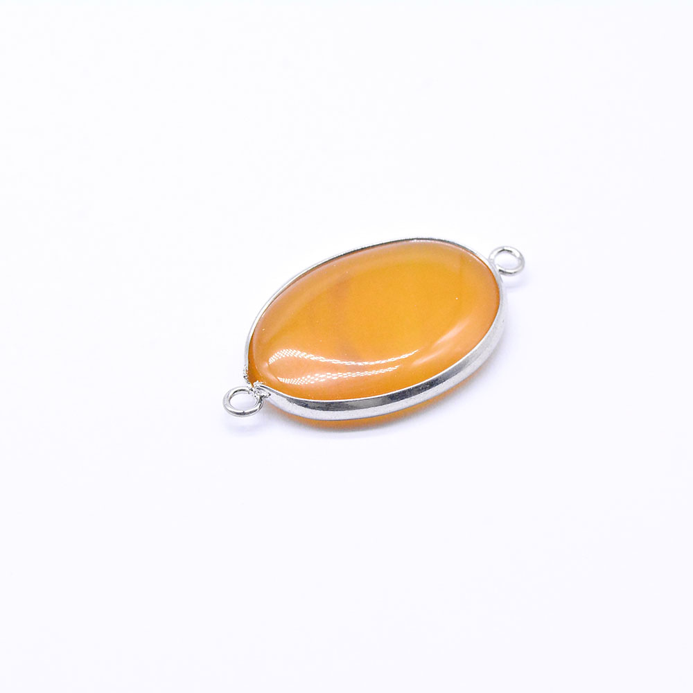 天然石フレームコネクターチャーム イェローアゲート オーバル 2カン ロジウム (1ヶ)