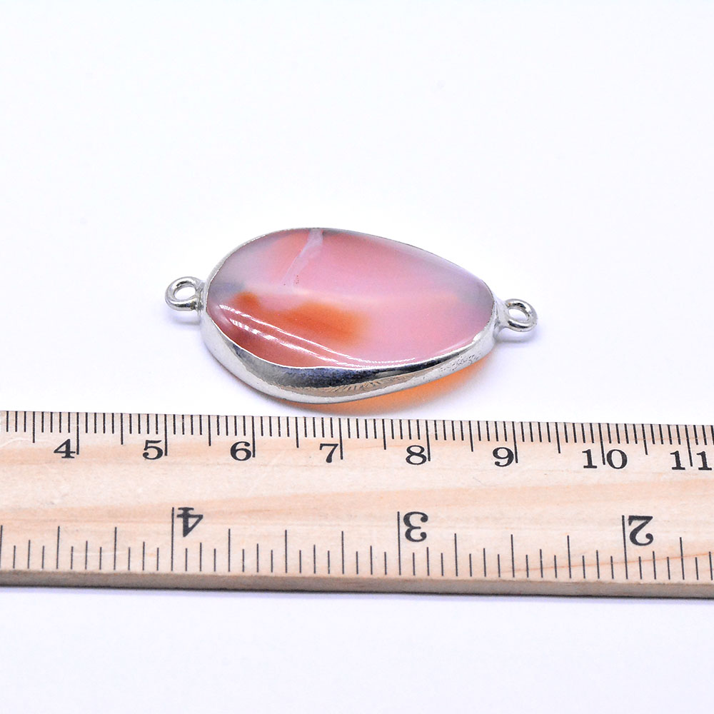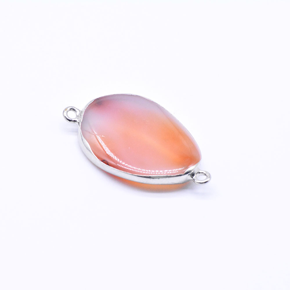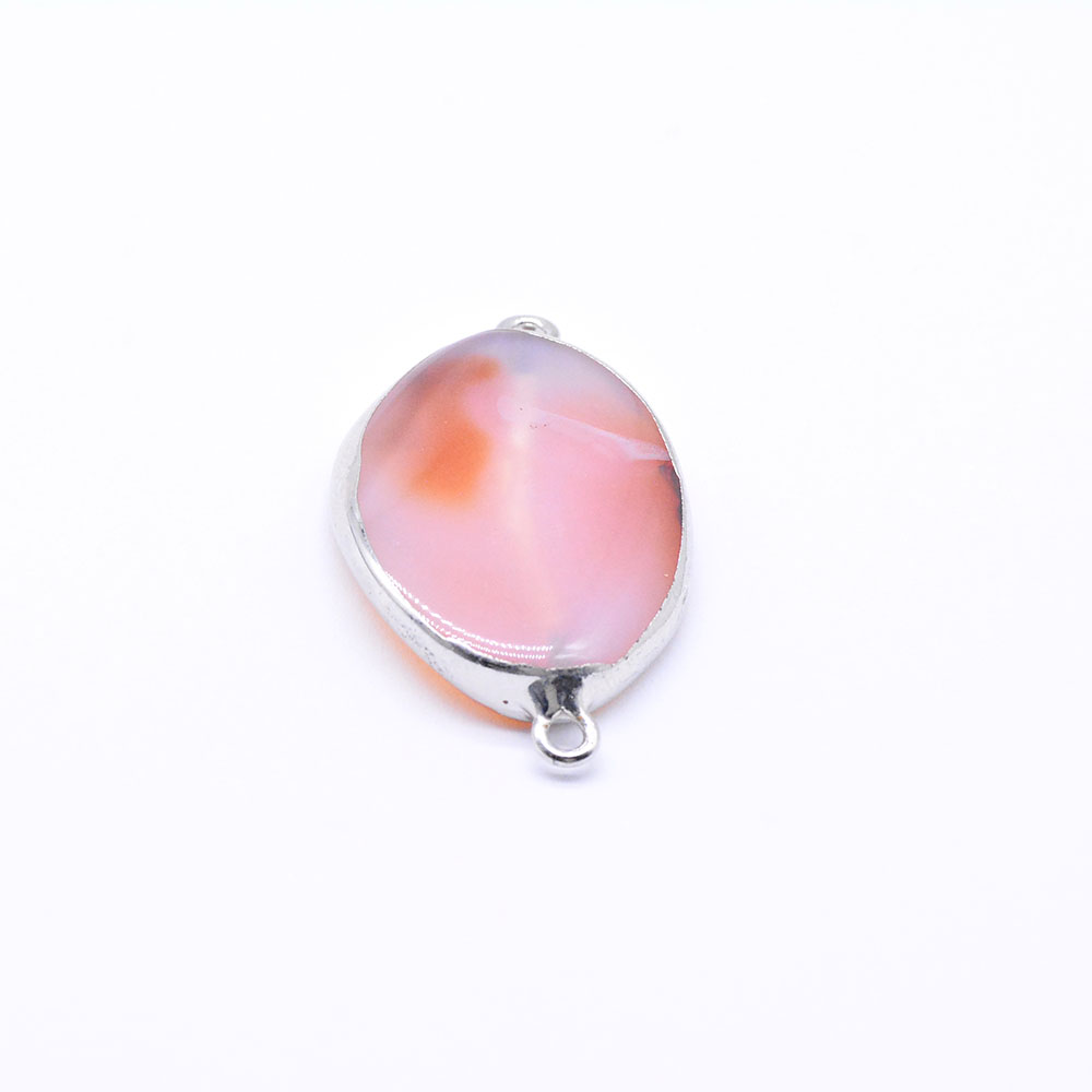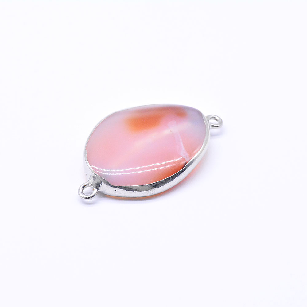 天然石フレームコネクターチャーム ピンクアゲート オーバル 2カン ロジウム (1ヶ)