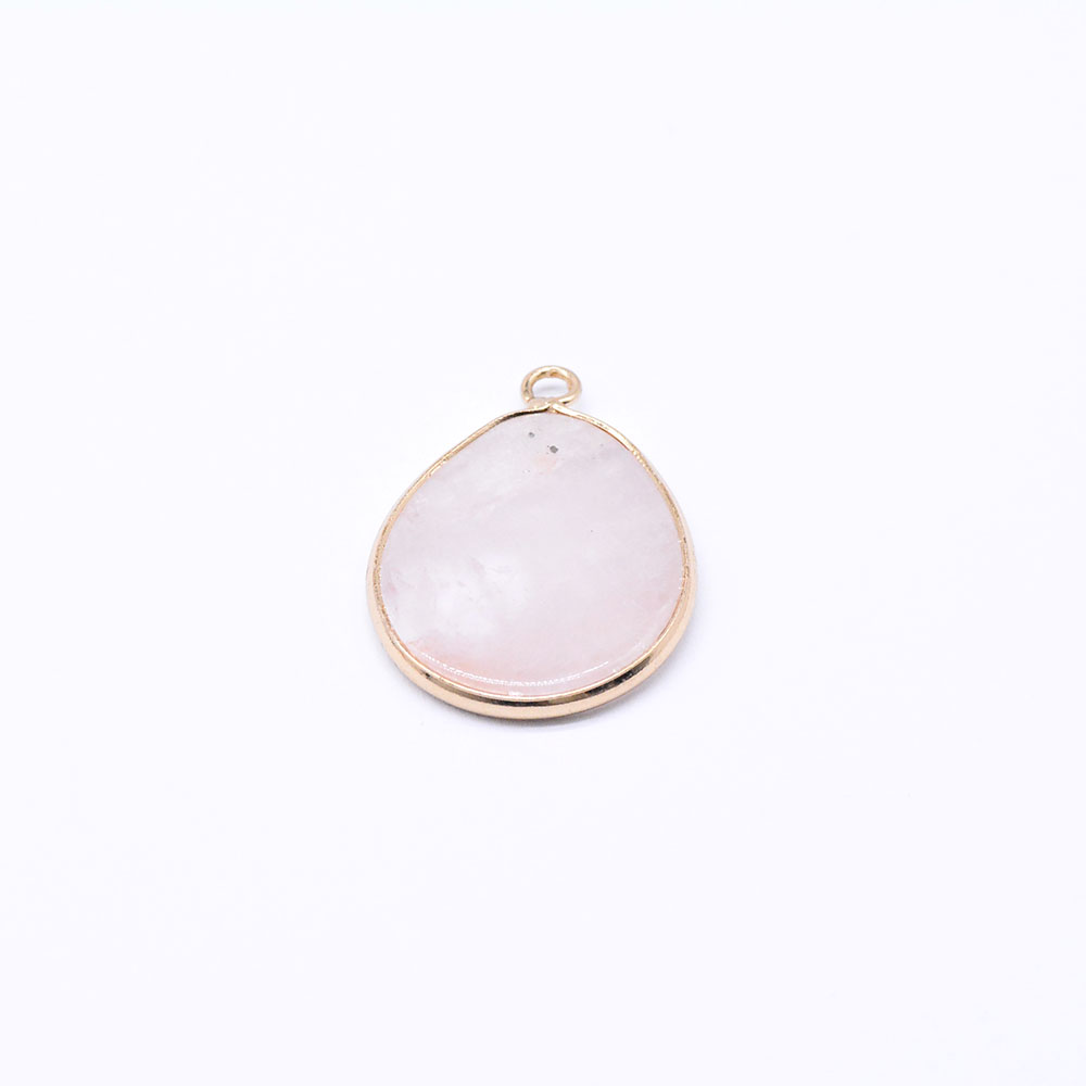 天然石フレームチャーム ローズクォーツ 雫型 1カン ゴールド (1ヶ)