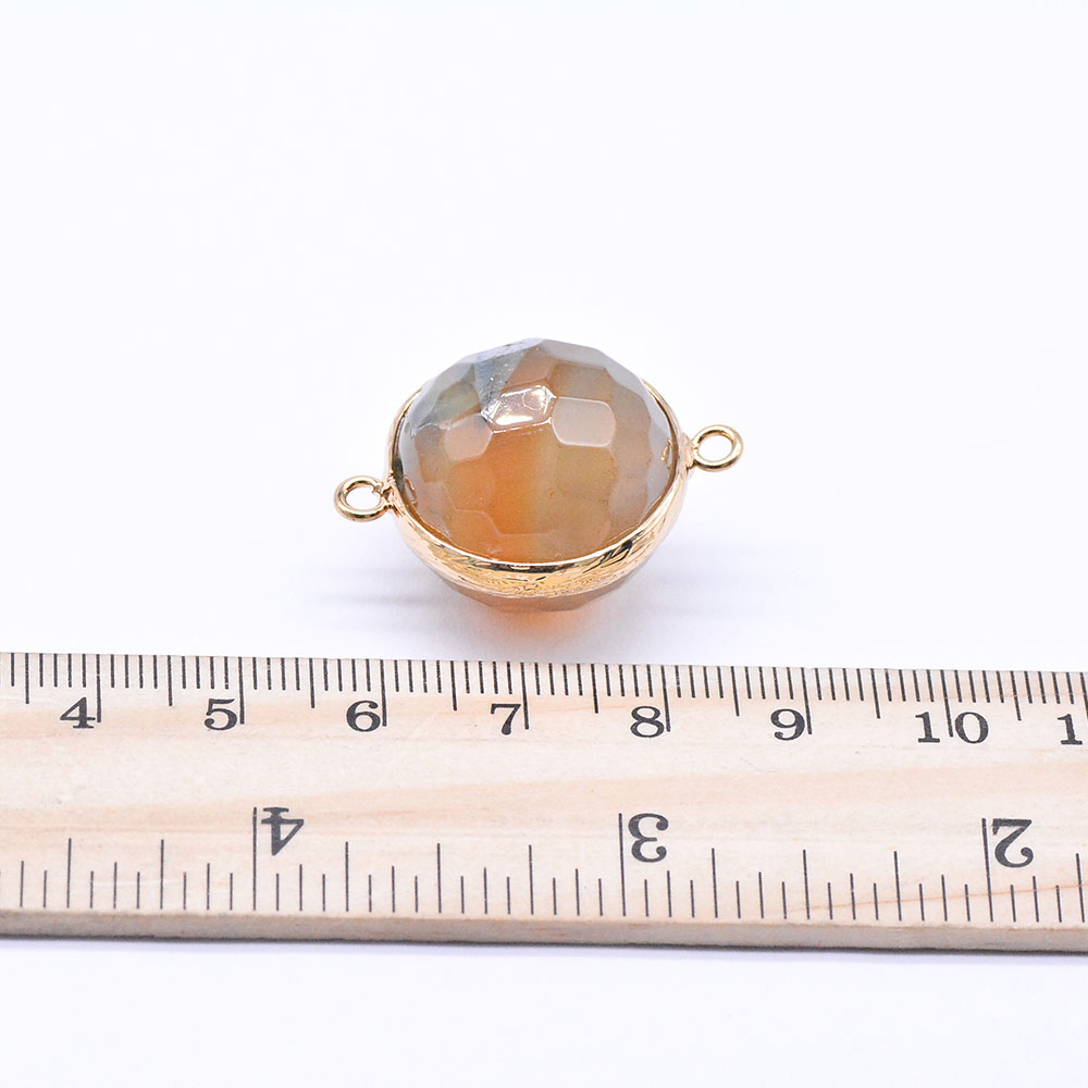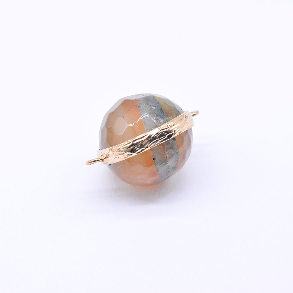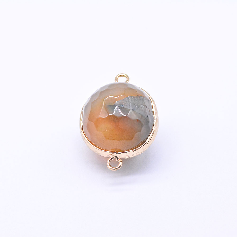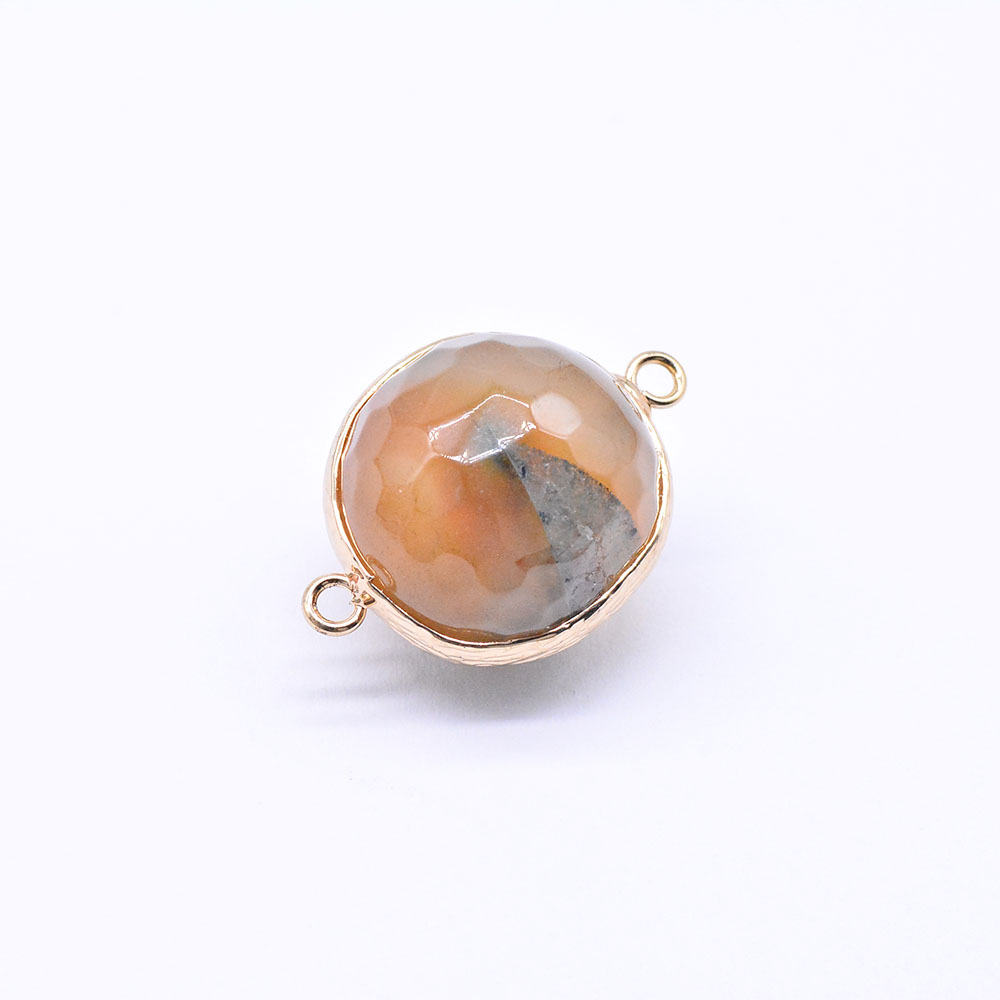 天然石コネクターチャーム ボツワナアゲート ラウンドカット 2カン ゴールド (1ヶ)