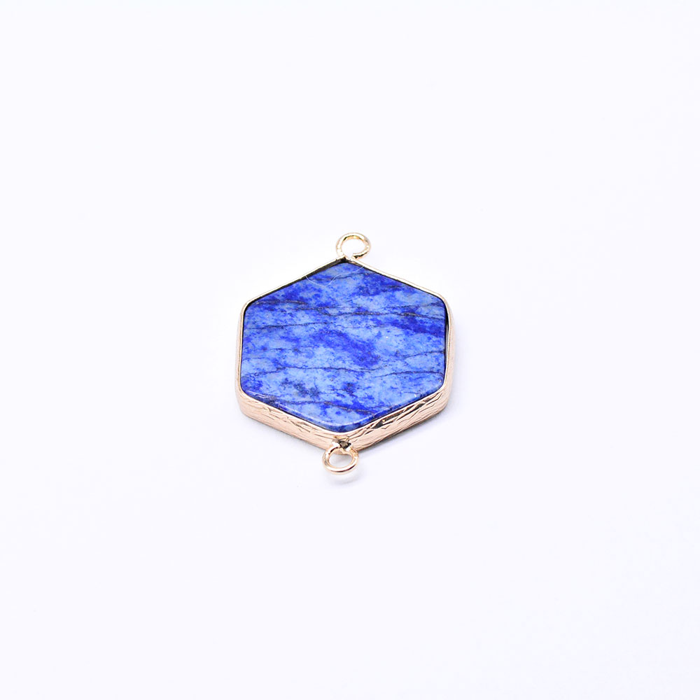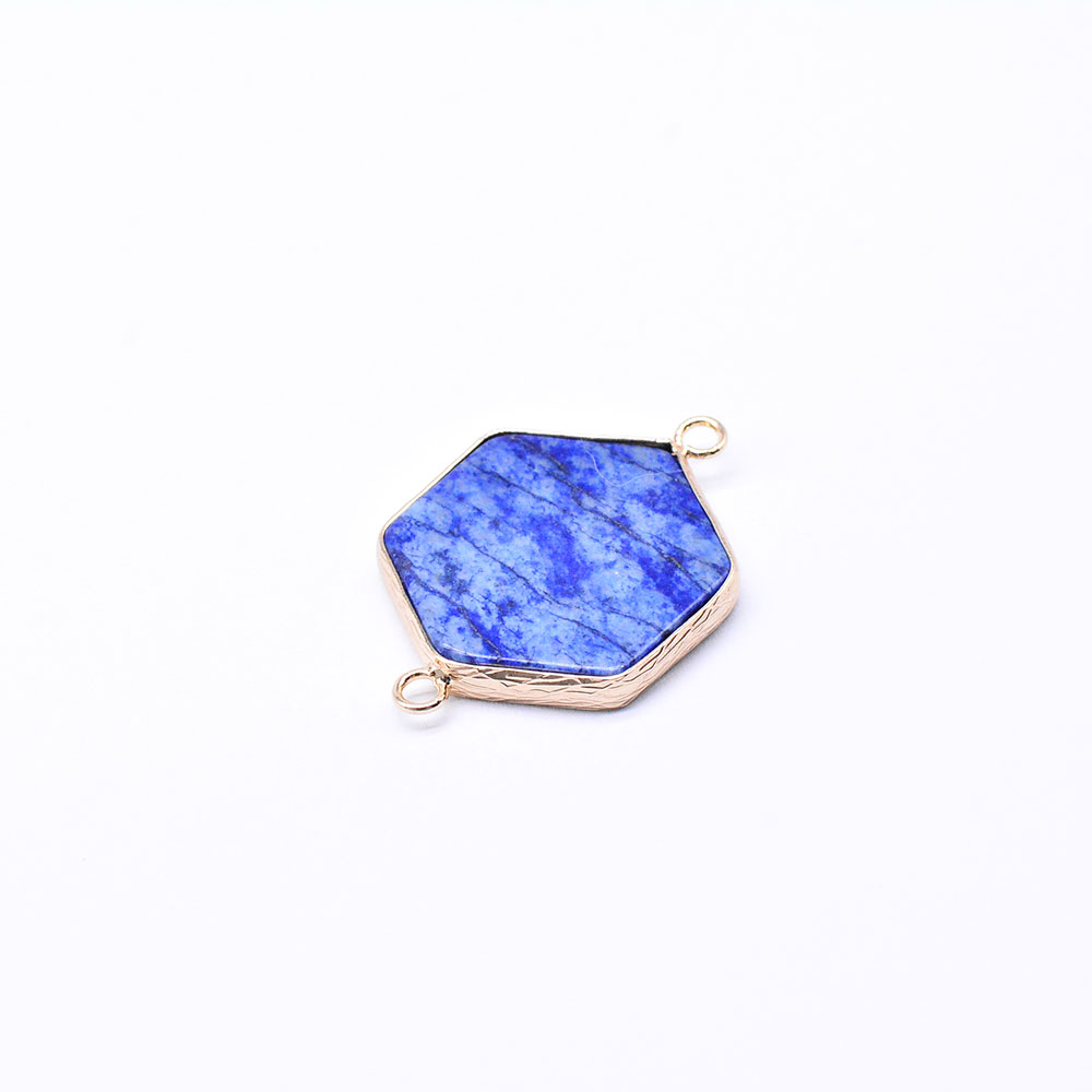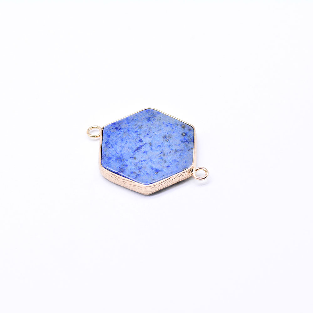 天然石フレームコネクターチャーム ソーダライト 六角形 2カン ゴールド (1ヶ)
