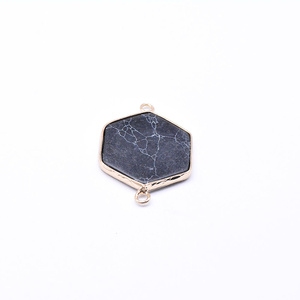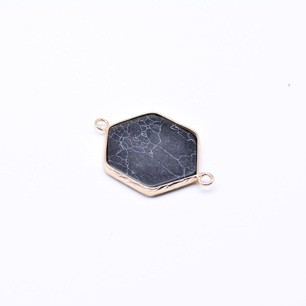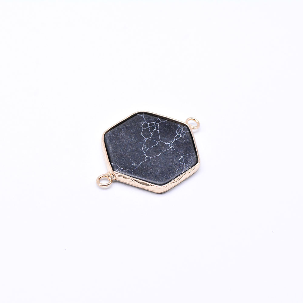 天然石フレームコネクターチャーム ブラックハウライト 六角形 2カン ゴールド (1ヶ)