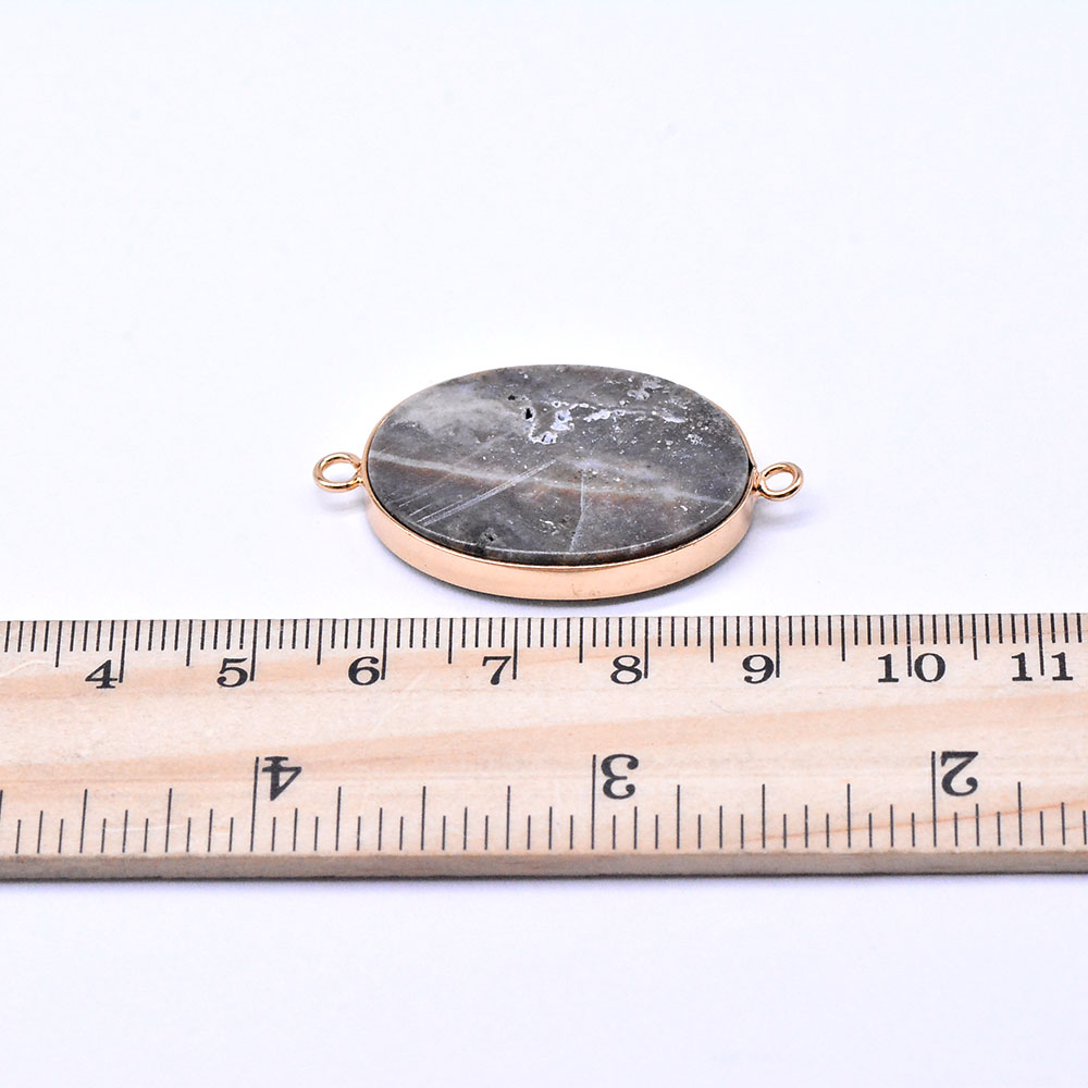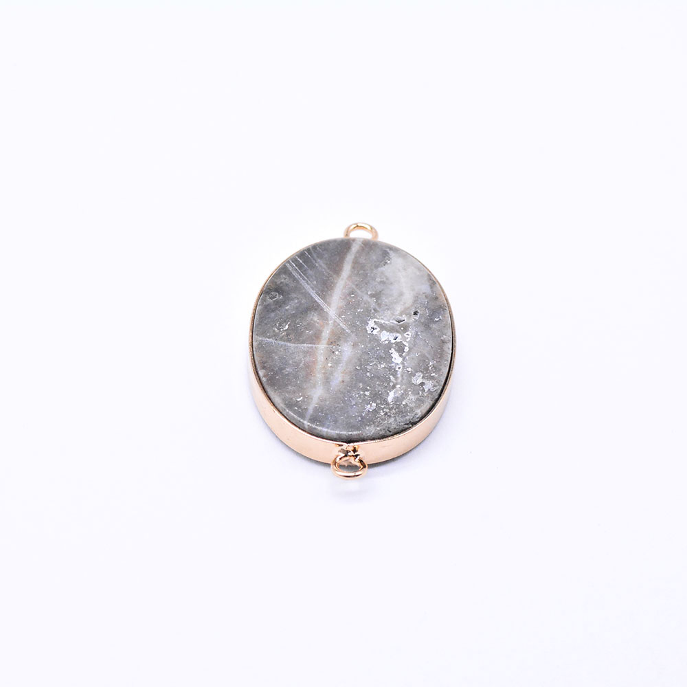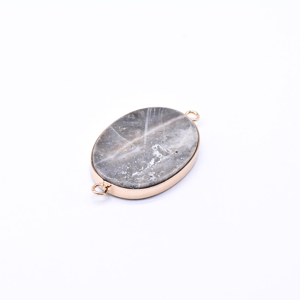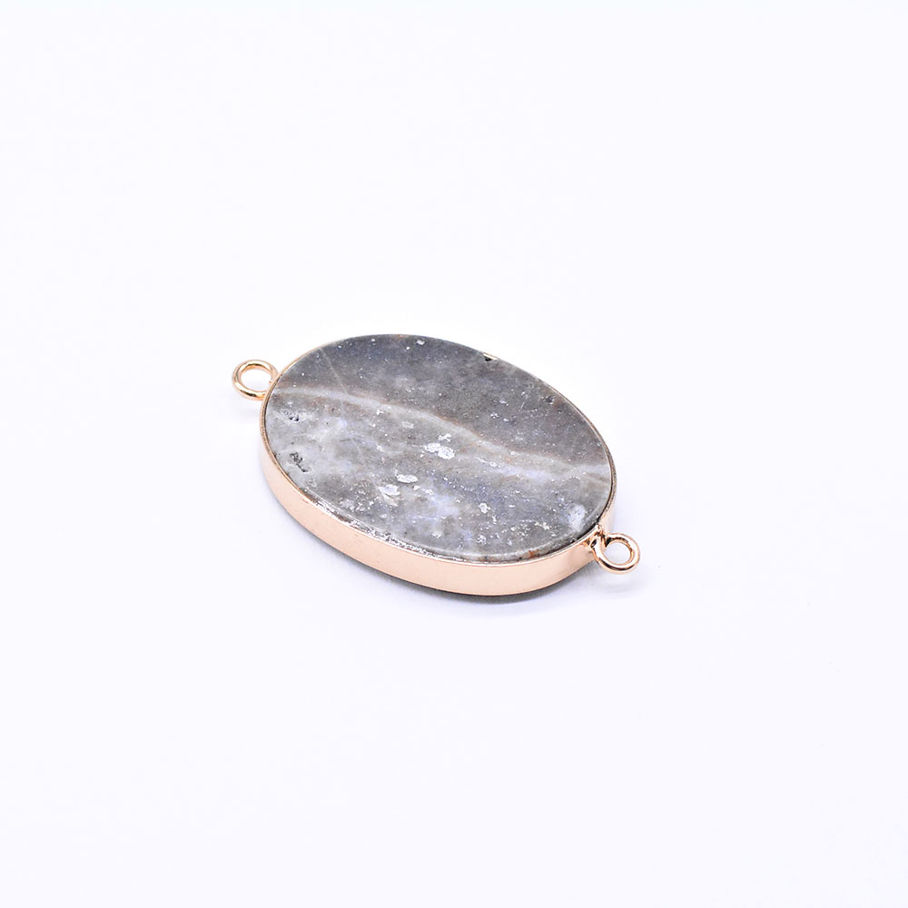 天然石フレームコネクターチャーム ラブラドライト オーバル 2カン ゴールド (1ヶ)