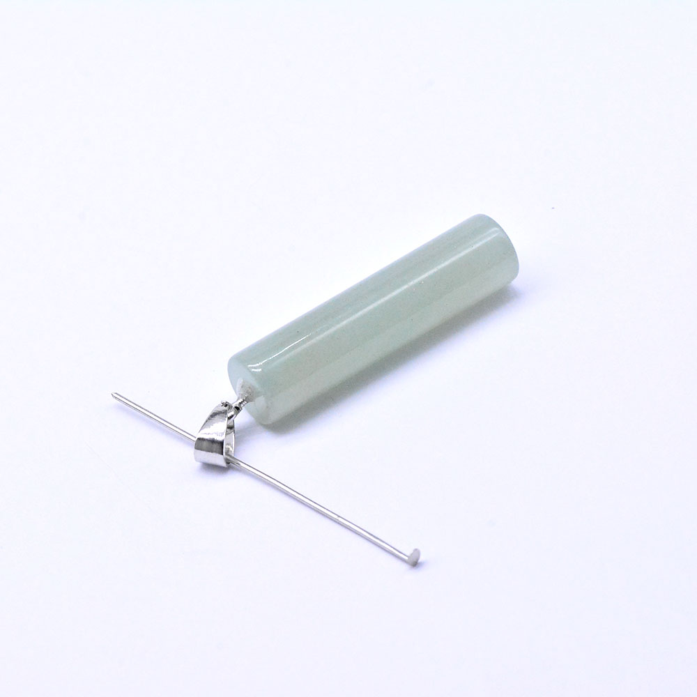 円柱天然石ペンダントトップ アベンチュリン 1カン ロジウム (1ヶ)