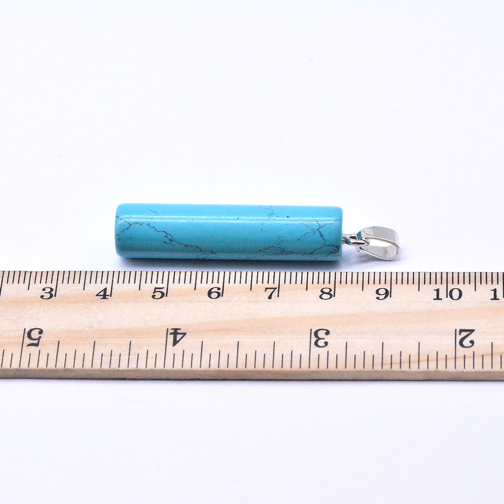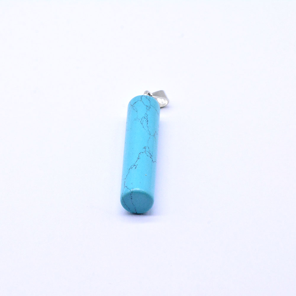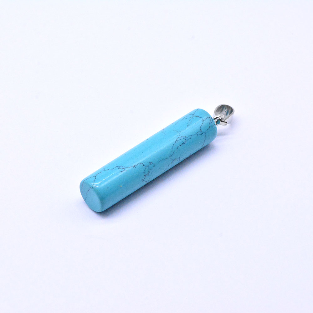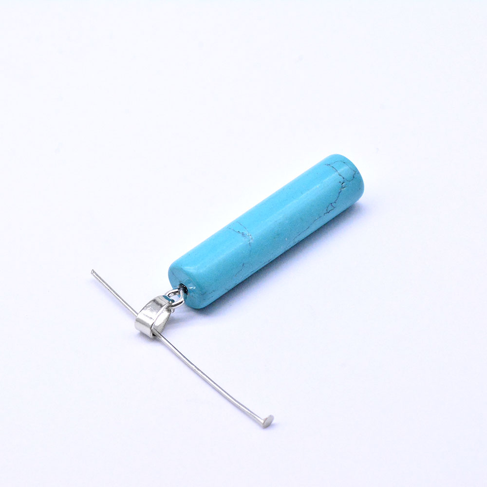円柱天然石ペンダントトップ ターコイズ 1カン ロジウム (1ヶ)