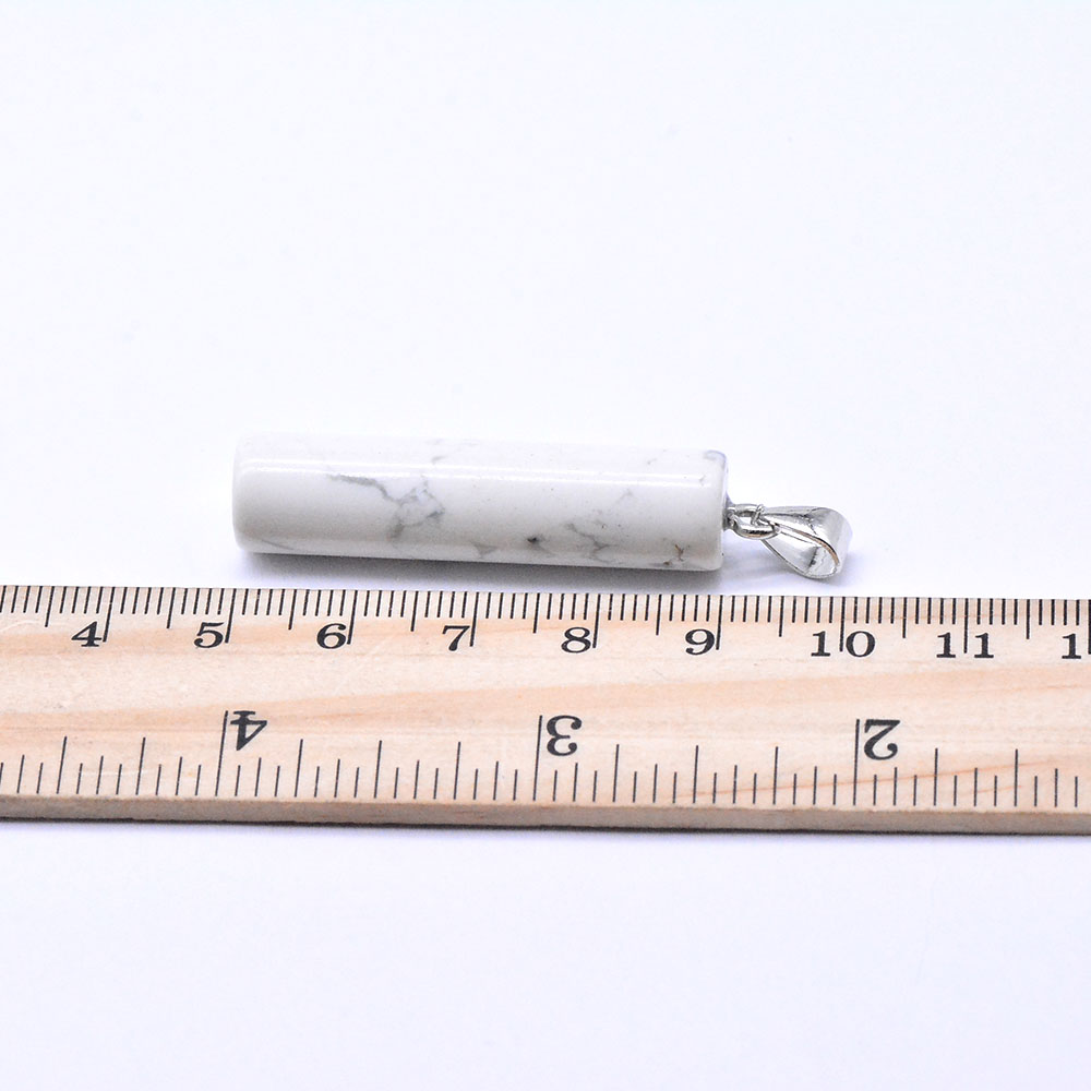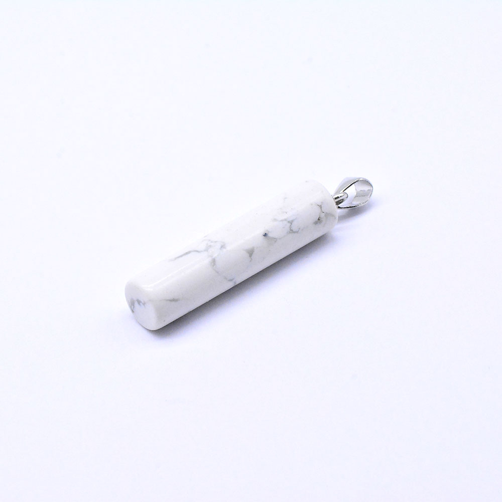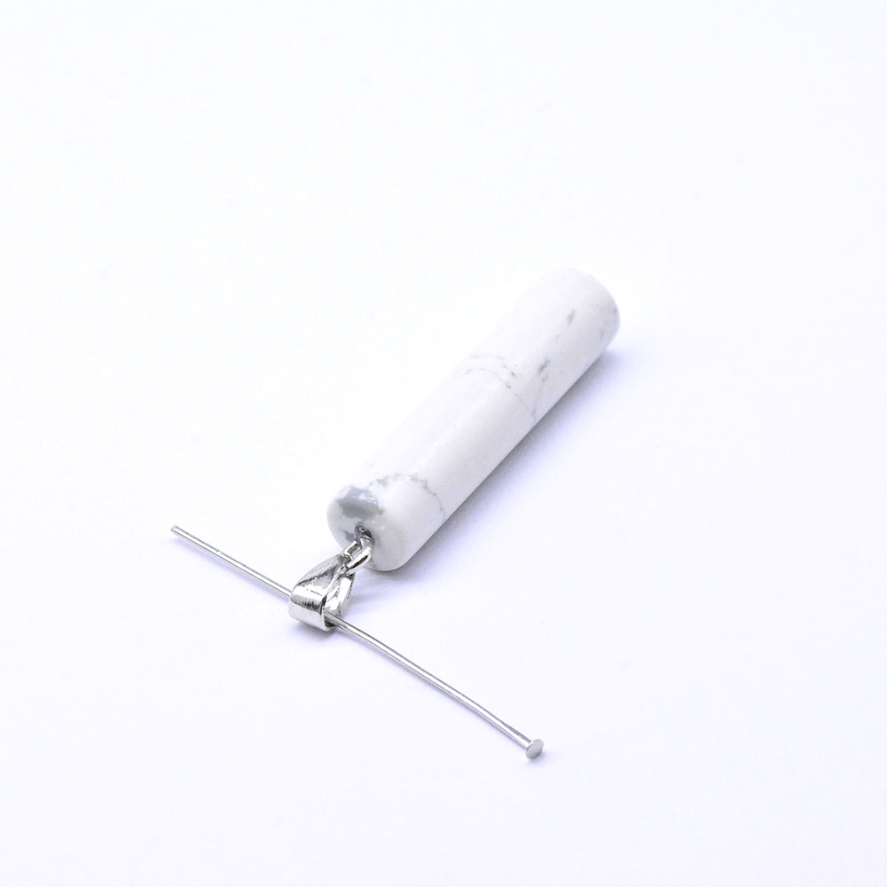 円柱天然石ペンダントトップ ハウライト 1カン ロジウム (1ヶ)