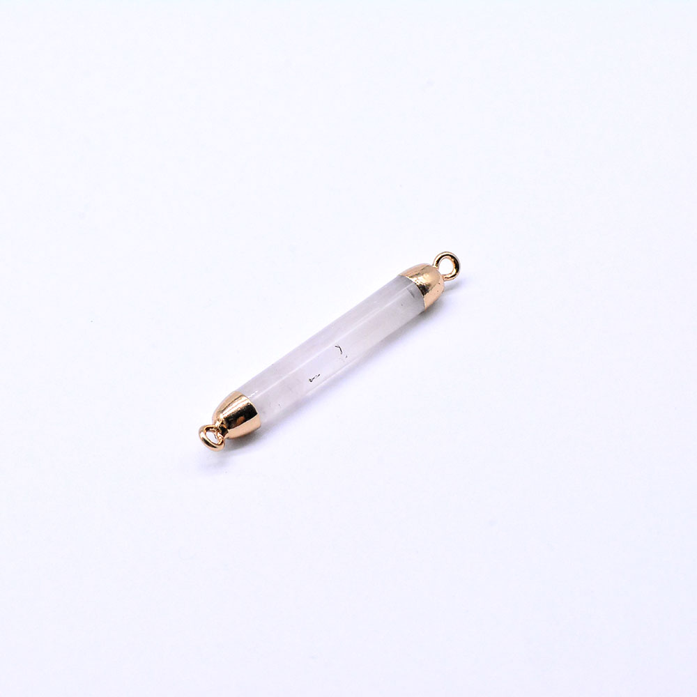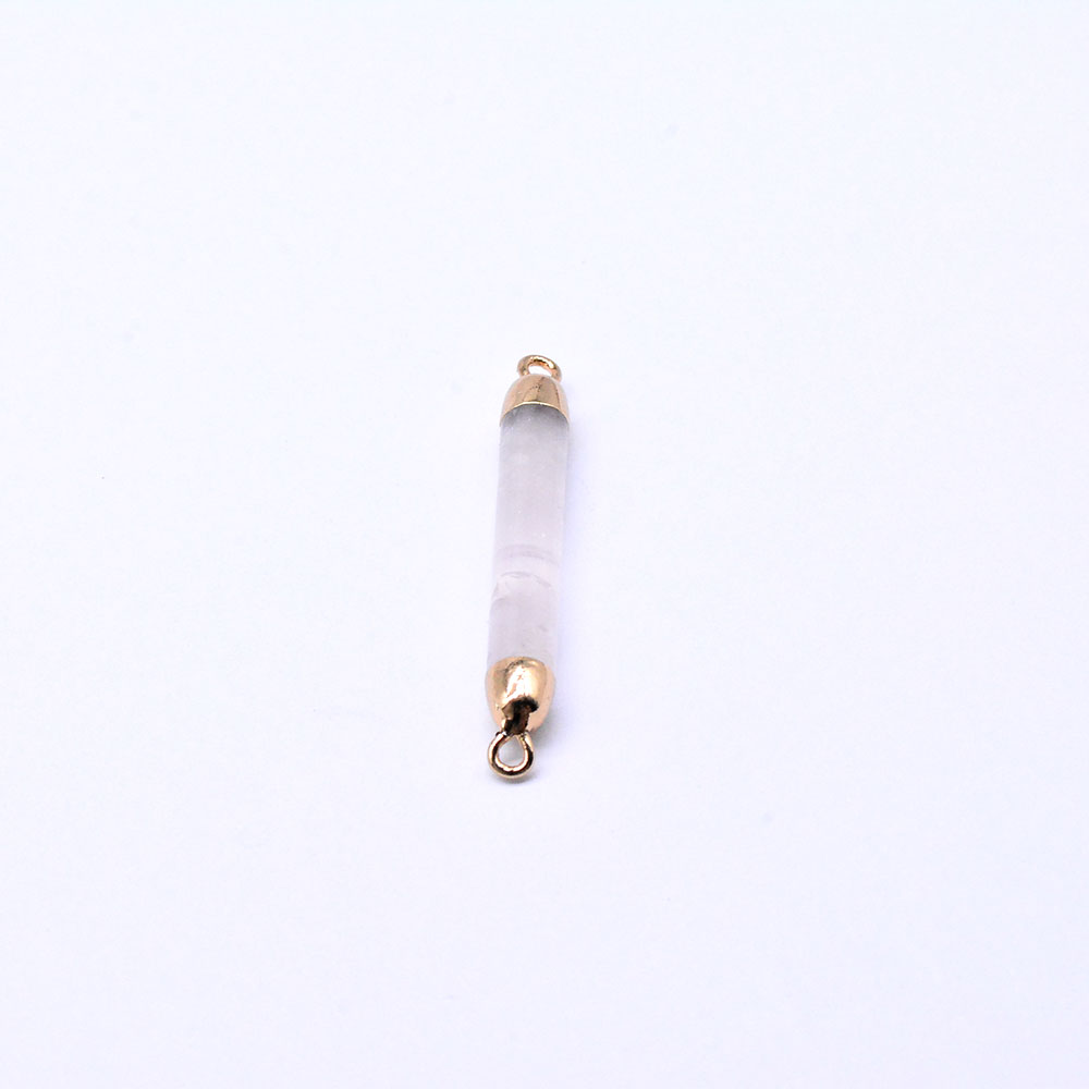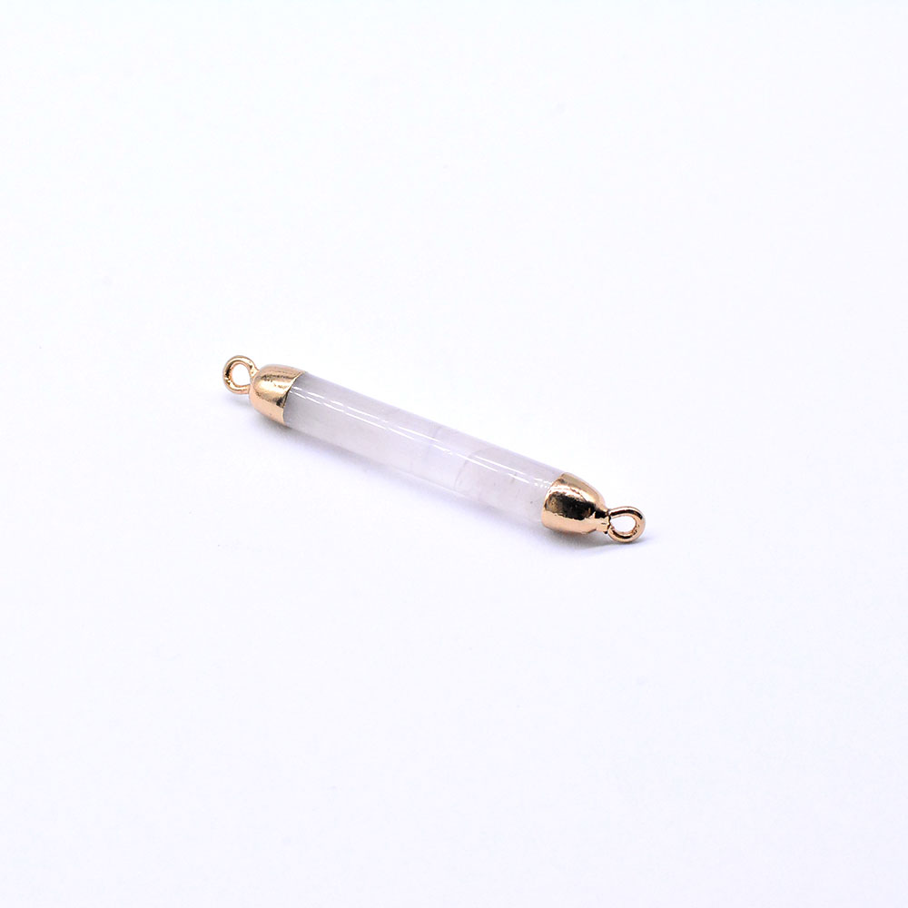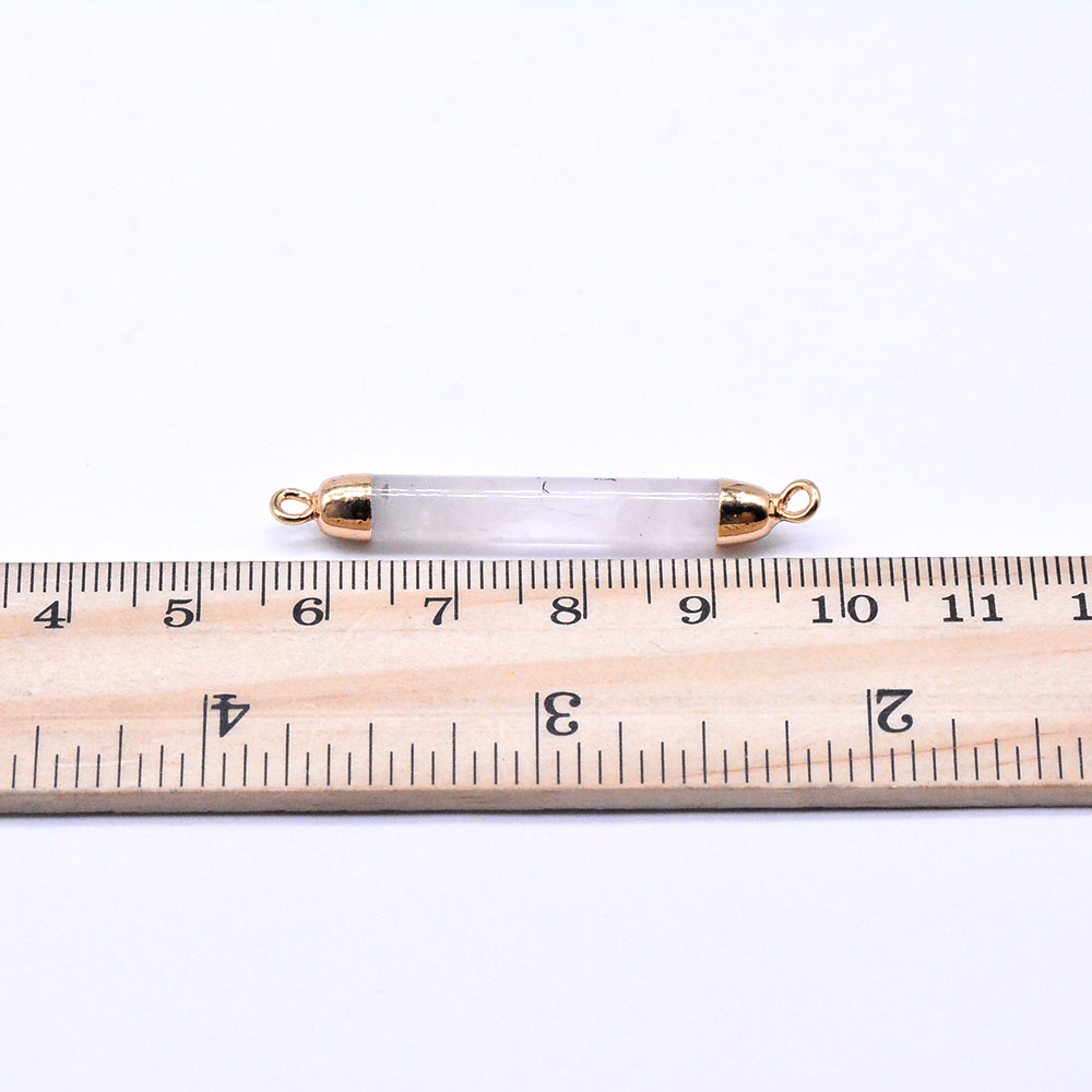 円柱天然石コネクターチャーム ローズクォーツ 2カン ゴールド (1ヶ)