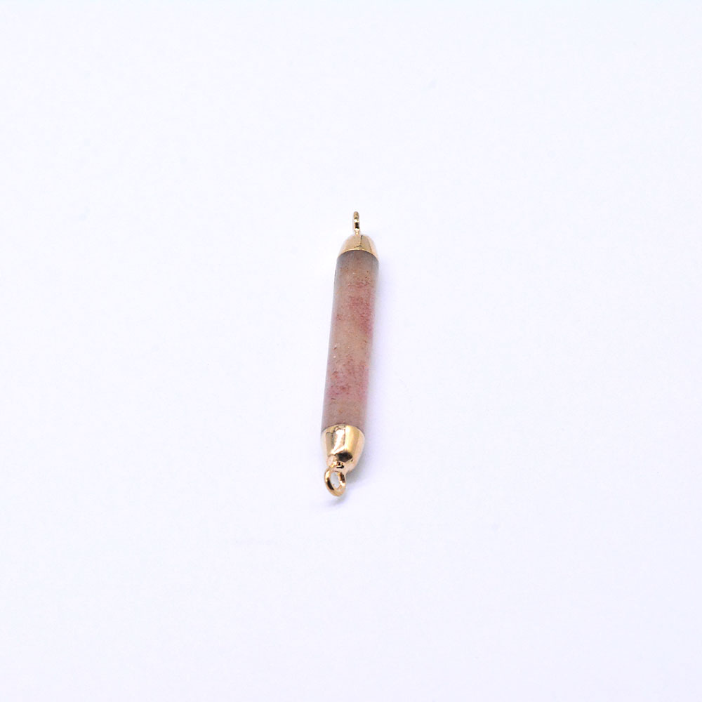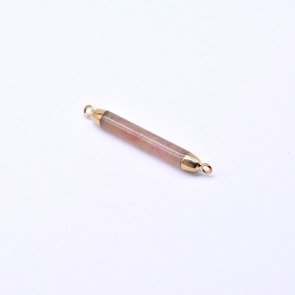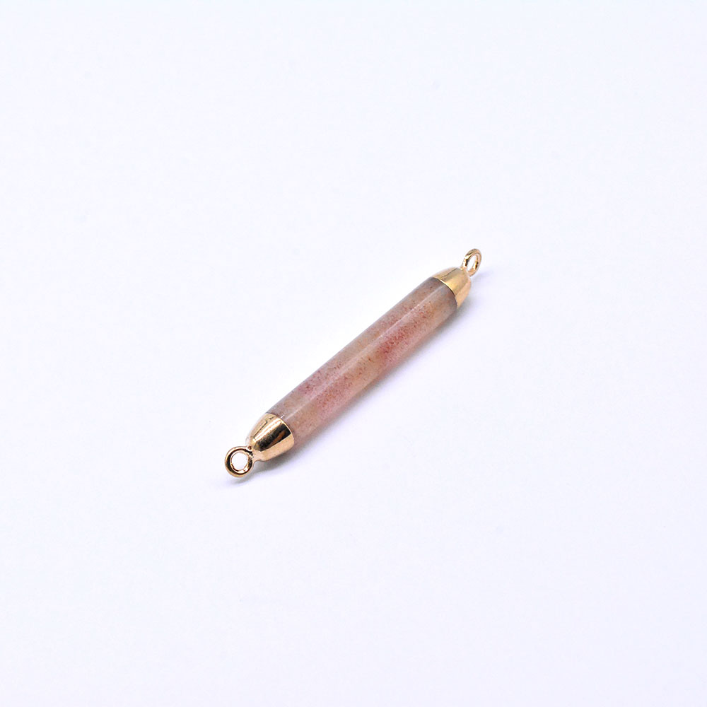 円柱天然石コネクターチャーム インカローズ 2カン ゴールド (1ヶ)