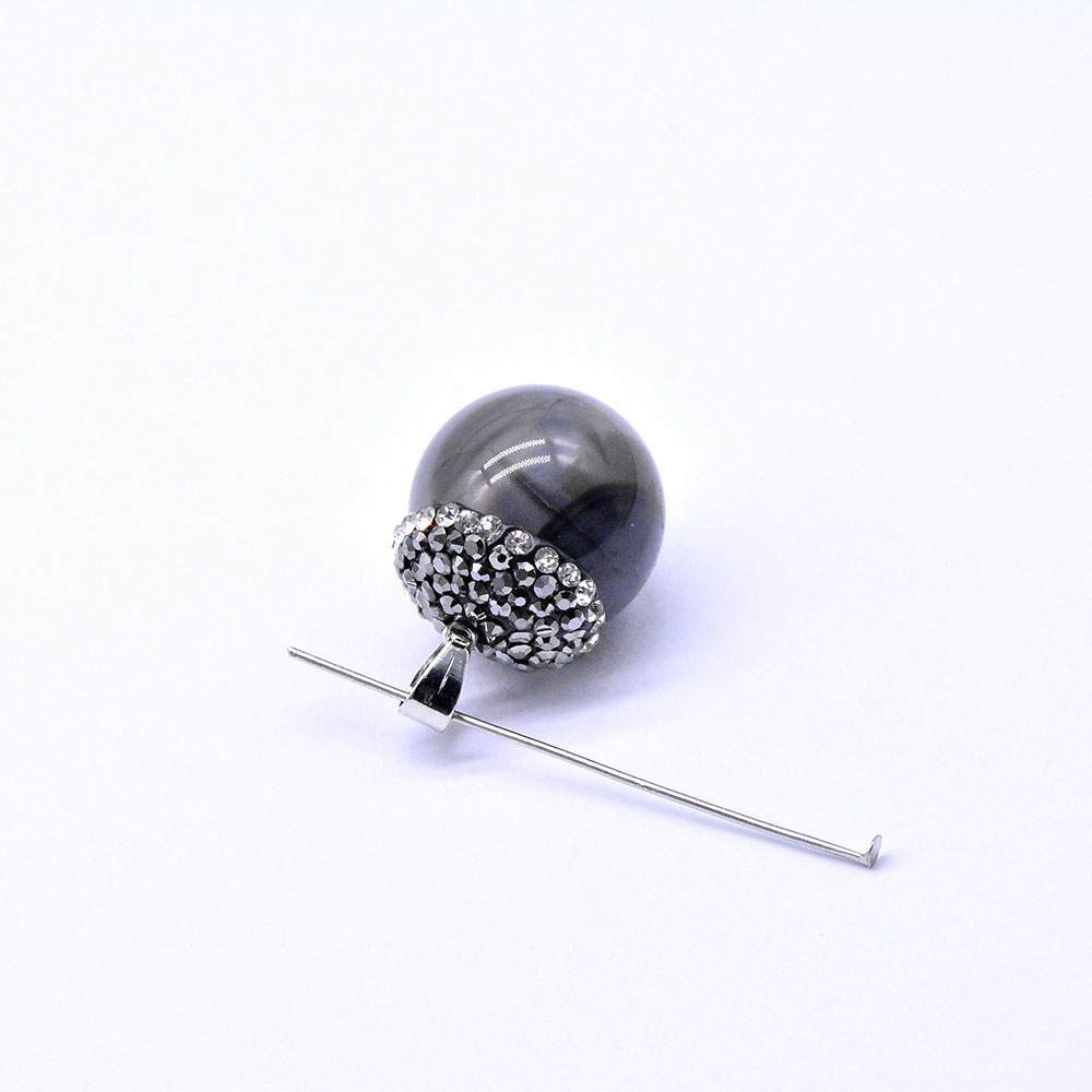 天然石ペンダントトップ ブラックオニキス 石付き 1カン ロジウム (1ヶ)