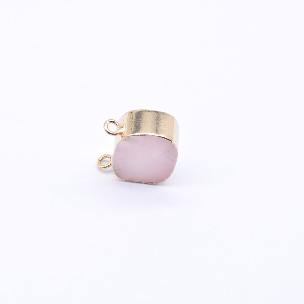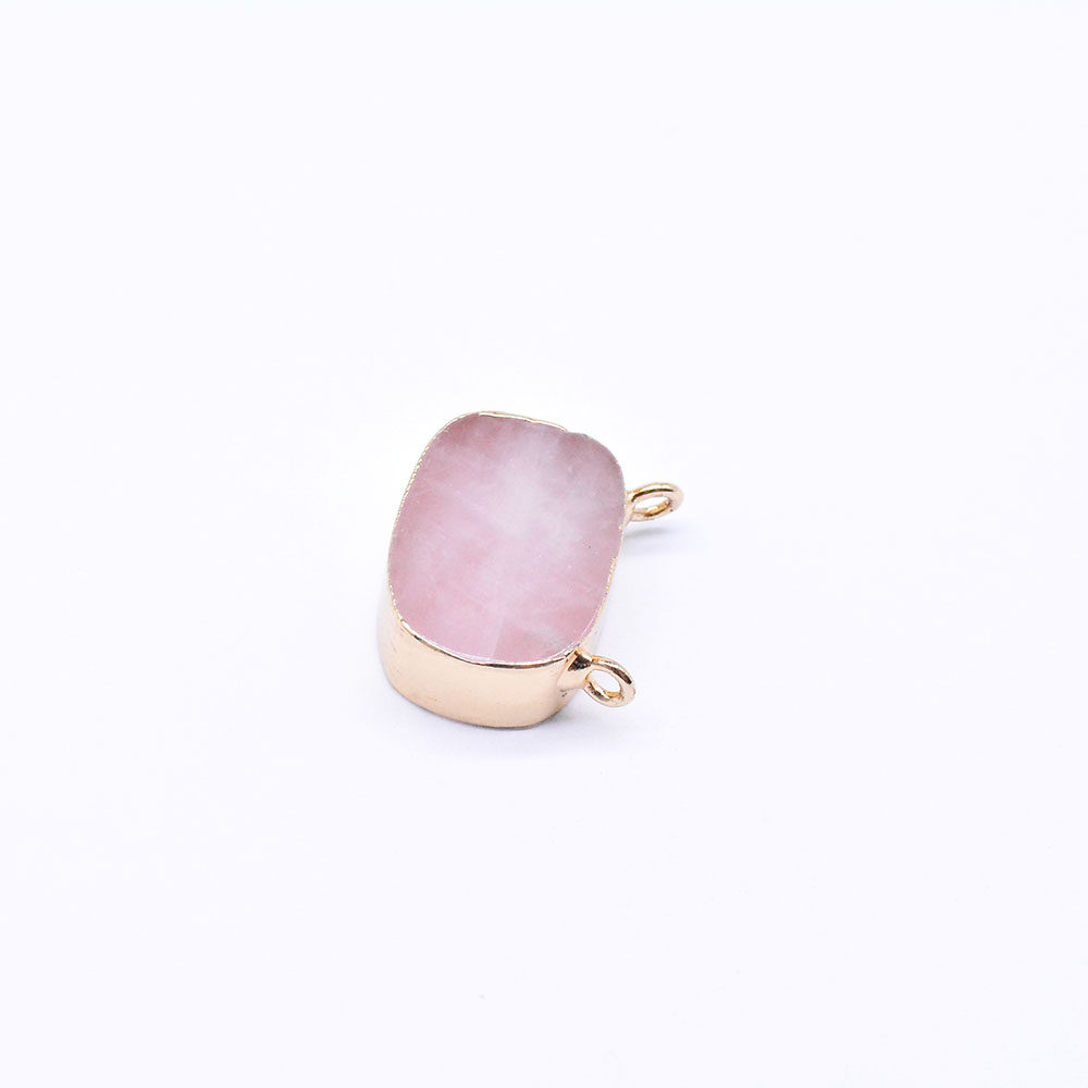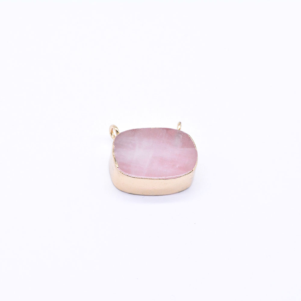 天然石フレームチャーム ローズクォーツ 楕円 2カン ゴールド (1ヶ)