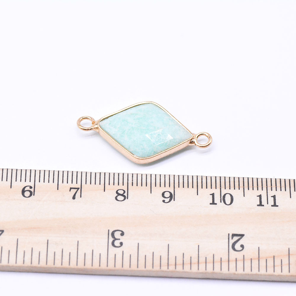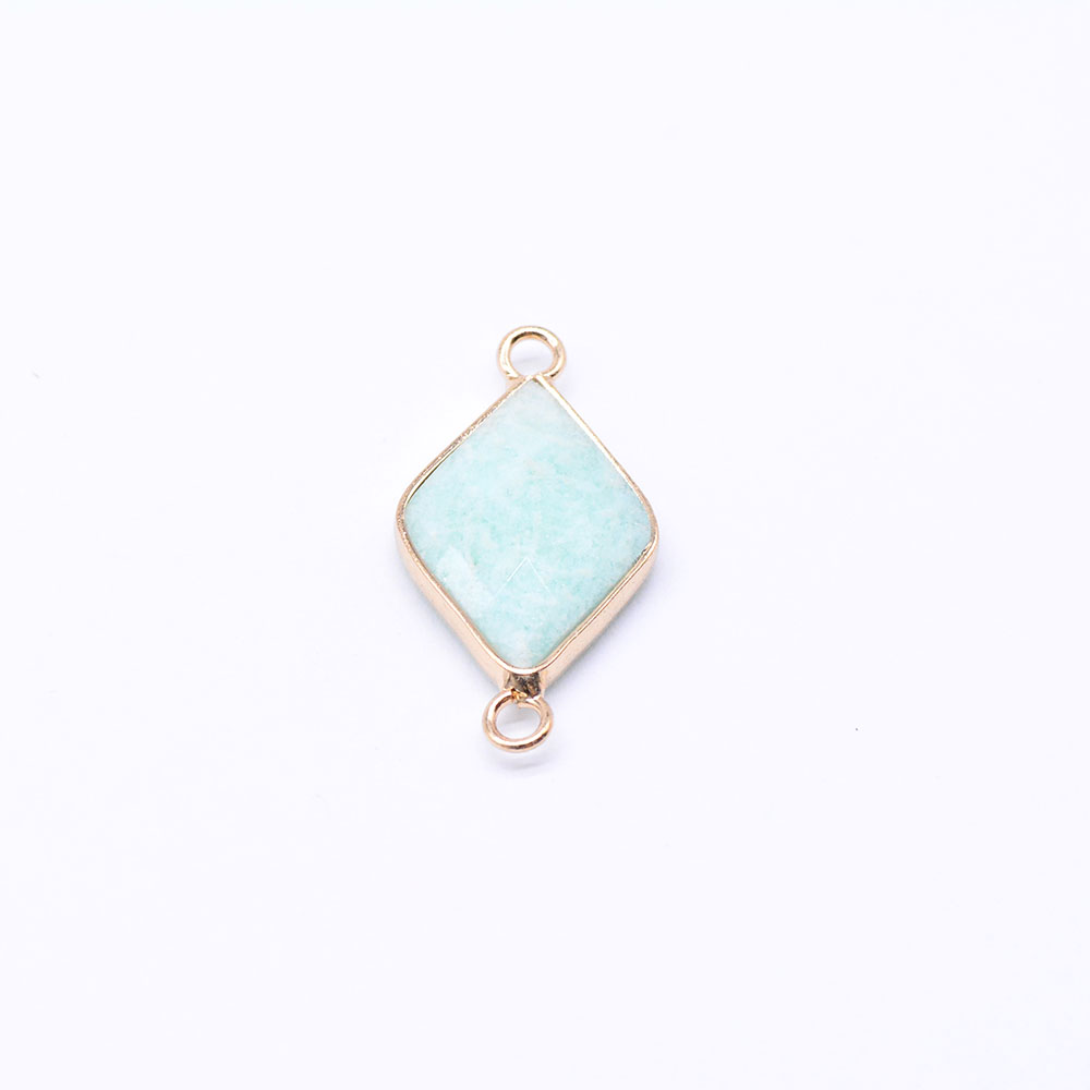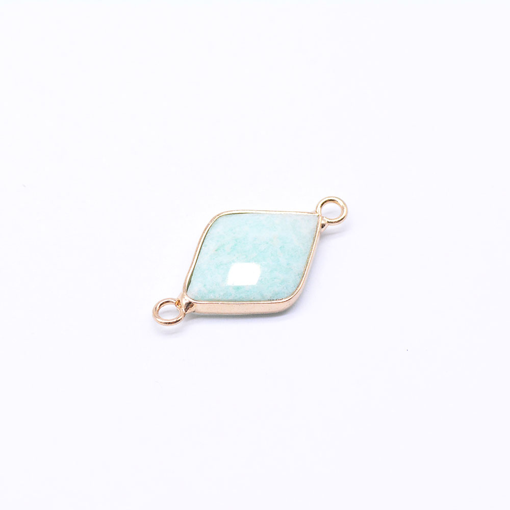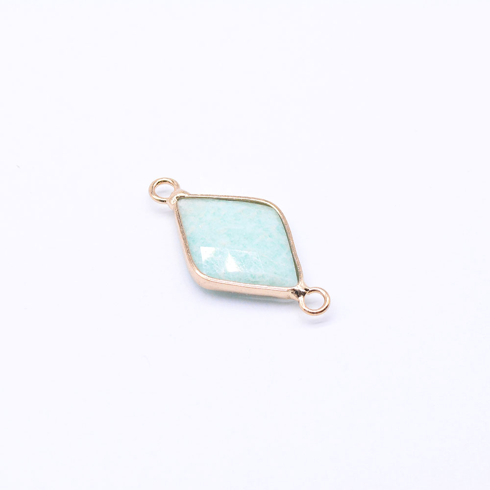 天然石コネクターチャーム アマゾナイト 菱型カット 2カン ゴールド (1ヶ)