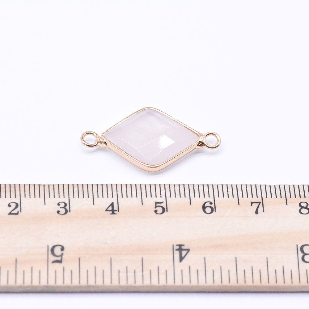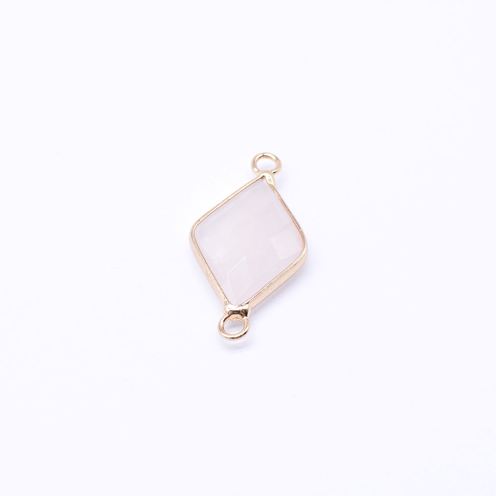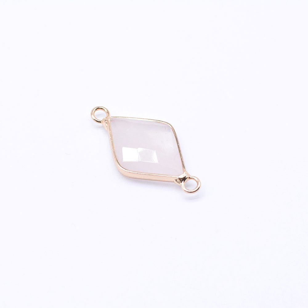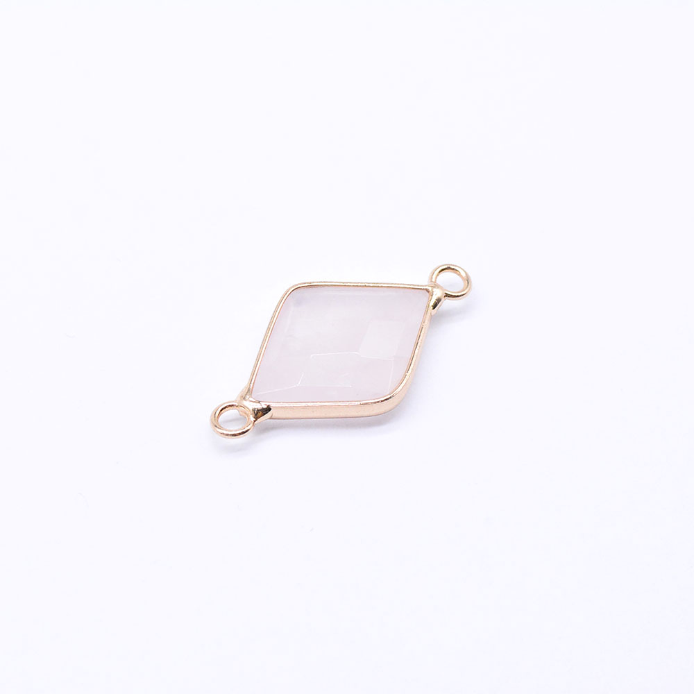天然石コネクターチャーム ローズクォーツ 菱型カット 2カン ゴールド (1ヶ)