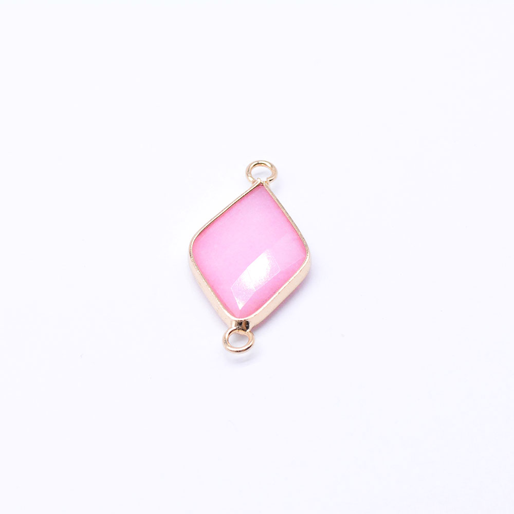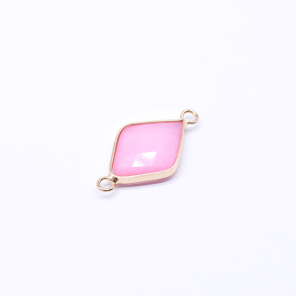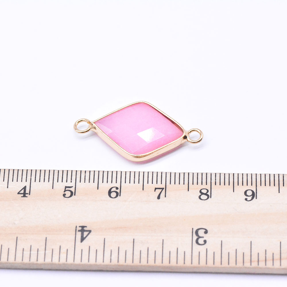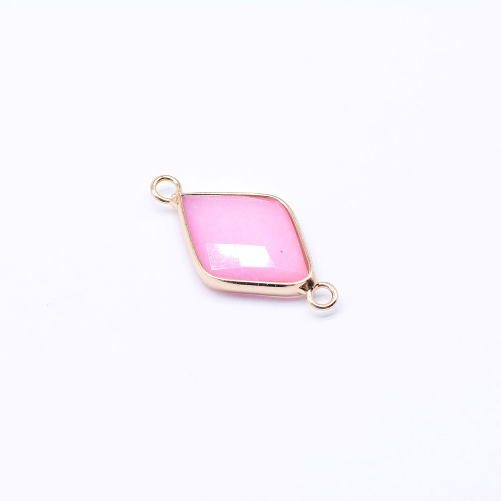 天然石コネクターチャーム ピンクジェイド 菱型カット 2カン ゴールド (1ヶ)