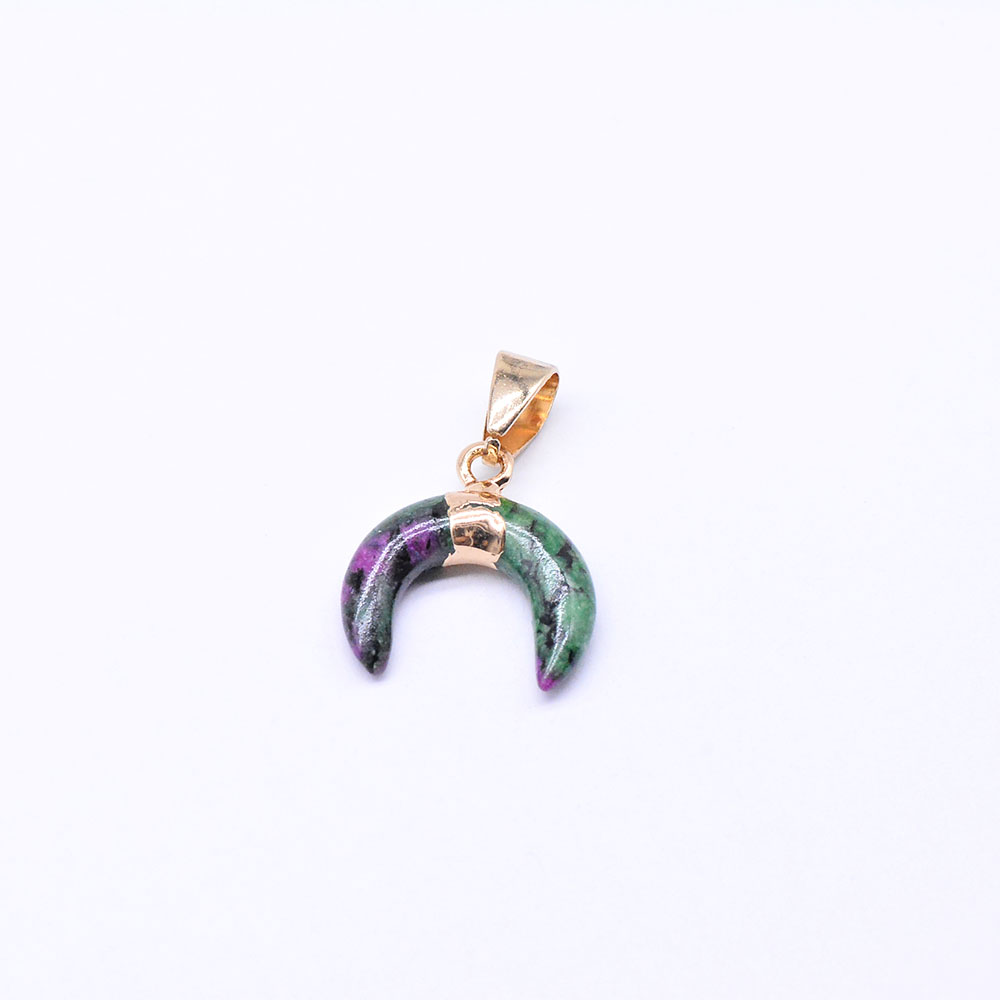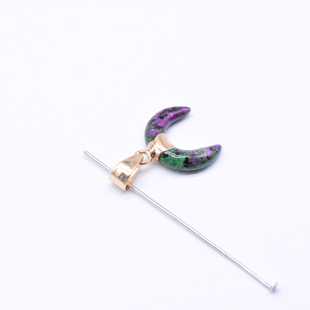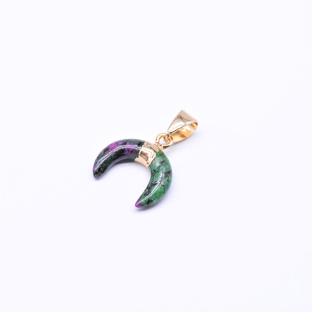 天然石ペンダントチャーム ユナカイト 牛角形 バチカン付き ゴールド (1ヶ)