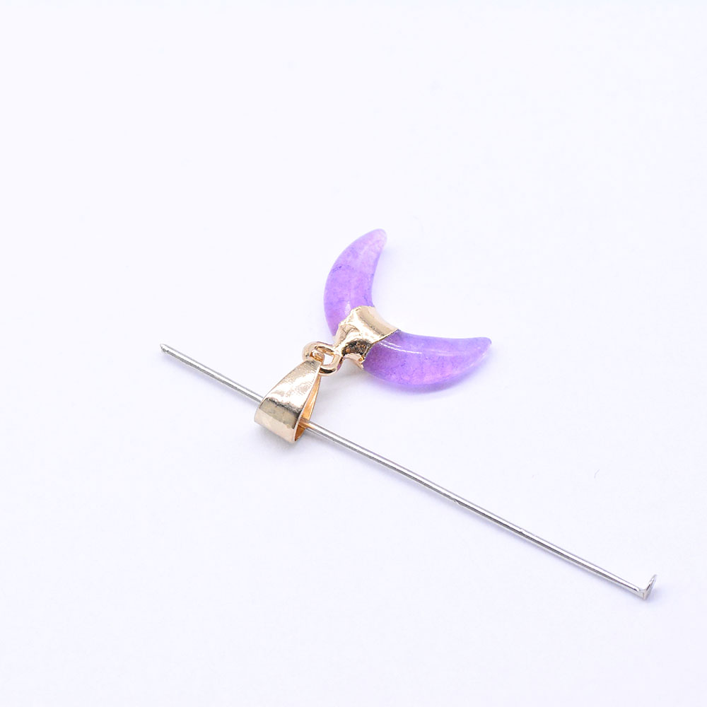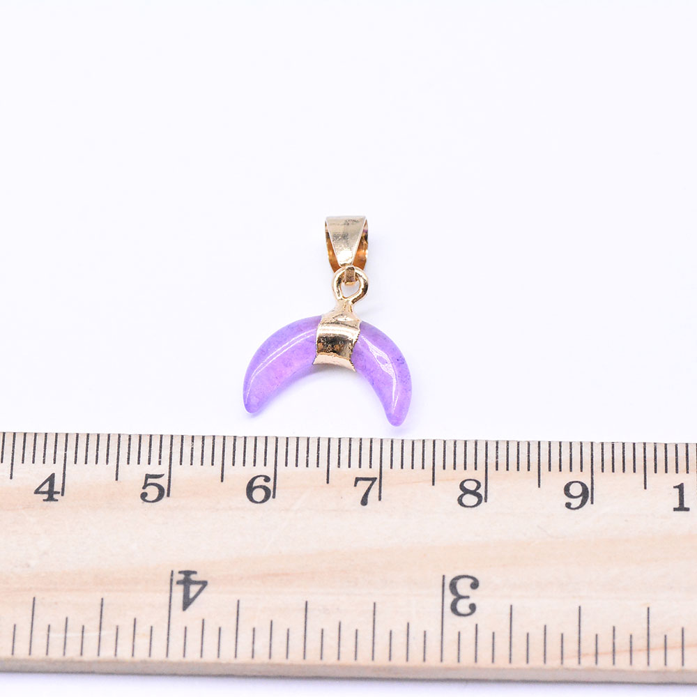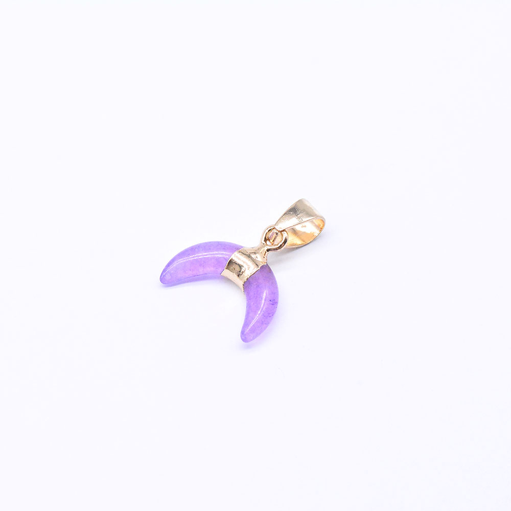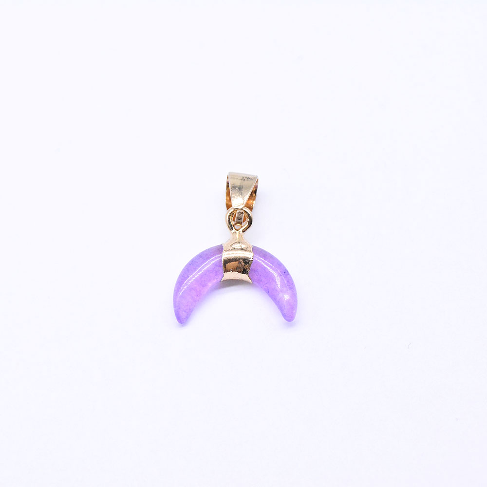 天然石ペンダントチャーム ピンクジェイド 牛角形 バチカン付き ゴールド (1ヶ)