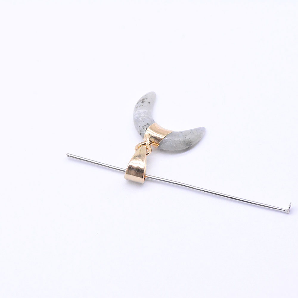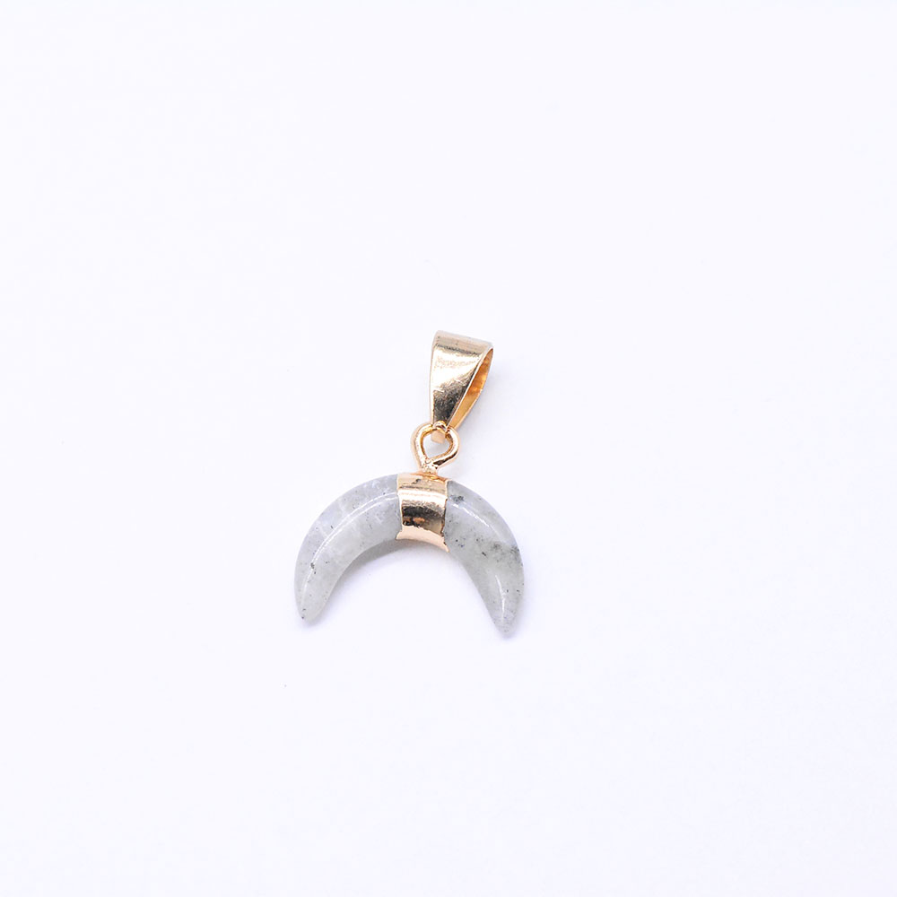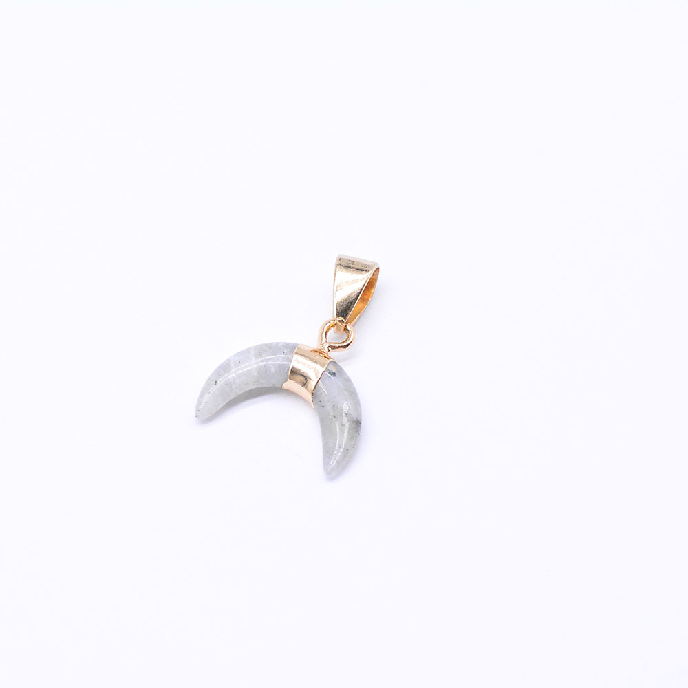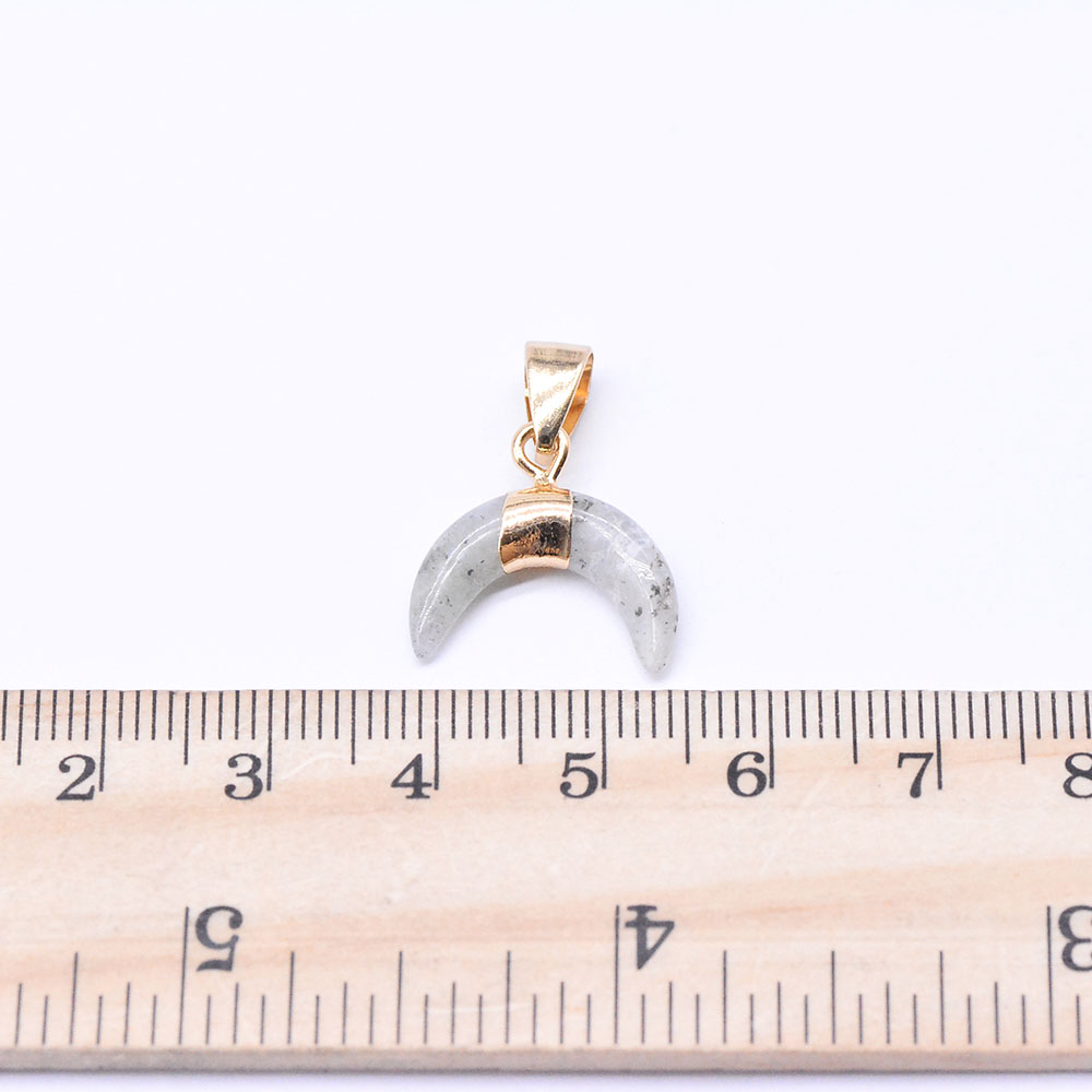 天然石ペンダントチャーム ラブラドライト 牛角形 バチカン付き ゴールド (1ヶ)