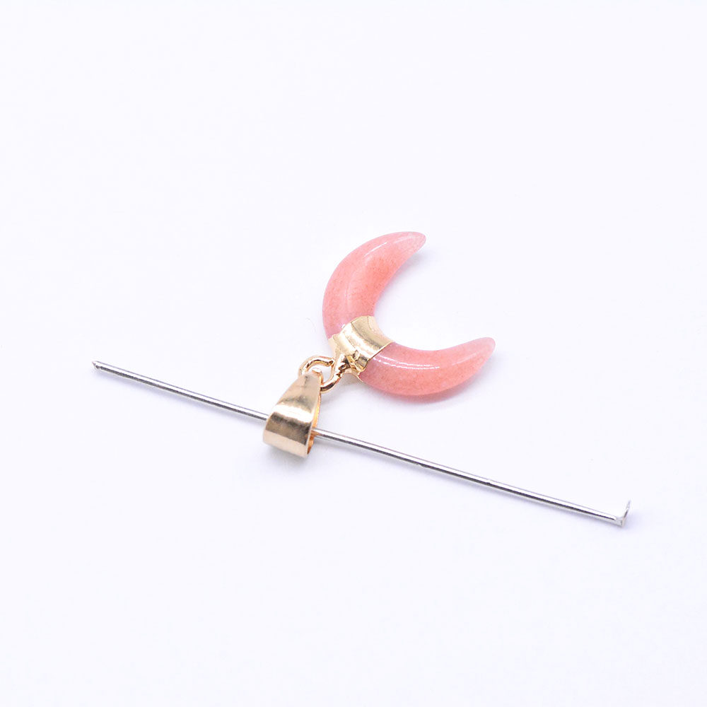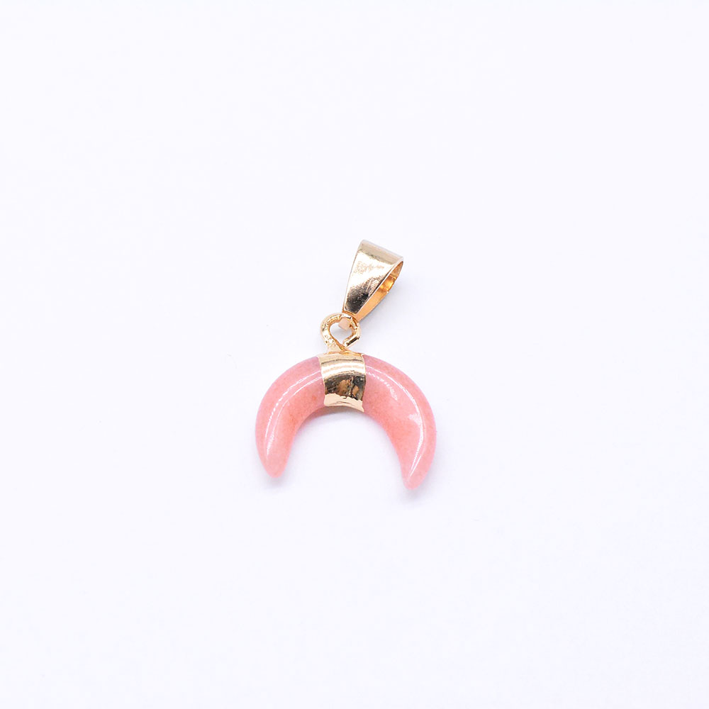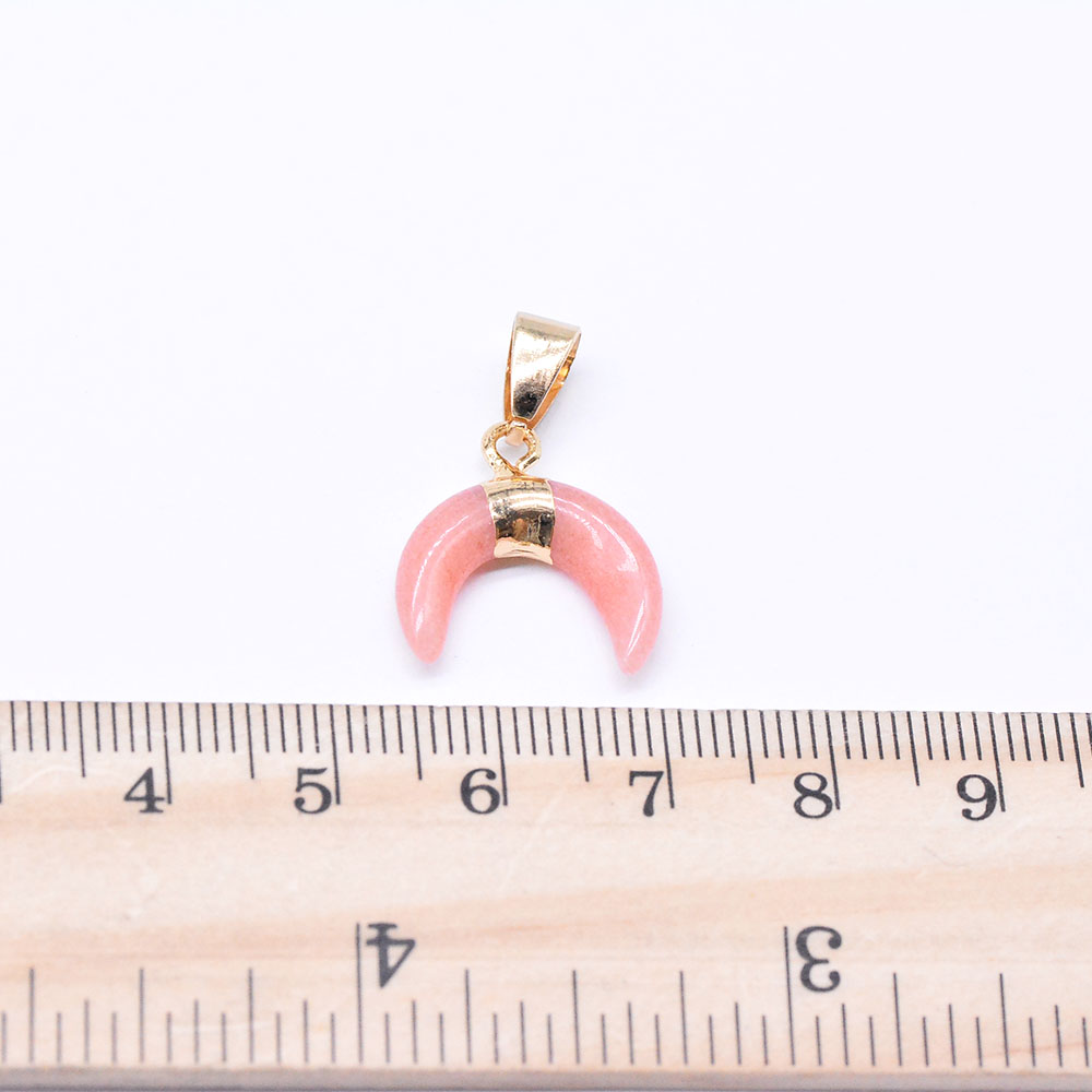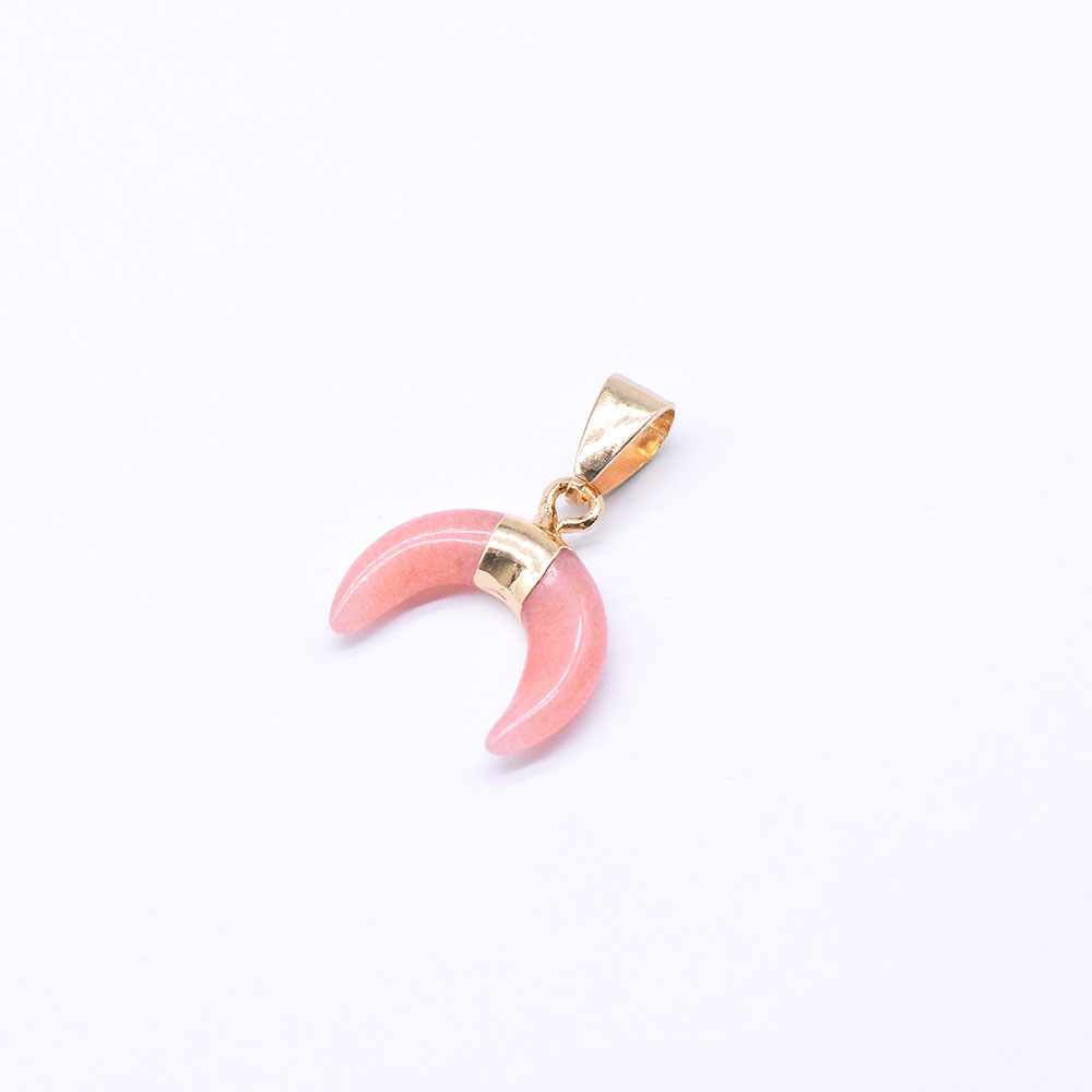 天然石ペンダントチャーム ピンクジェイド 牛角形 バチカン付き ゴールド (1ヶ)