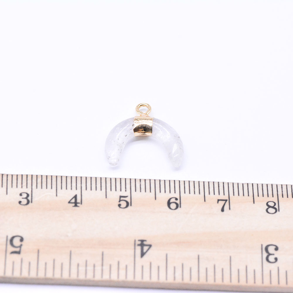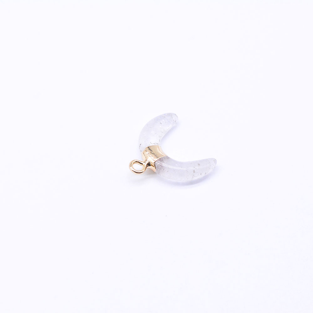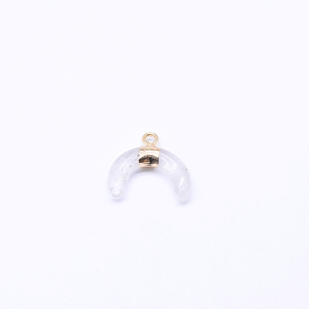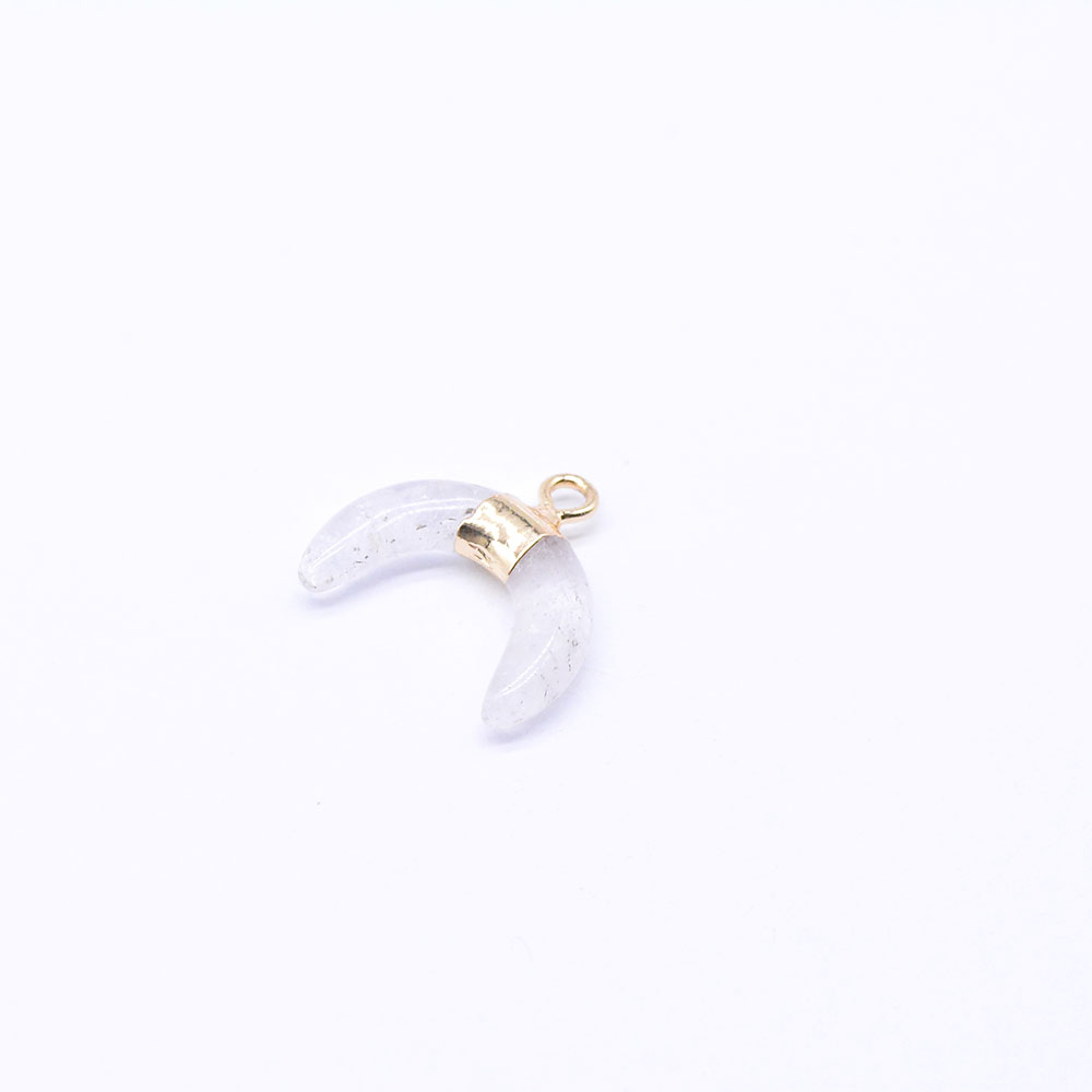 天然石ペンダントチャーム ホワイトクリスタル 牛角形 カン付き ゴールド (1ヶ)