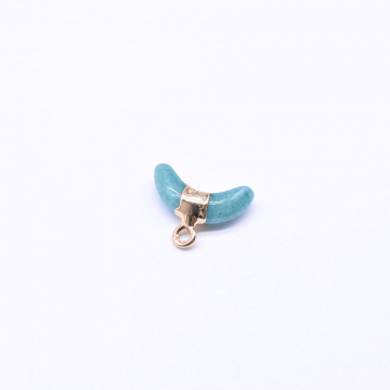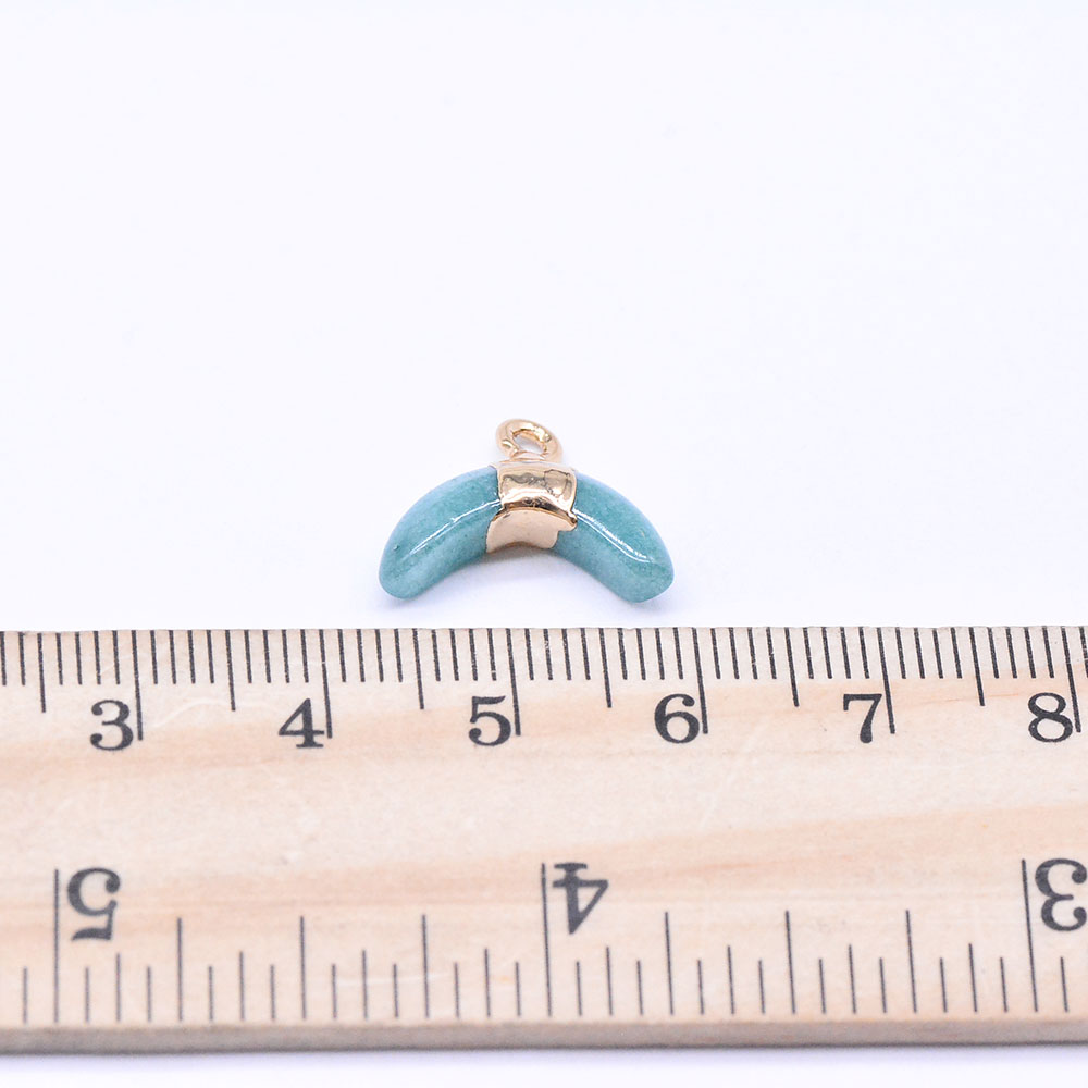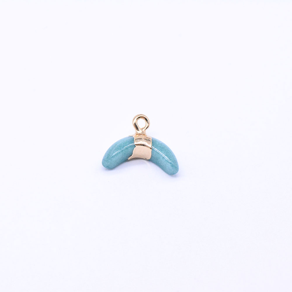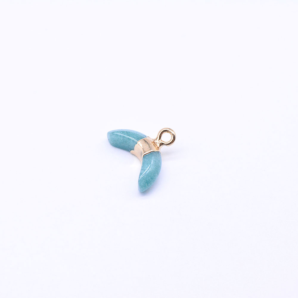 天然石ペンダントチャーム ブルージェイド 牛角形 カン付き ゴールド (1ヶ)