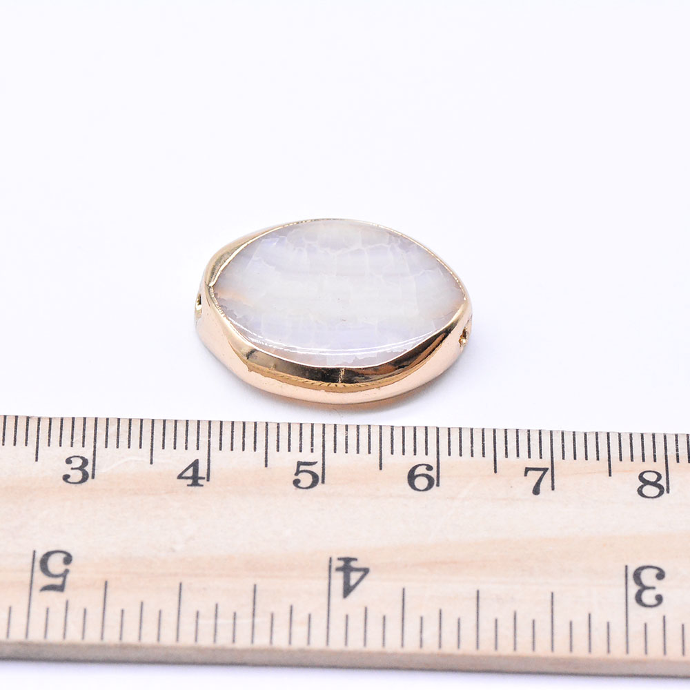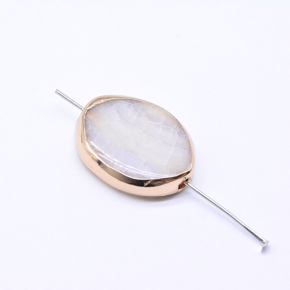 楕円形天然石ビーズ ホワイトアゲート ゴールド (1ヶ)