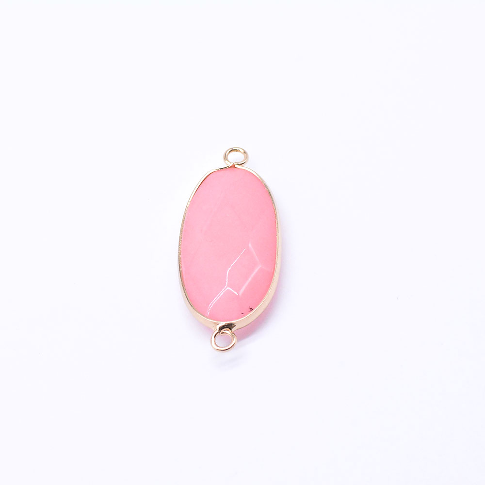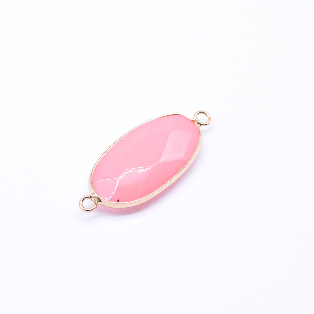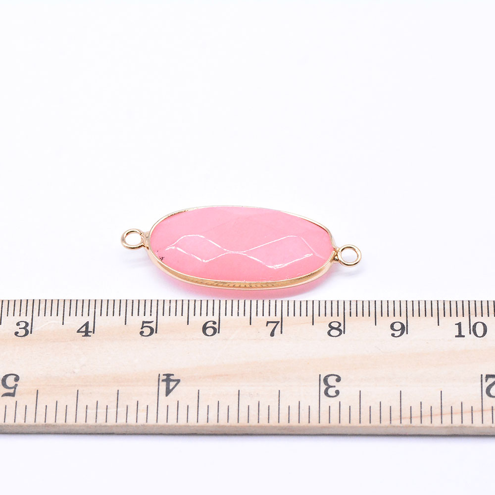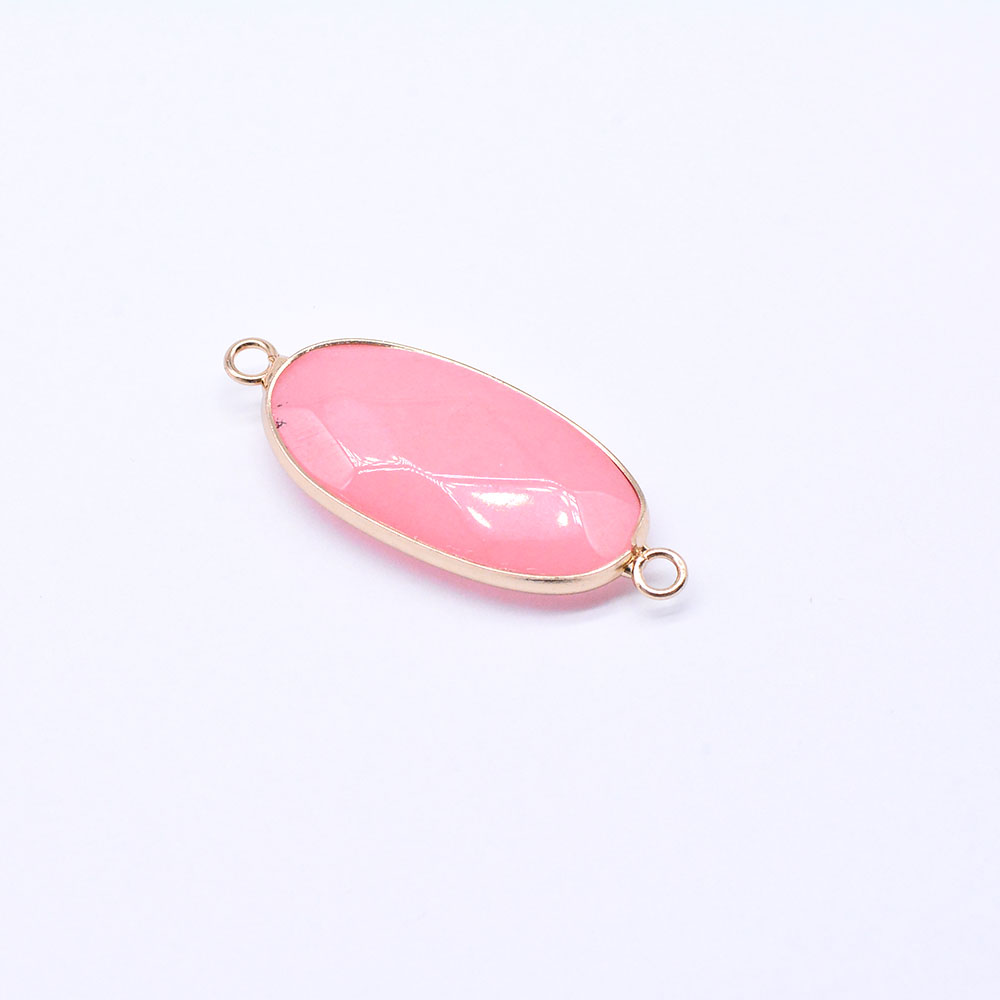 天然石コネクターチャーム ピンクジェイド 楕円カット 2カン 16×39mm ゴールド (1ヶ)