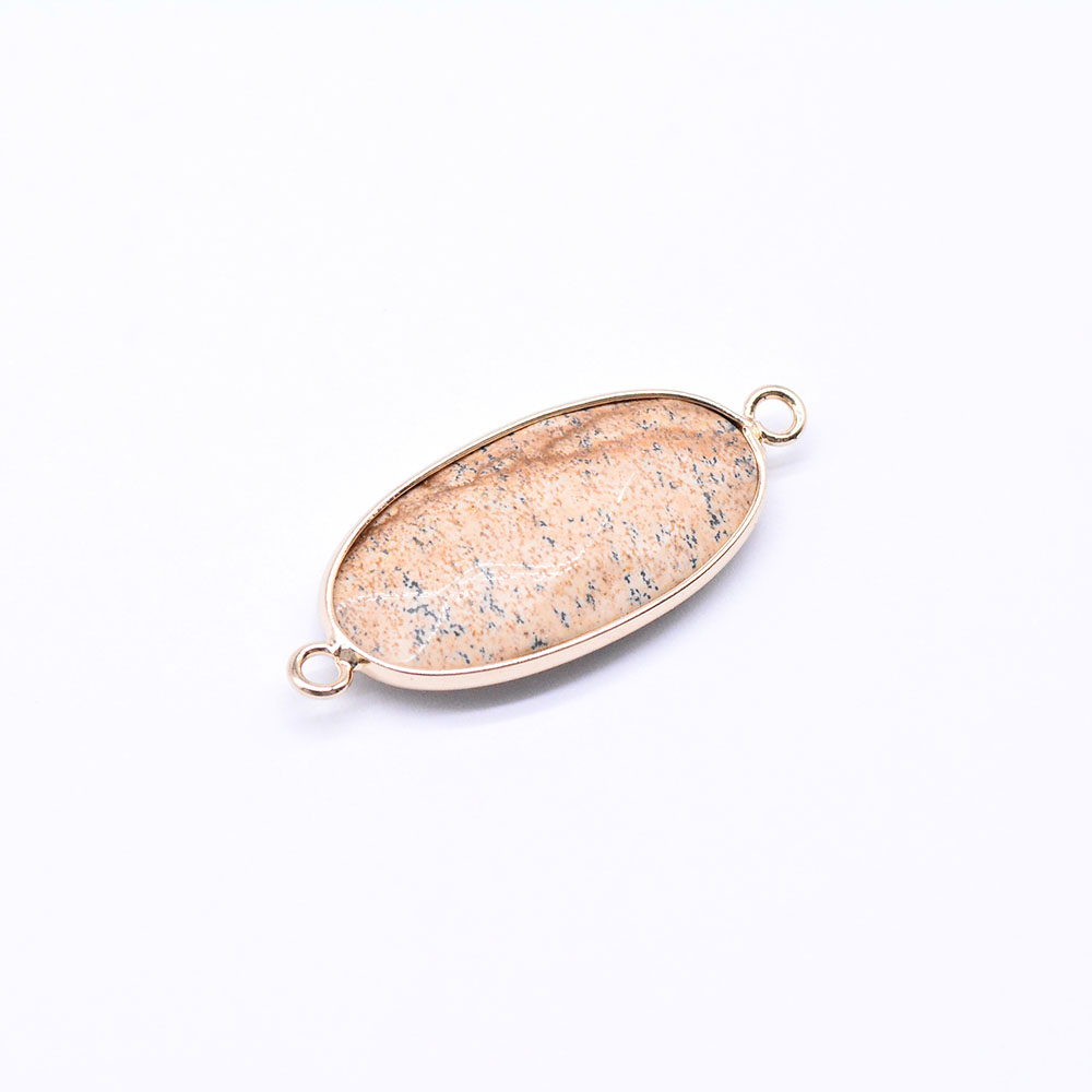 天然石コネクターチャーム ピクチャージャスパー 楕円カット 2カン 17×39mm ゴールド (1ヶ)