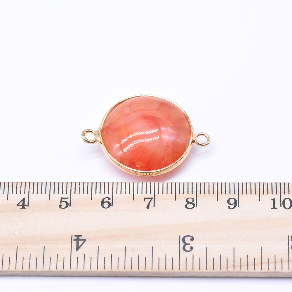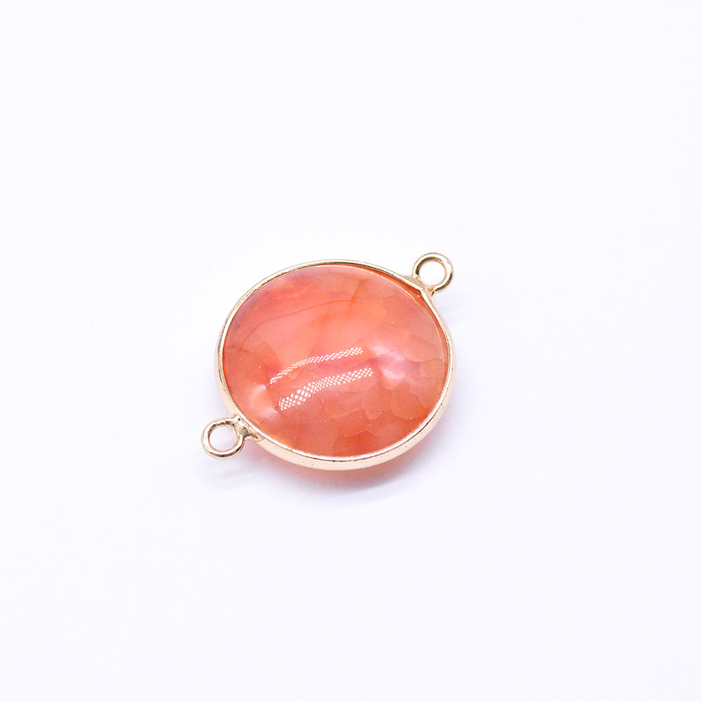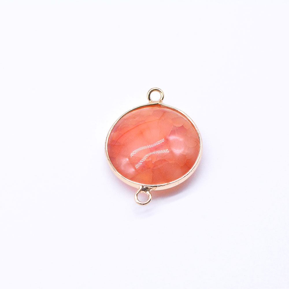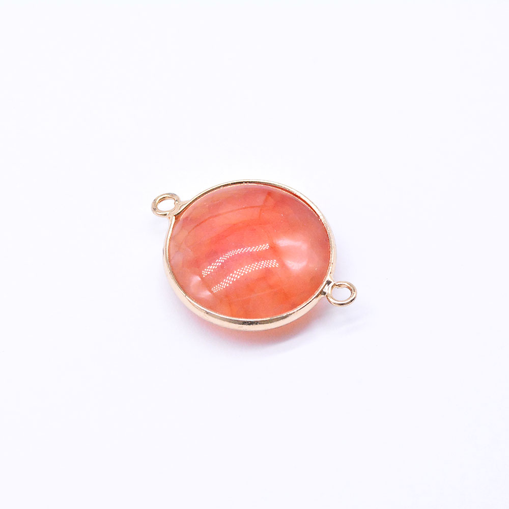 天然石コネクターチャーム オレンジアゲート 円型 2カン 23×31mm ゴールド (1ヶ)