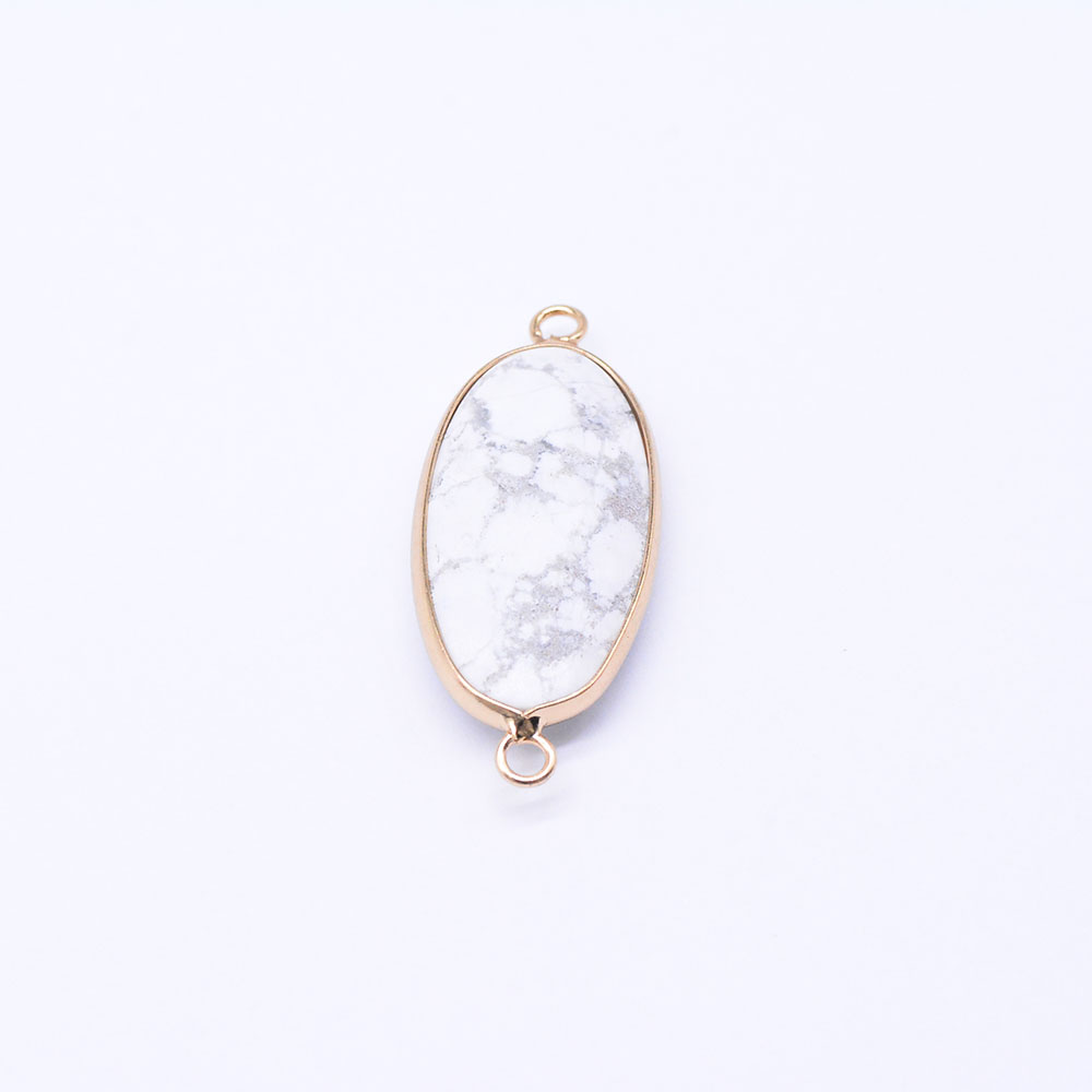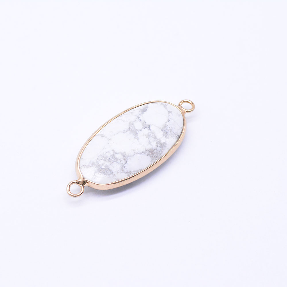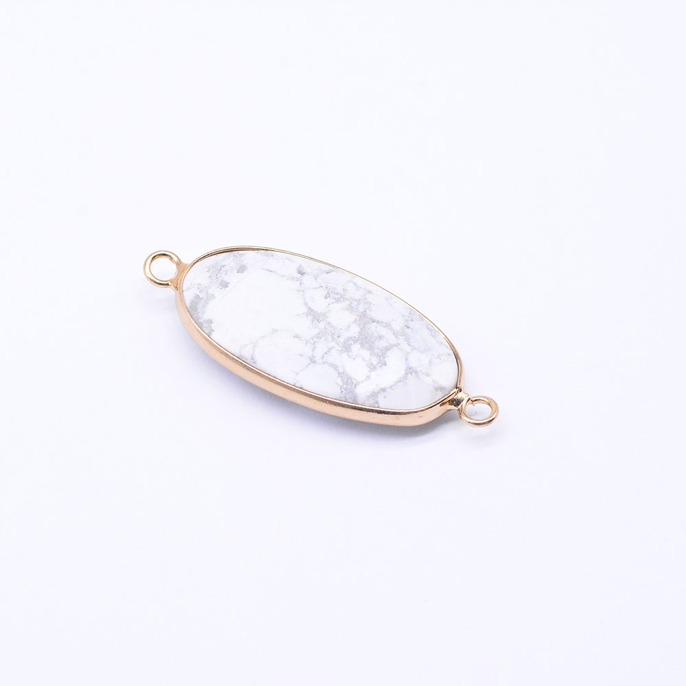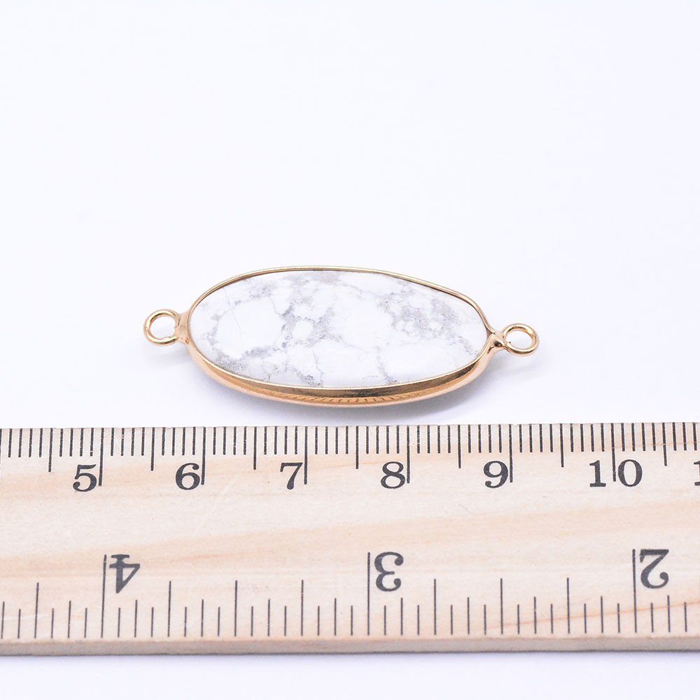 天然石コネクターチャーム ハウライト 楕円カット 2カン 16×39mm ゴールド (1ヶ)