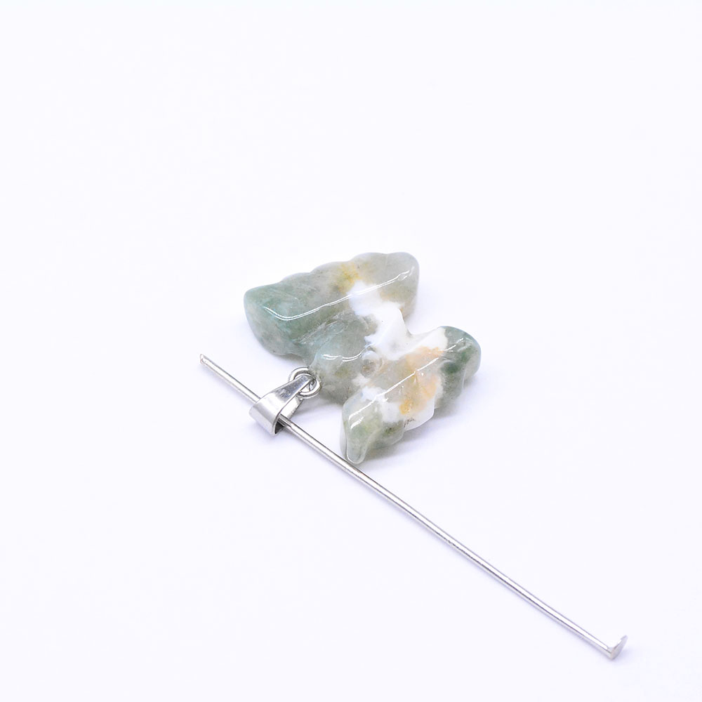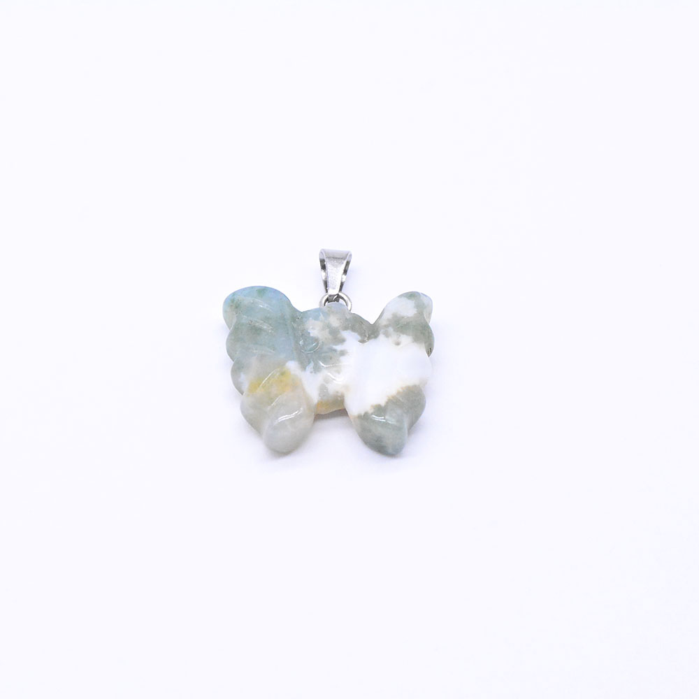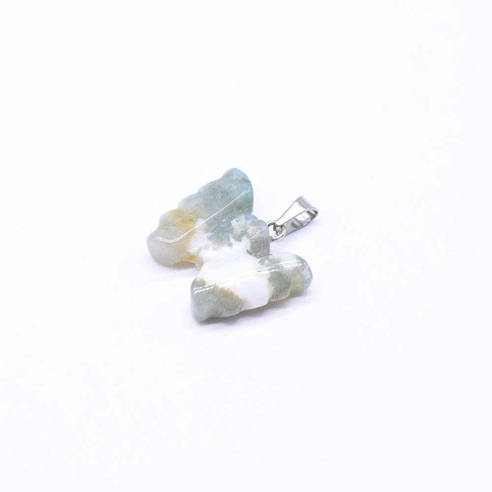 天然石ペンダントチャーム ブルーアゲート 蝶 バチカン付き 21×23mm ロジウム (1ヶ)