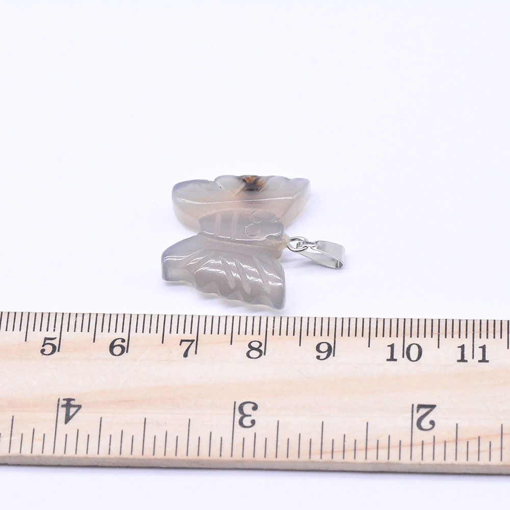 天然石ペンダントチャーム グレーアゲート 蝶 バチカン付き 23×27mm ロジウム (1ヶ)