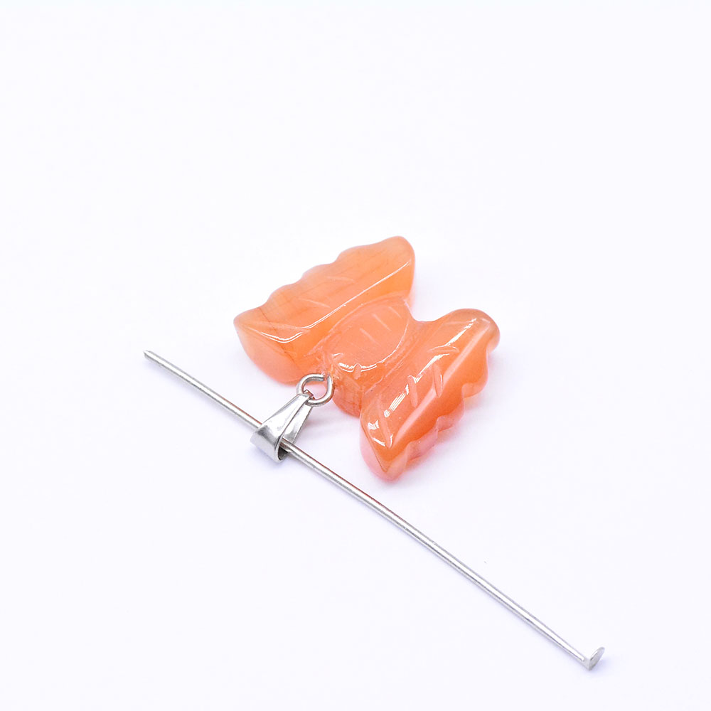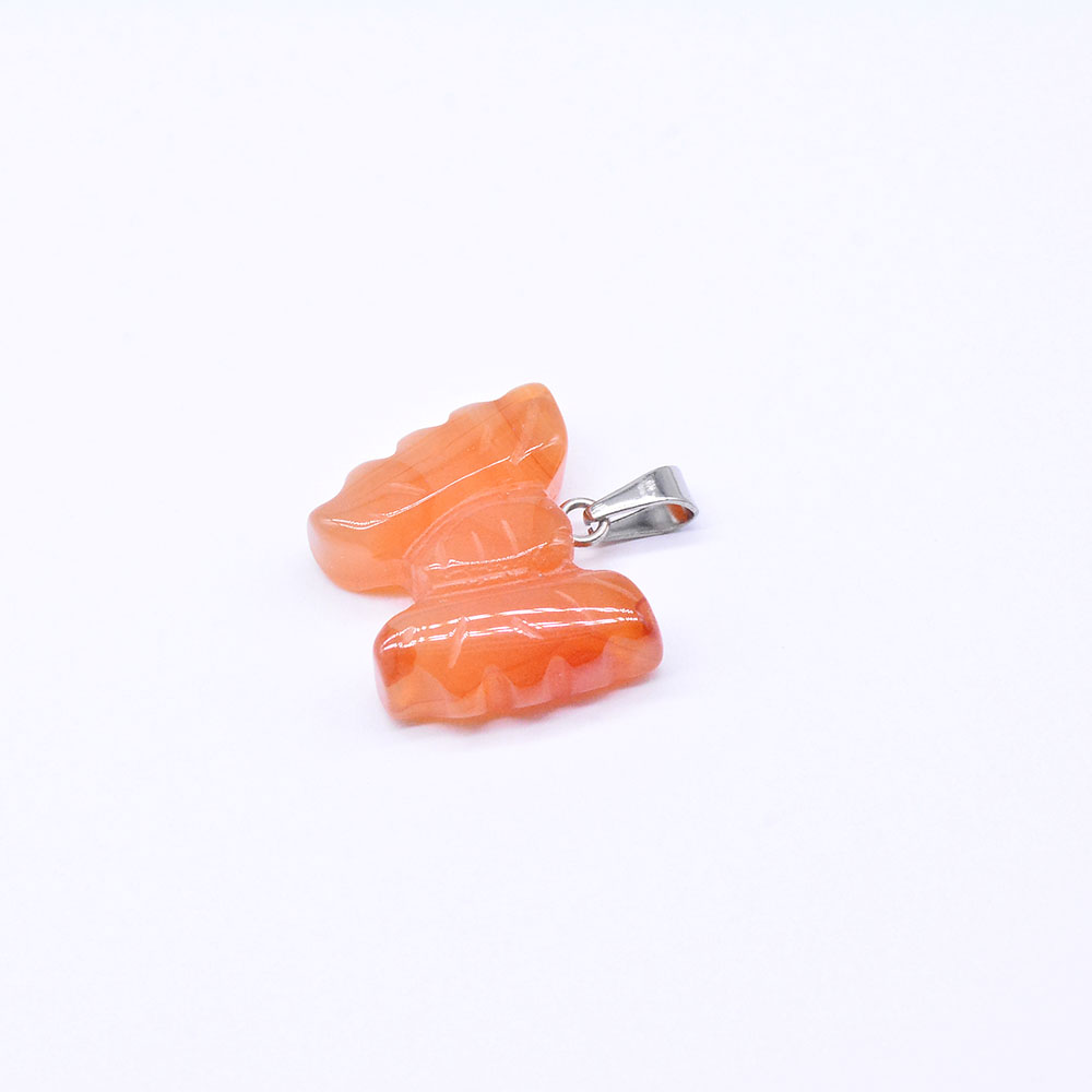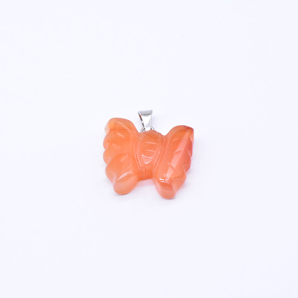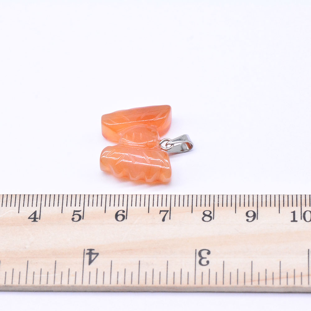 天然石ペンダントチャーム オレンジアゲート 蝶 バチカン付き 20×23mm ロジウム (1ヶ)