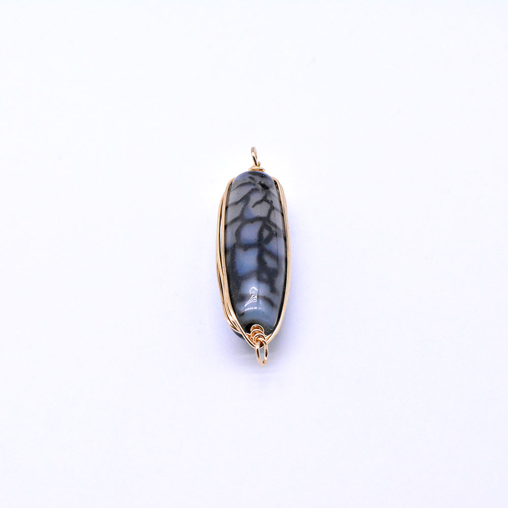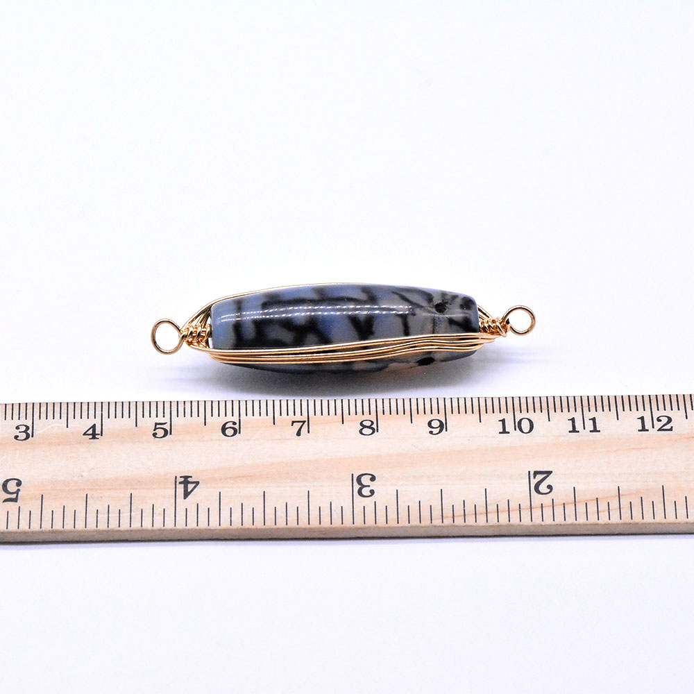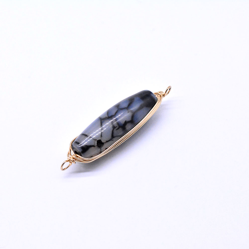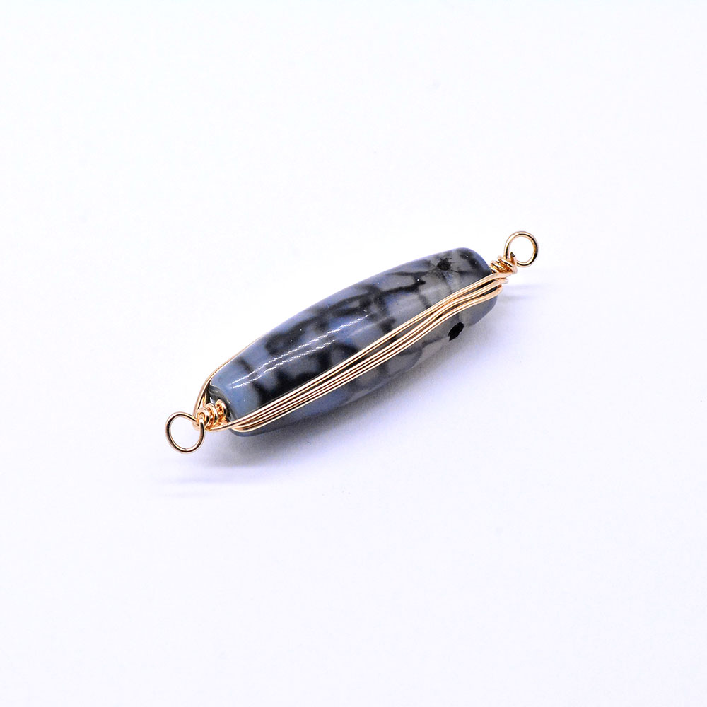 天然石ワイヤコネクターチャーム ドラゴンアゲート 円柱型 2カン ゴールド (1ヶ)