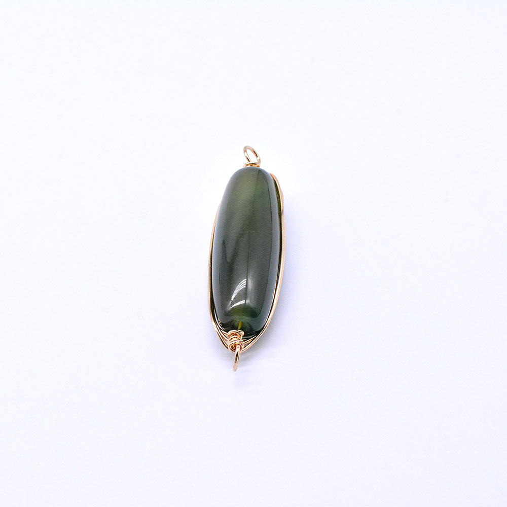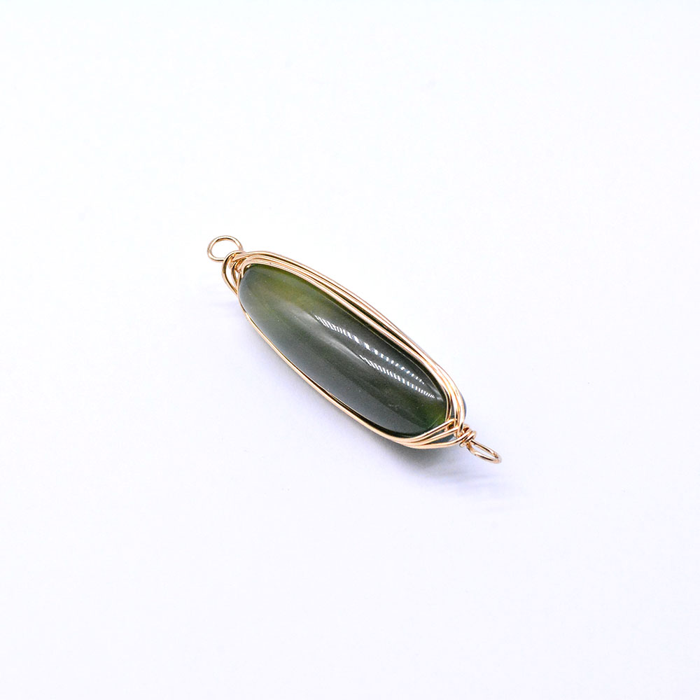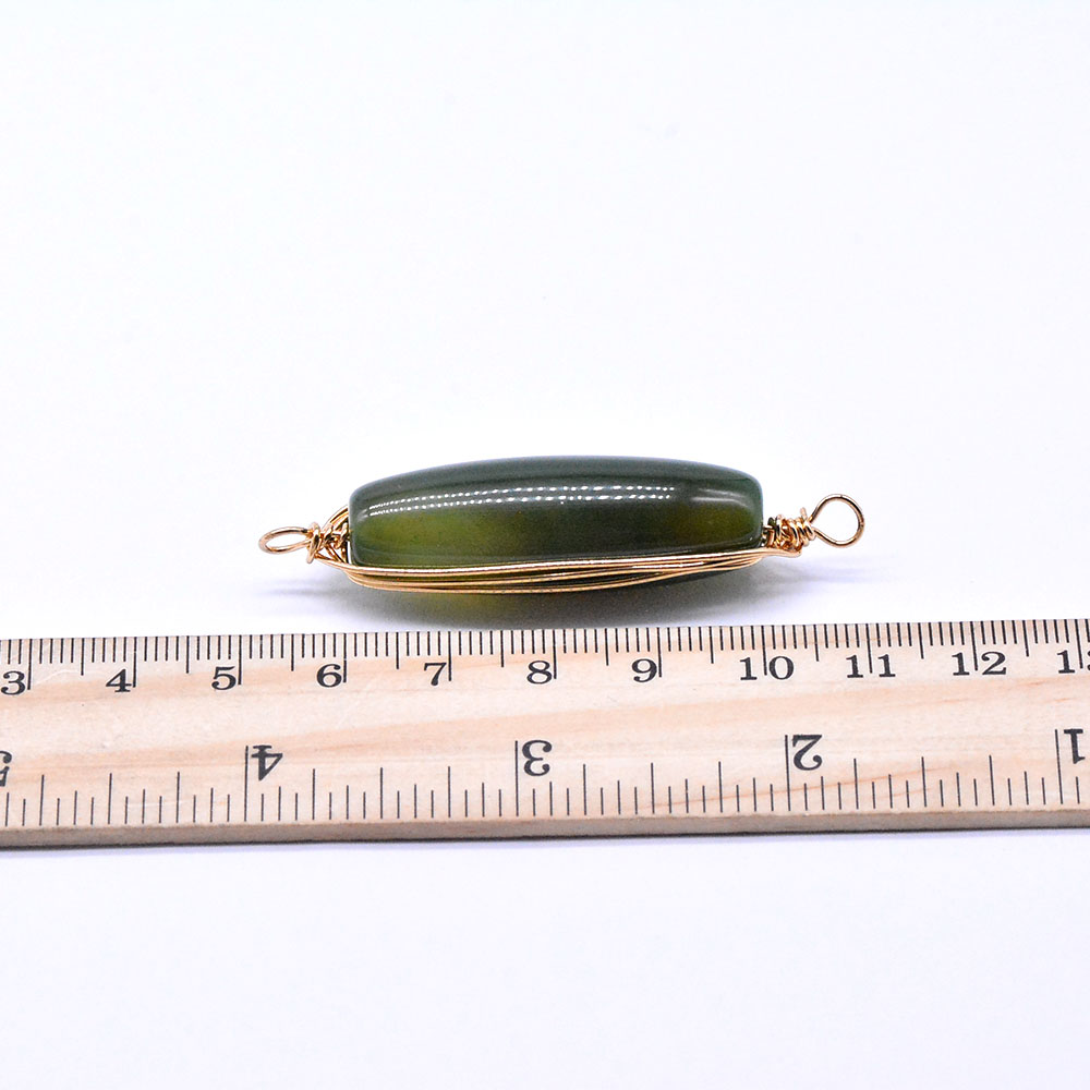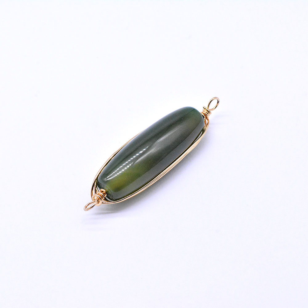 天然石ワイヤコネクターチャーム グリーンアゲート 円柱型 2カン ゴールド (1ヶ)