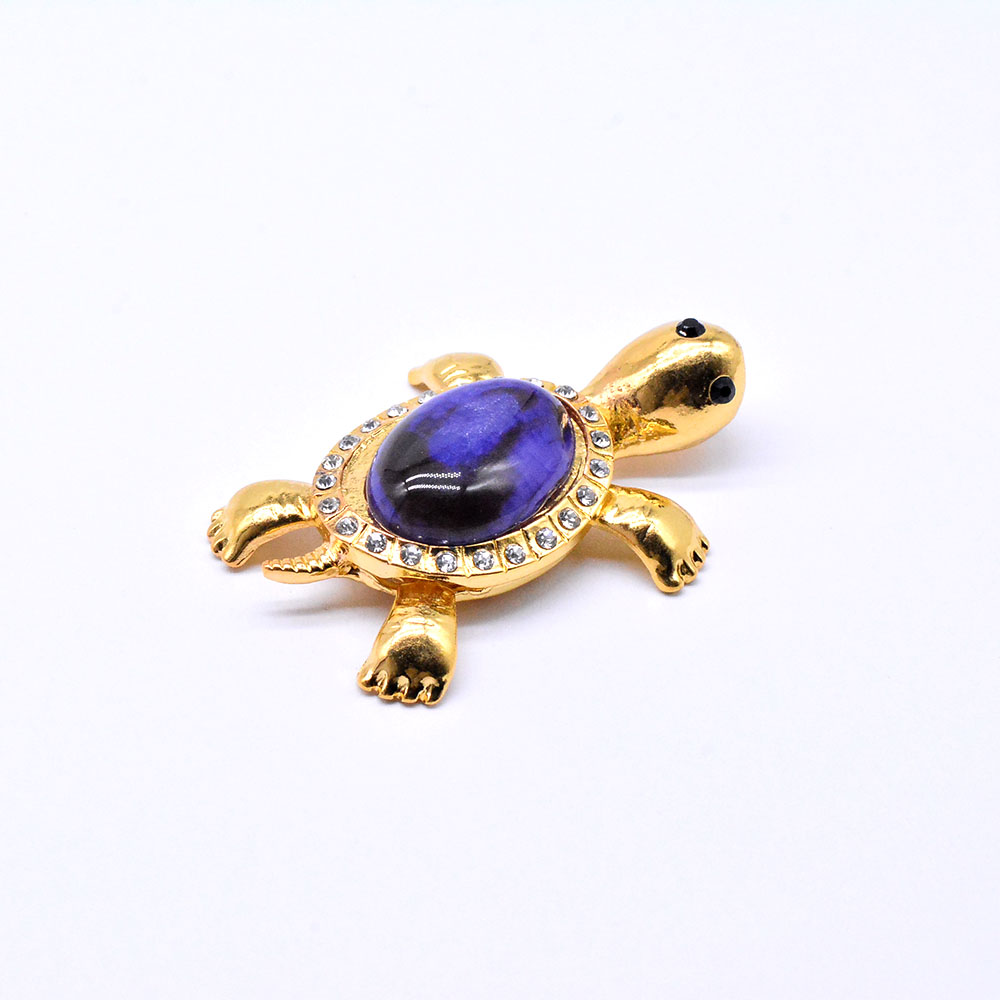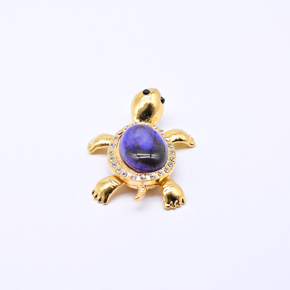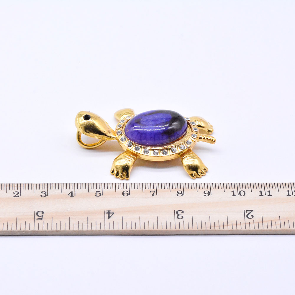 天然石銭亀チャーム ブルーアゲート オーバル 1カン ゴールド (1ヶ)