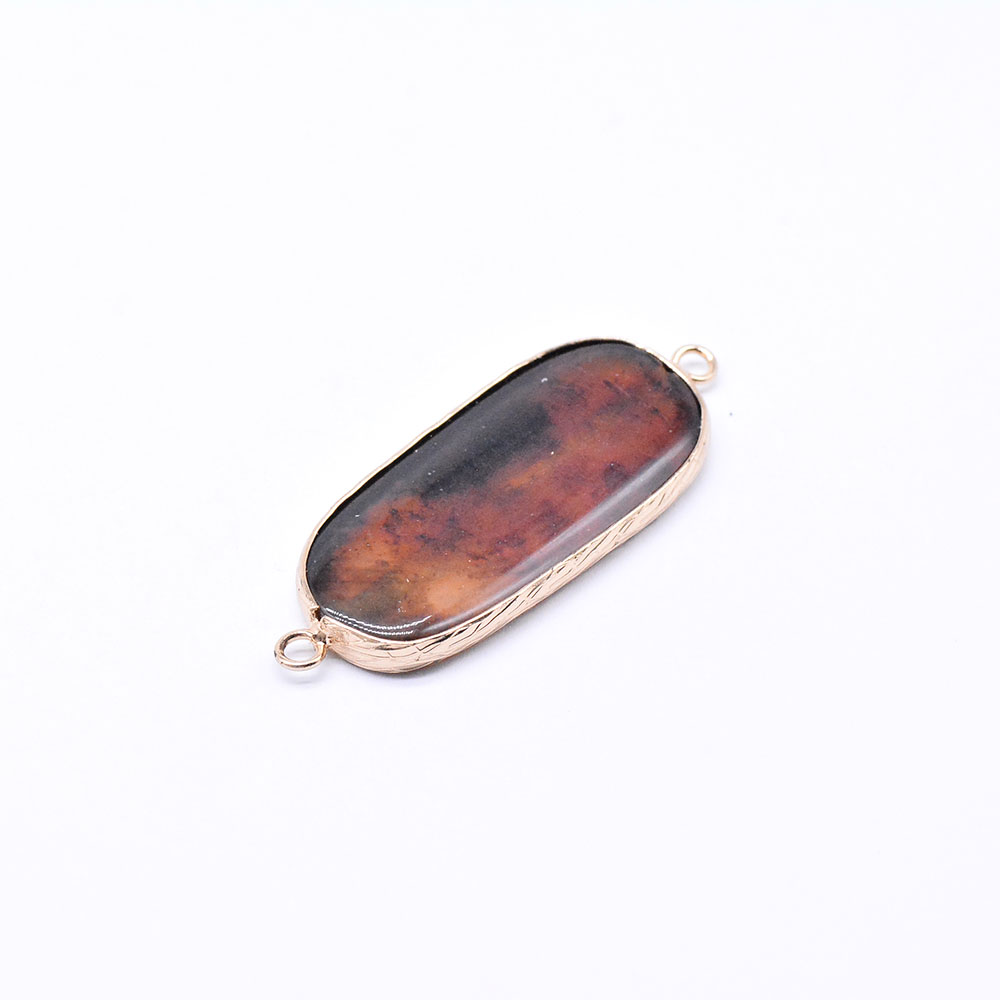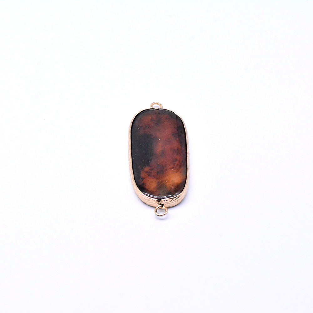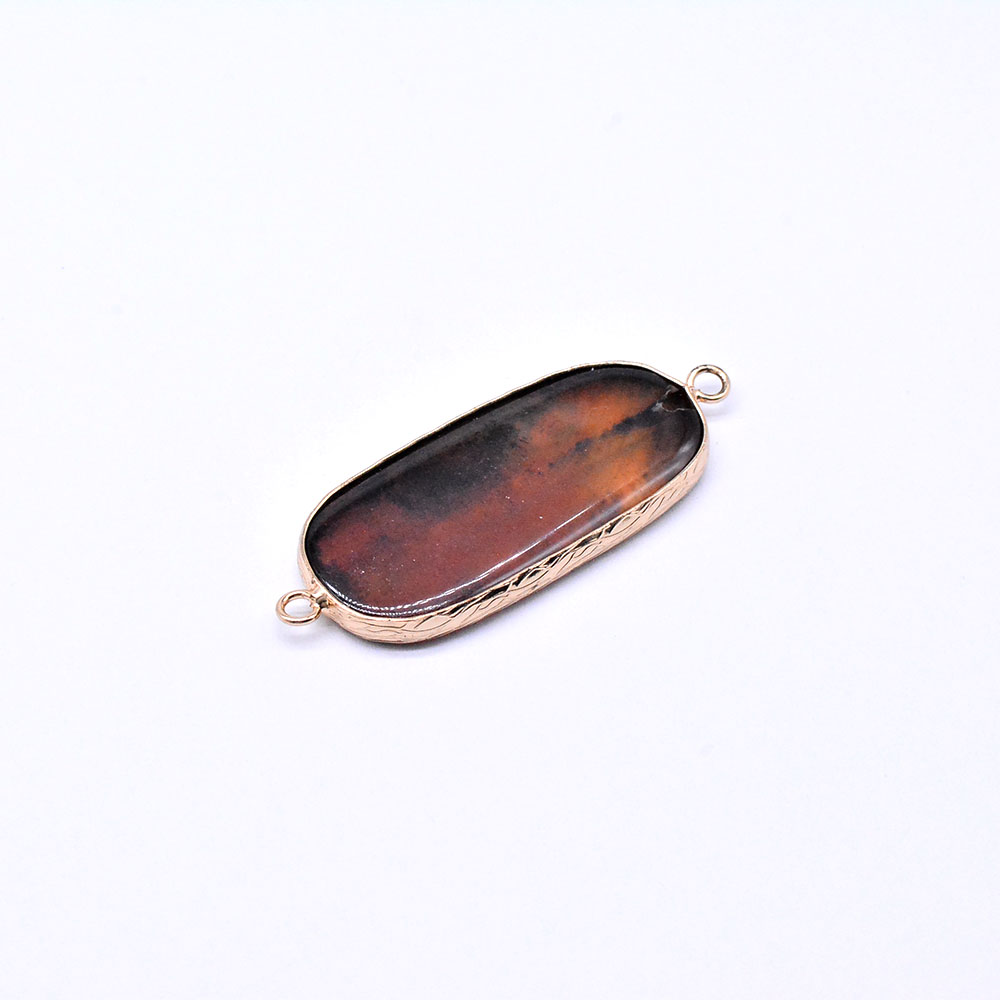 天然石フレームコネクターチャーム レッドタイガーアイ オーバル 2カン ゴールド (1ヶ)