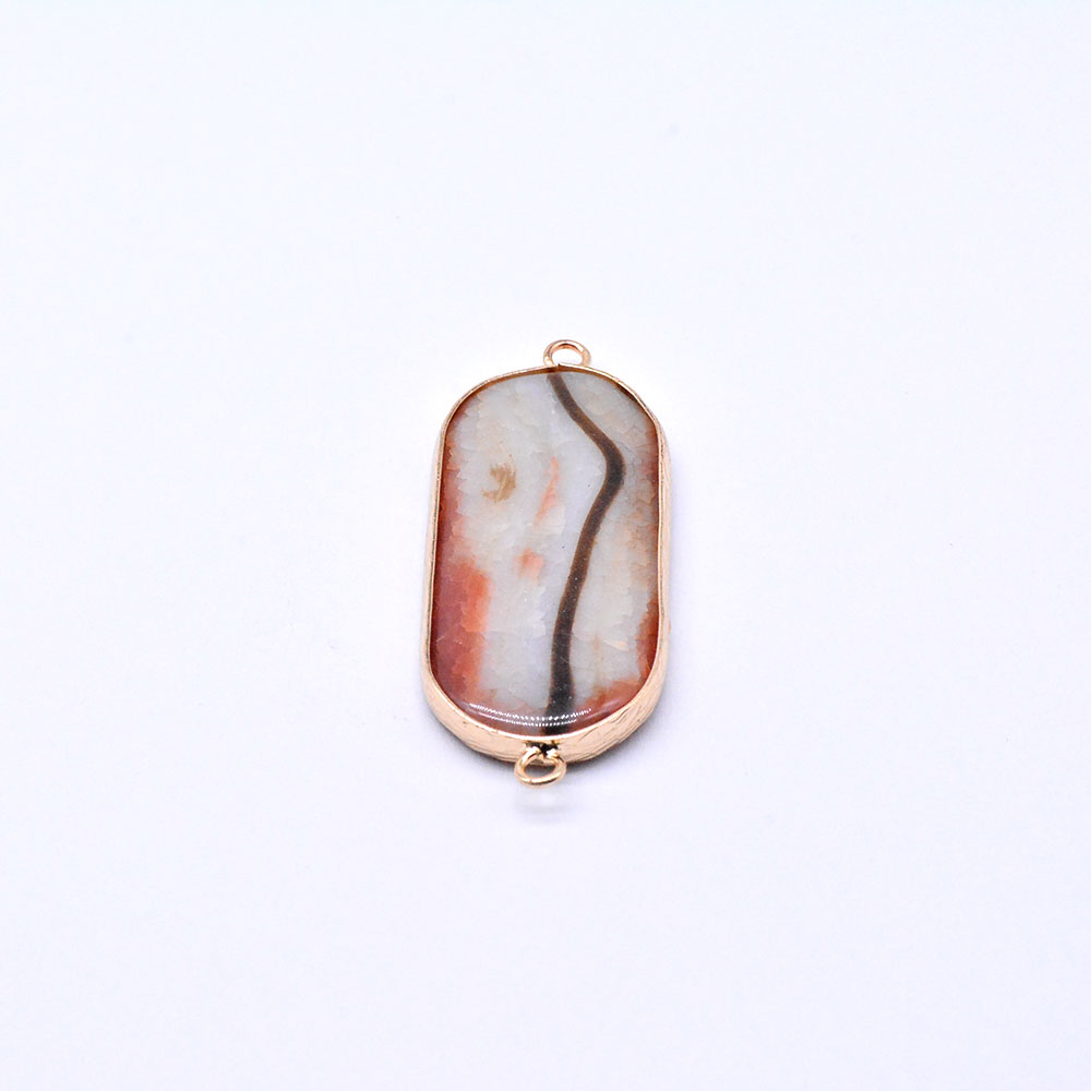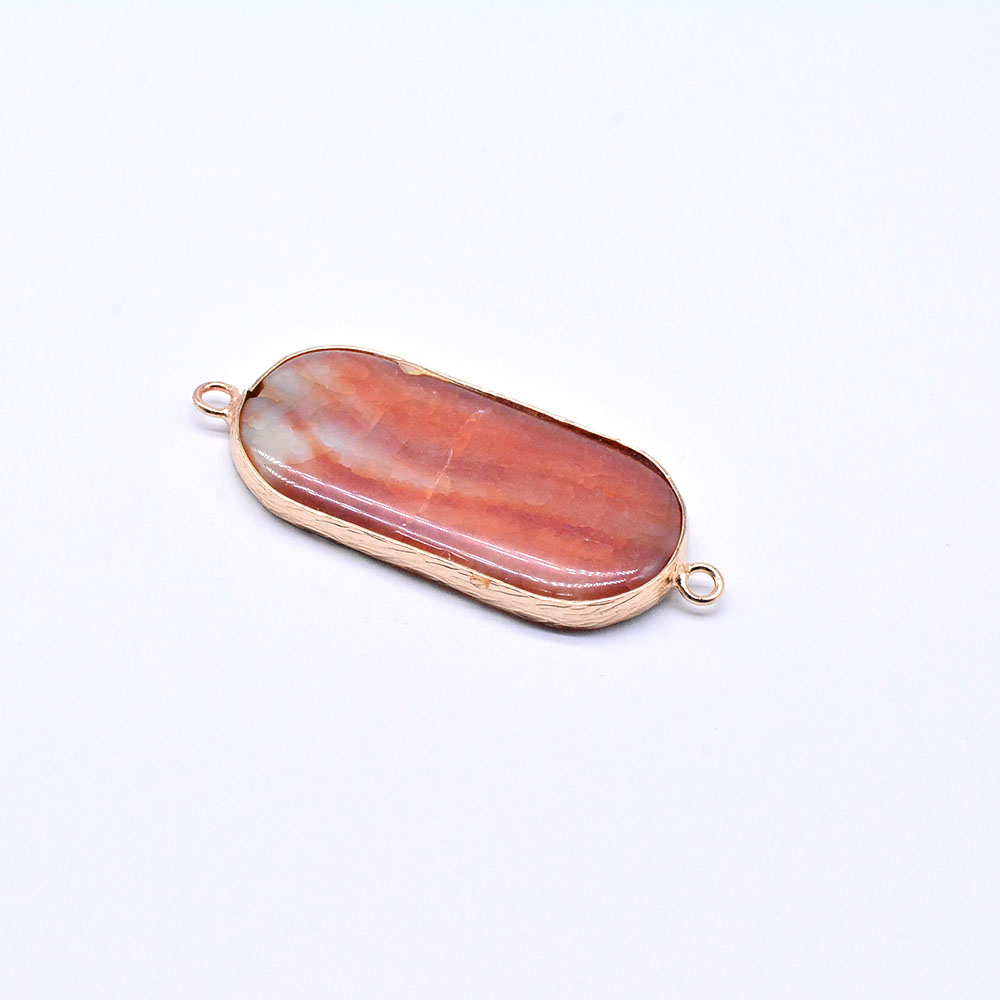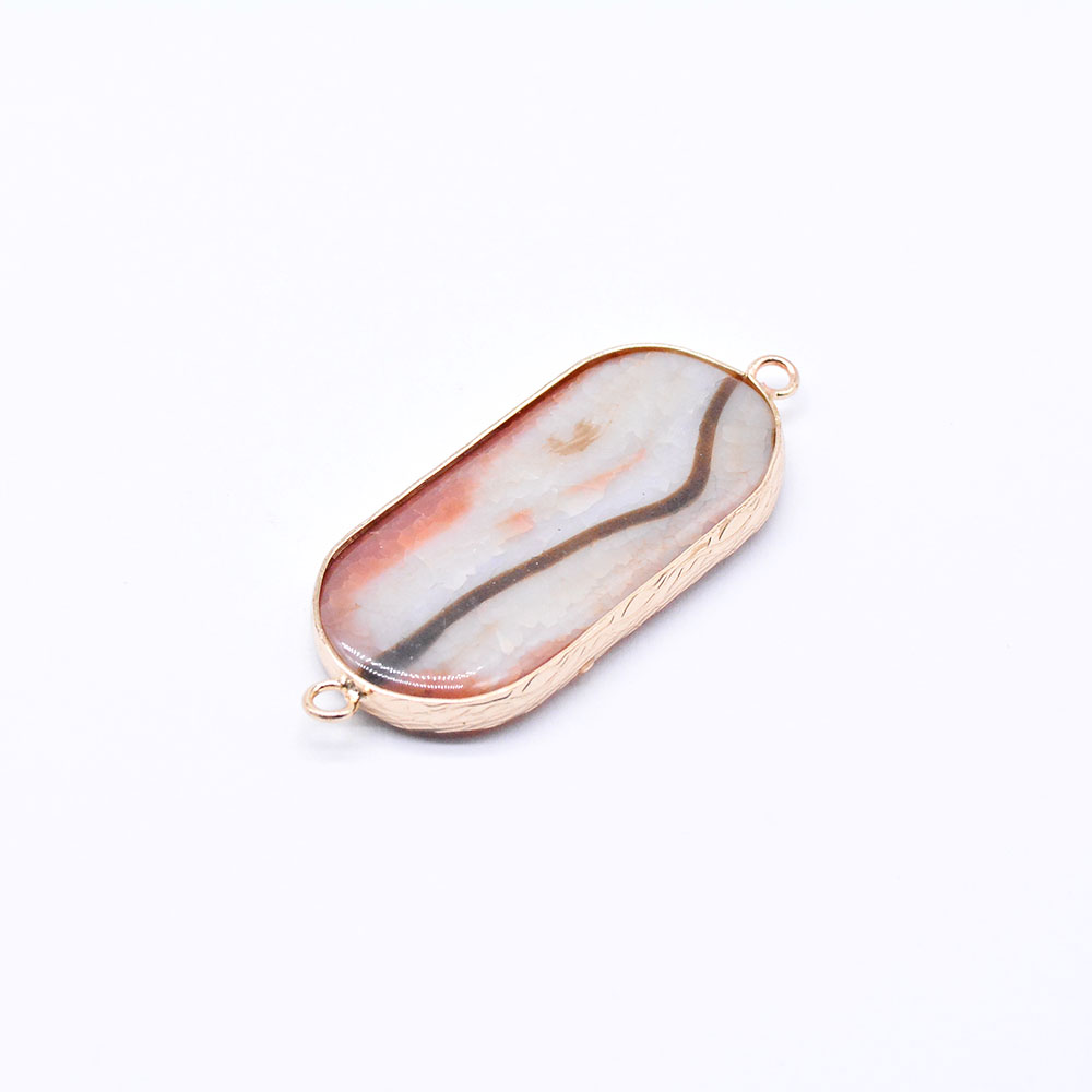 天然石フレームコネクターチャーム ボツワナアゲート オーバル 2カン ゴールド (1ヶ)
