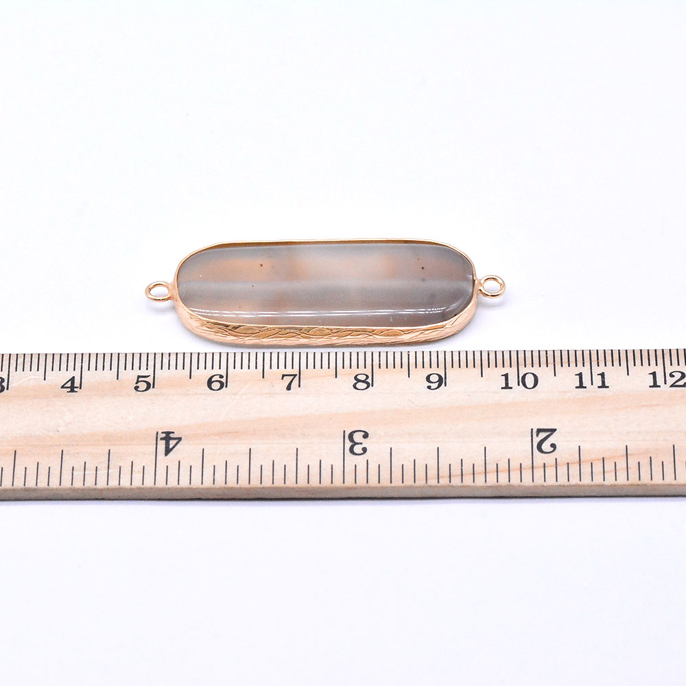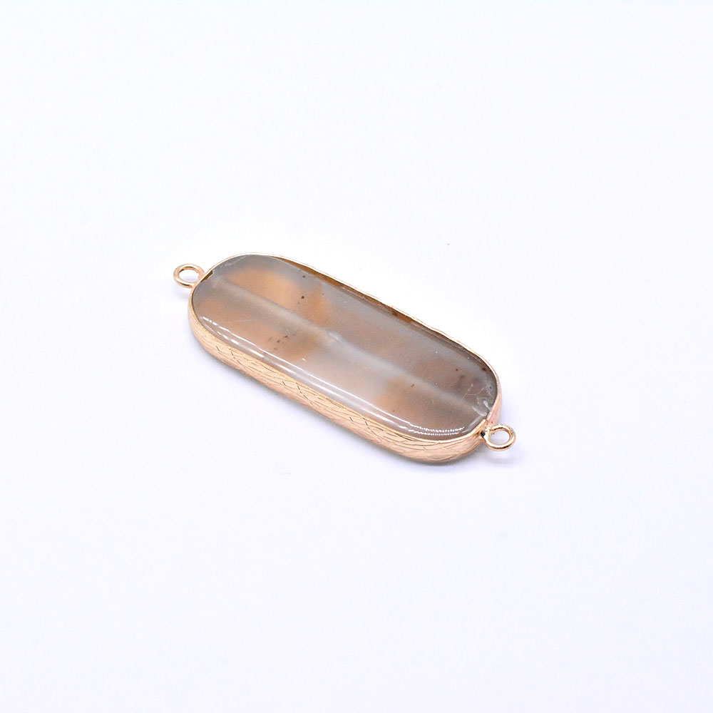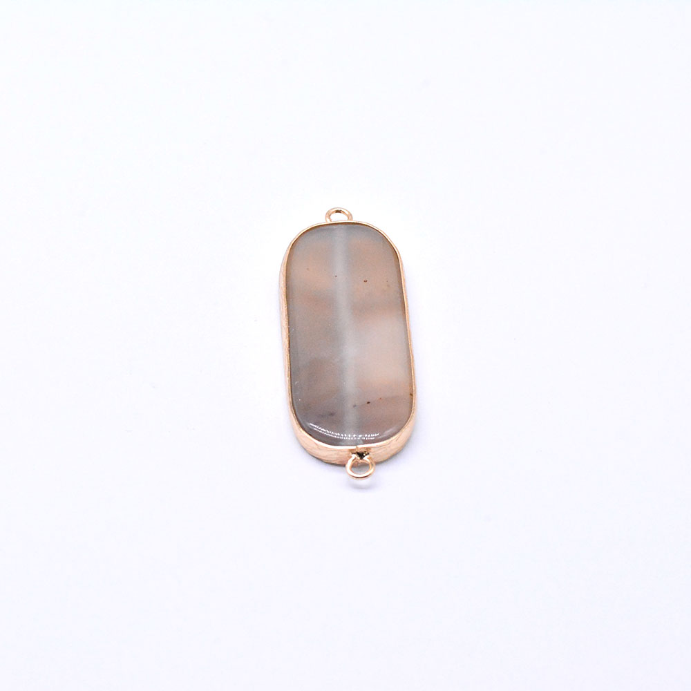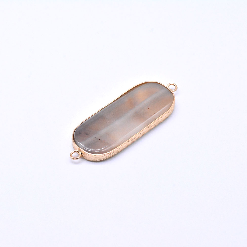 天然石フレームコネクターチャーム グレーアゲート オーバル 2カン ゴールド (1ヶ)