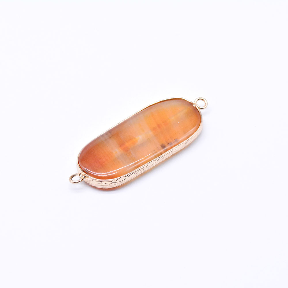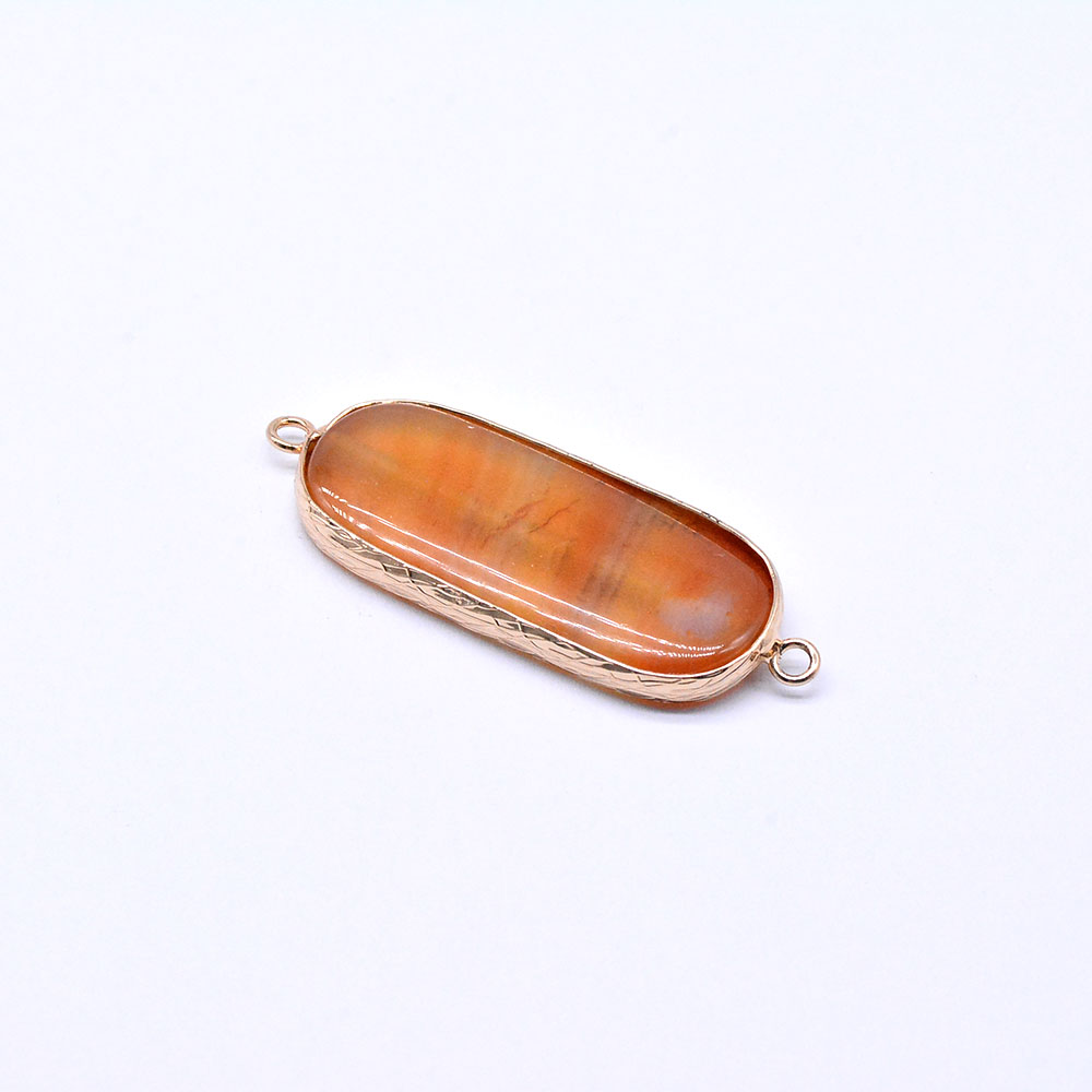 天然石フレームコネクターチャーム オレンジアゲート オーバル 2カン ゴールド (1ヶ)