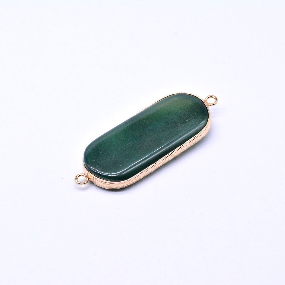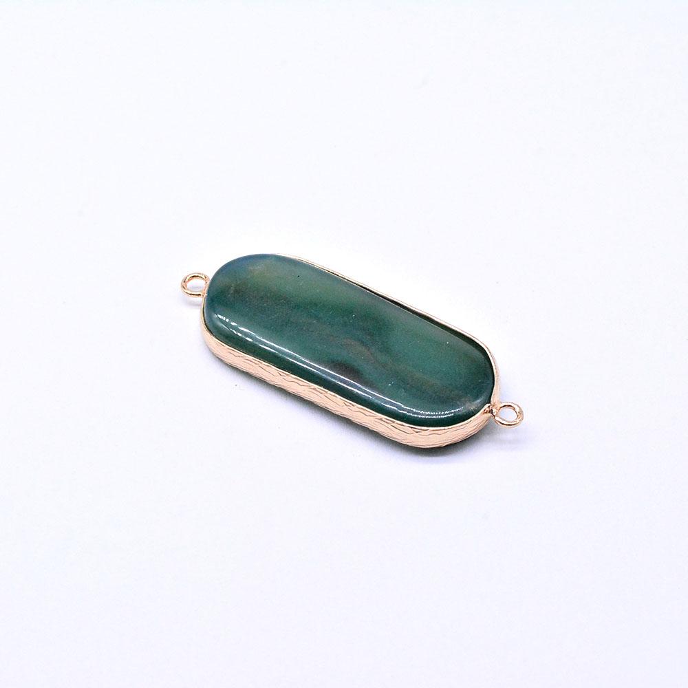 天然石フレームコネクターチャーム グリーンアゲート オーバル 2カン ゴールド (1ヶ)