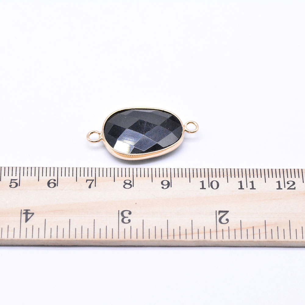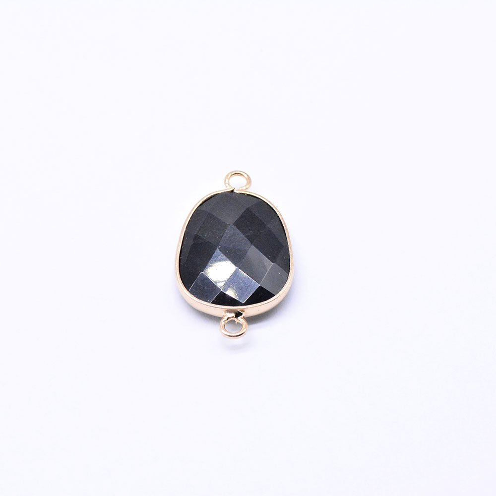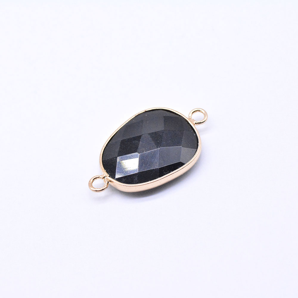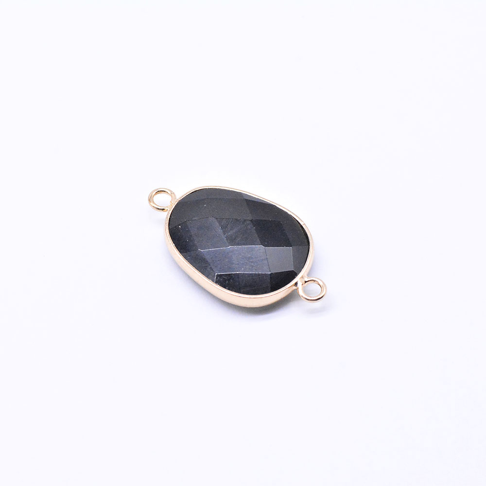 天然石フレームコネクターチャーム オブシディアン オーバル 2カン ゴールド (1ヶ)