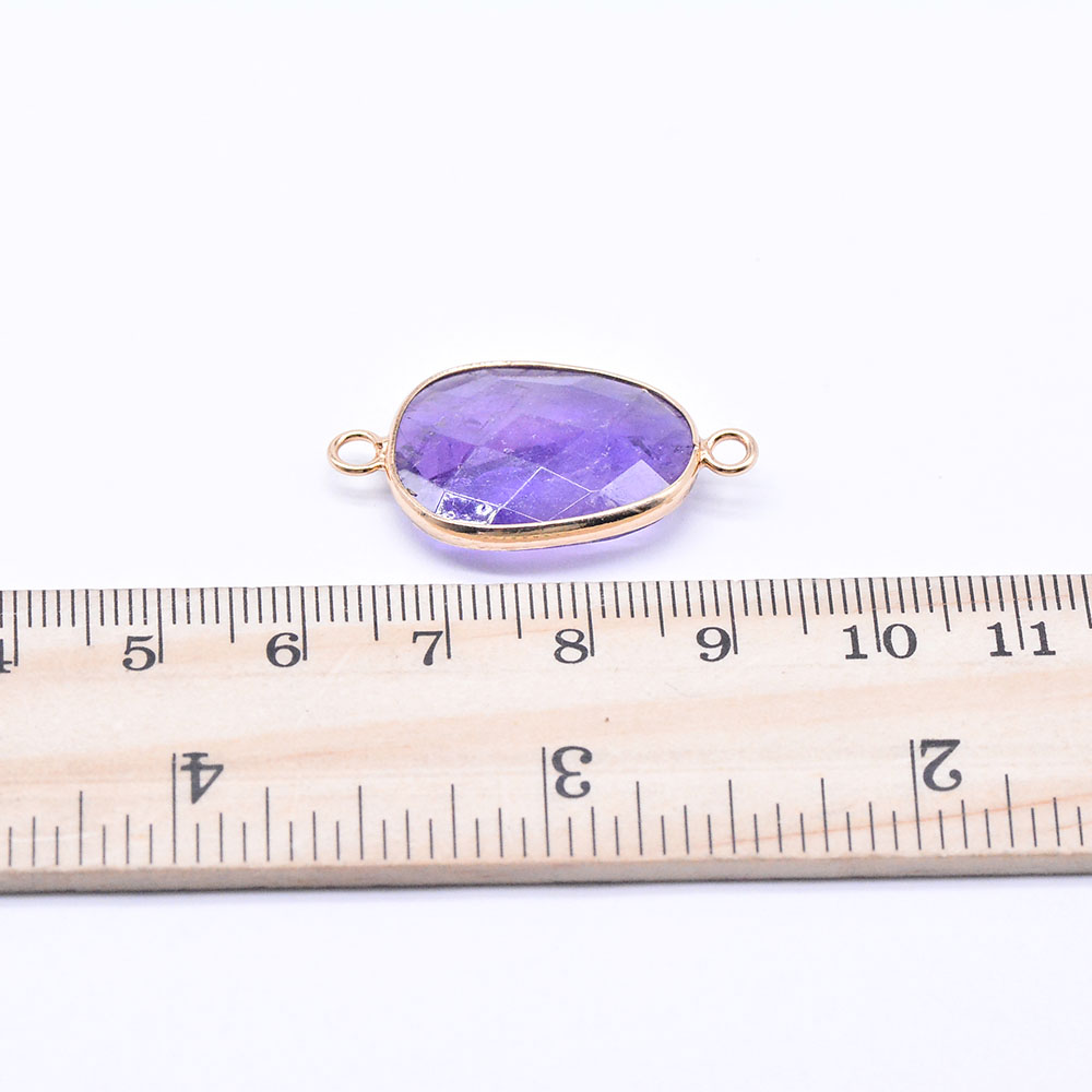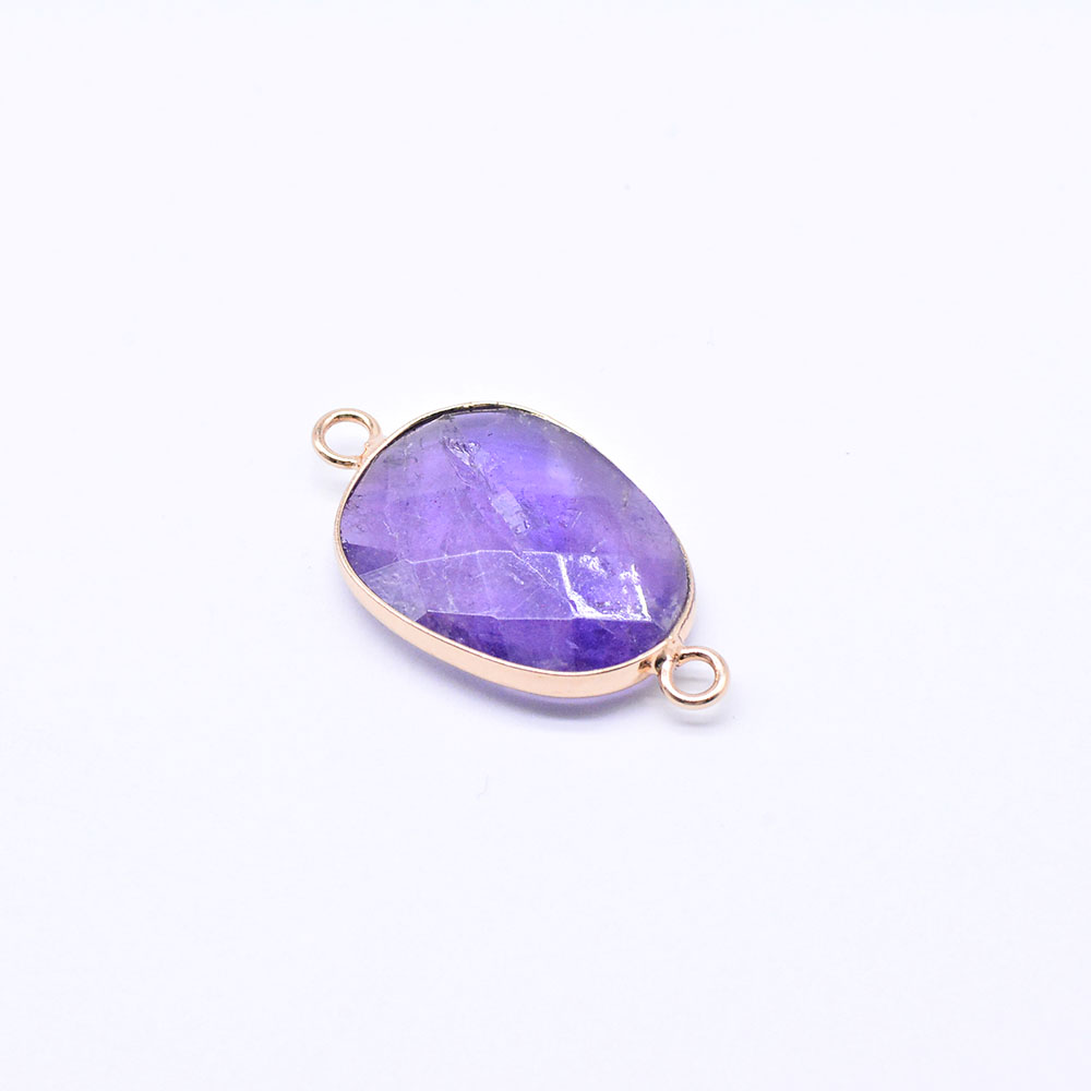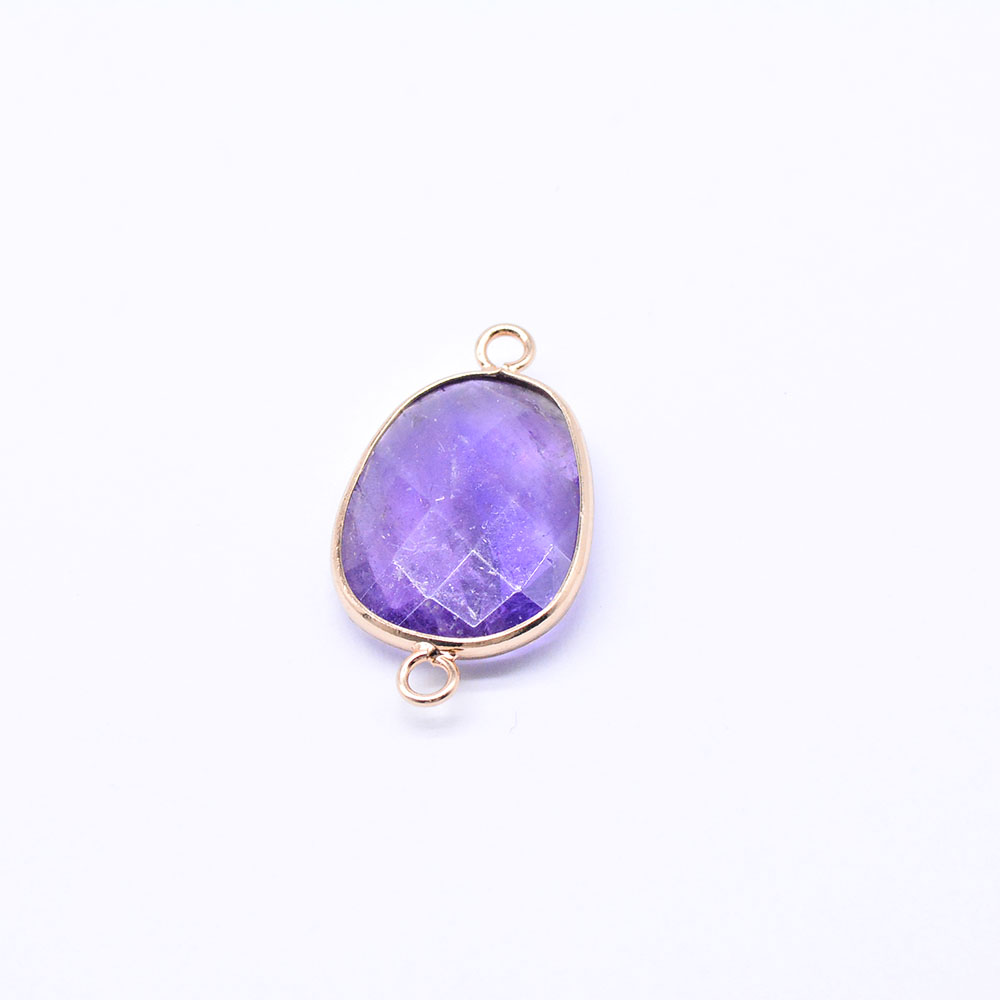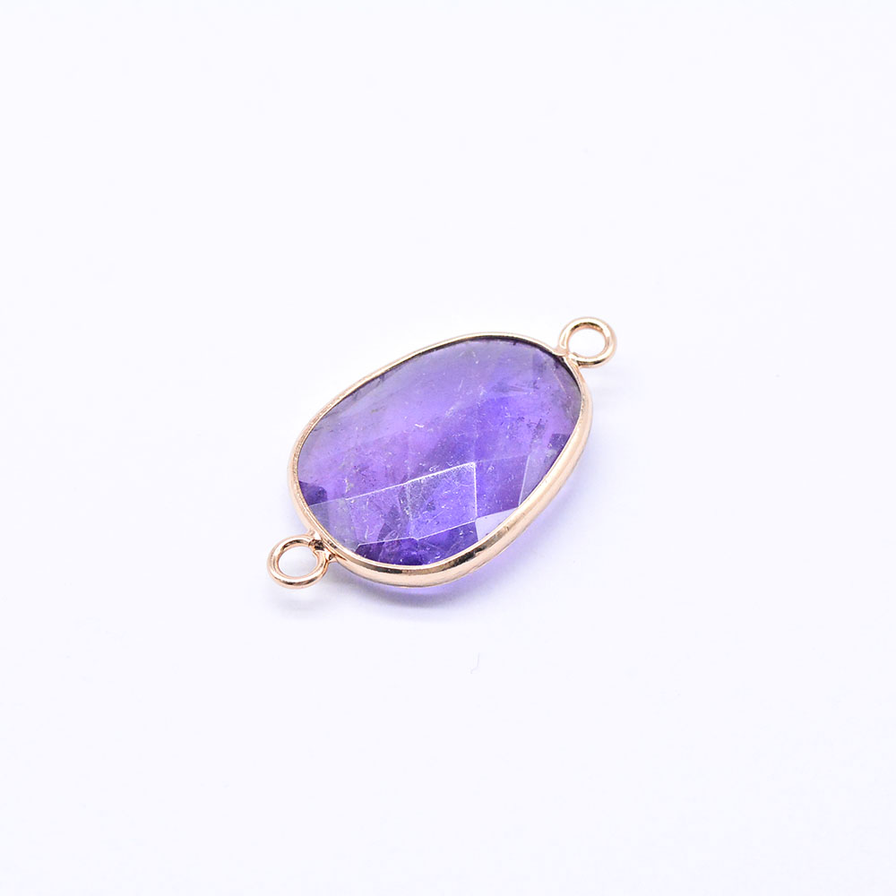天然石フレームコネクターチャーム アメジスト オーバル 2カン ゴールド (1ヶ)