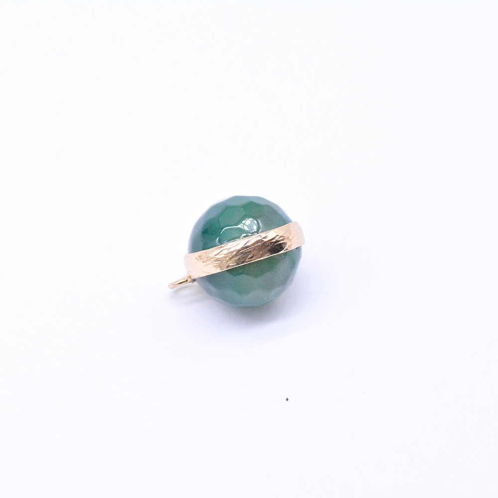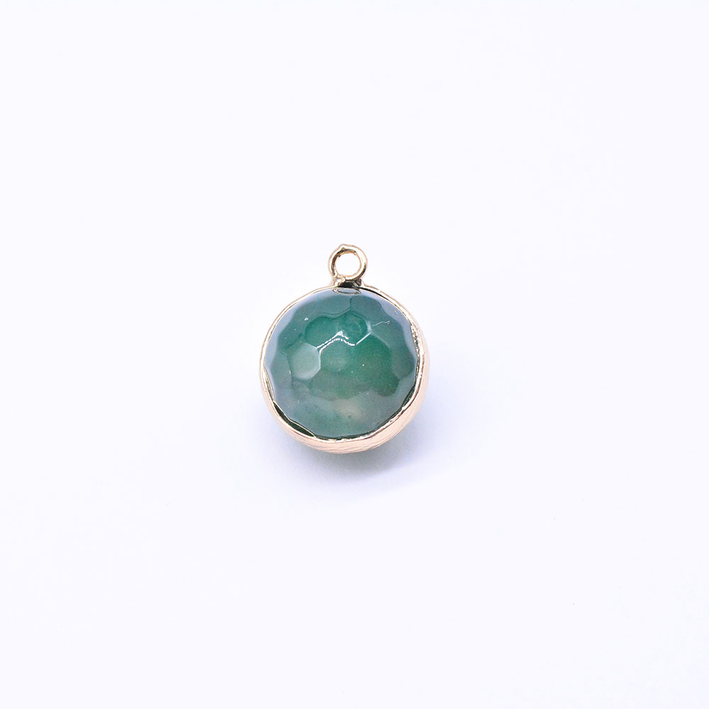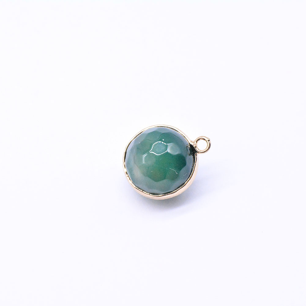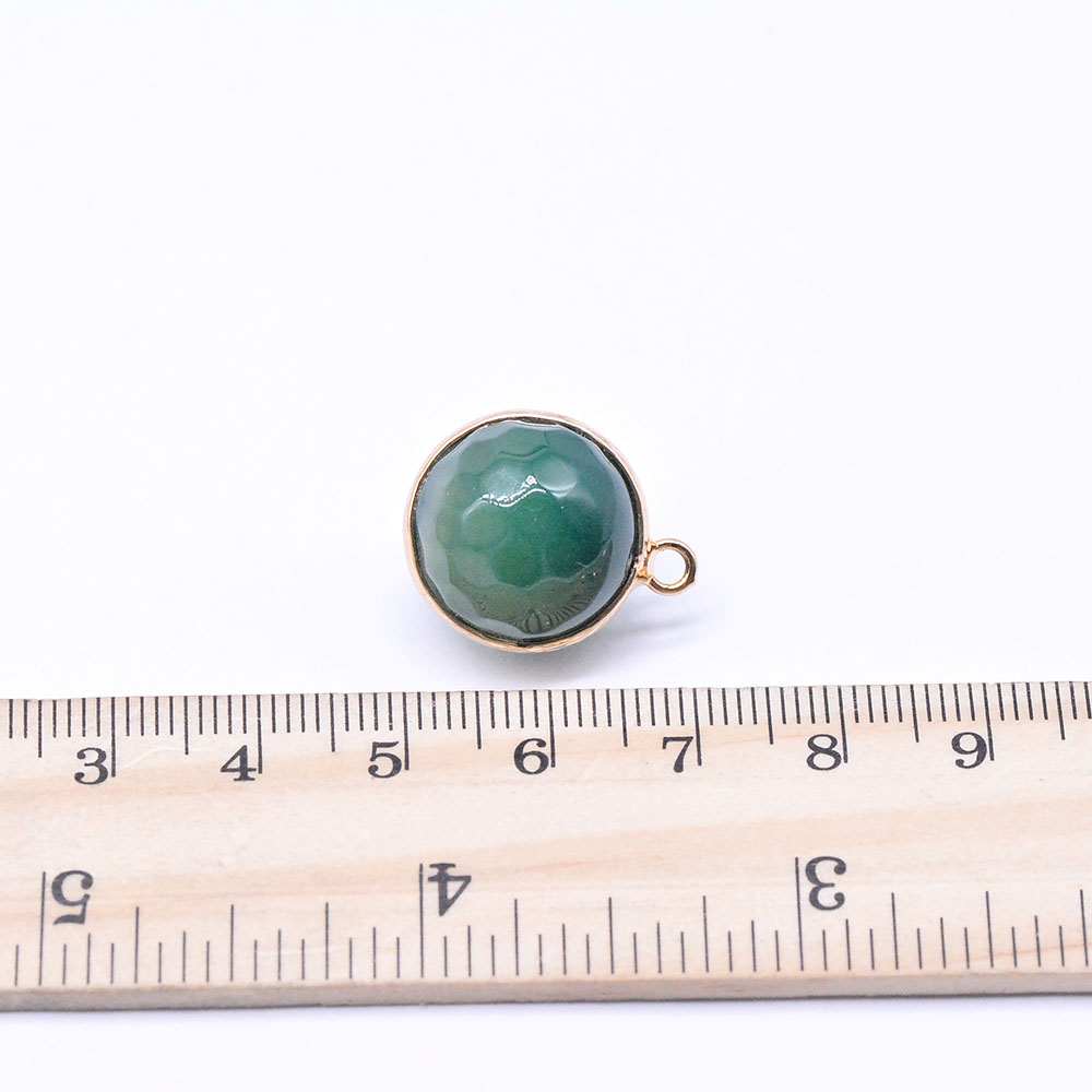 天然石フレームチャーム グリーンアゲート ラウンドカット 1カン 16×21mm ゴールド (1ヶ)