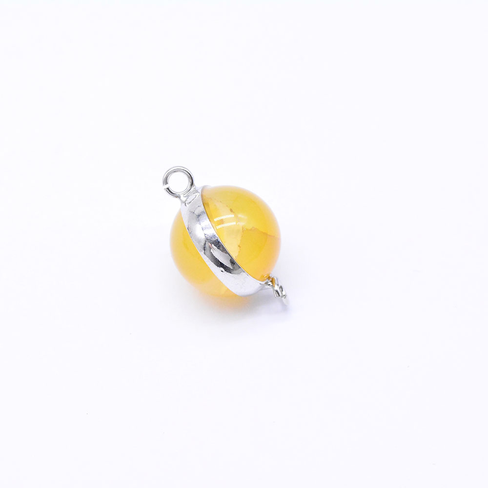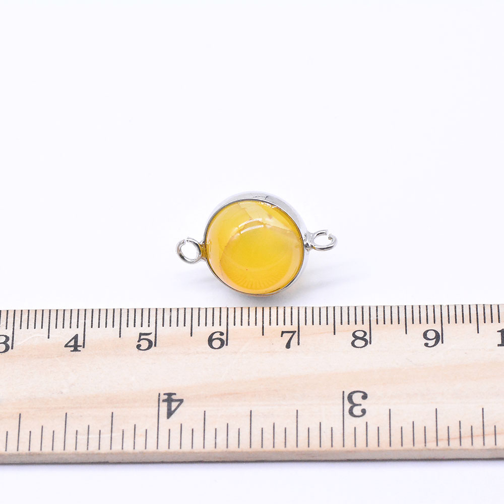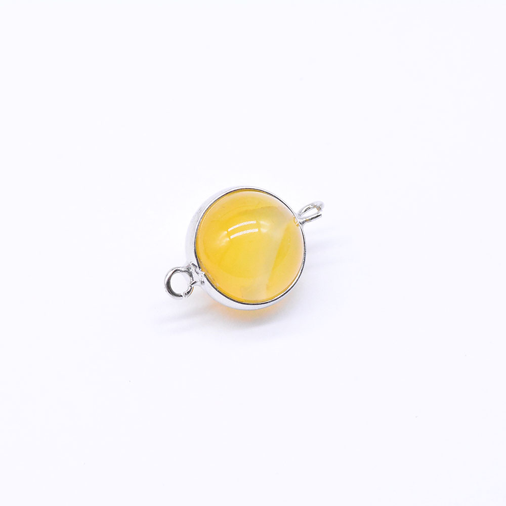 天然石フレームコネクターチャーム イエローアゲート ラウンドカット 2カン 14×23mm ロジウム (1ヶ)